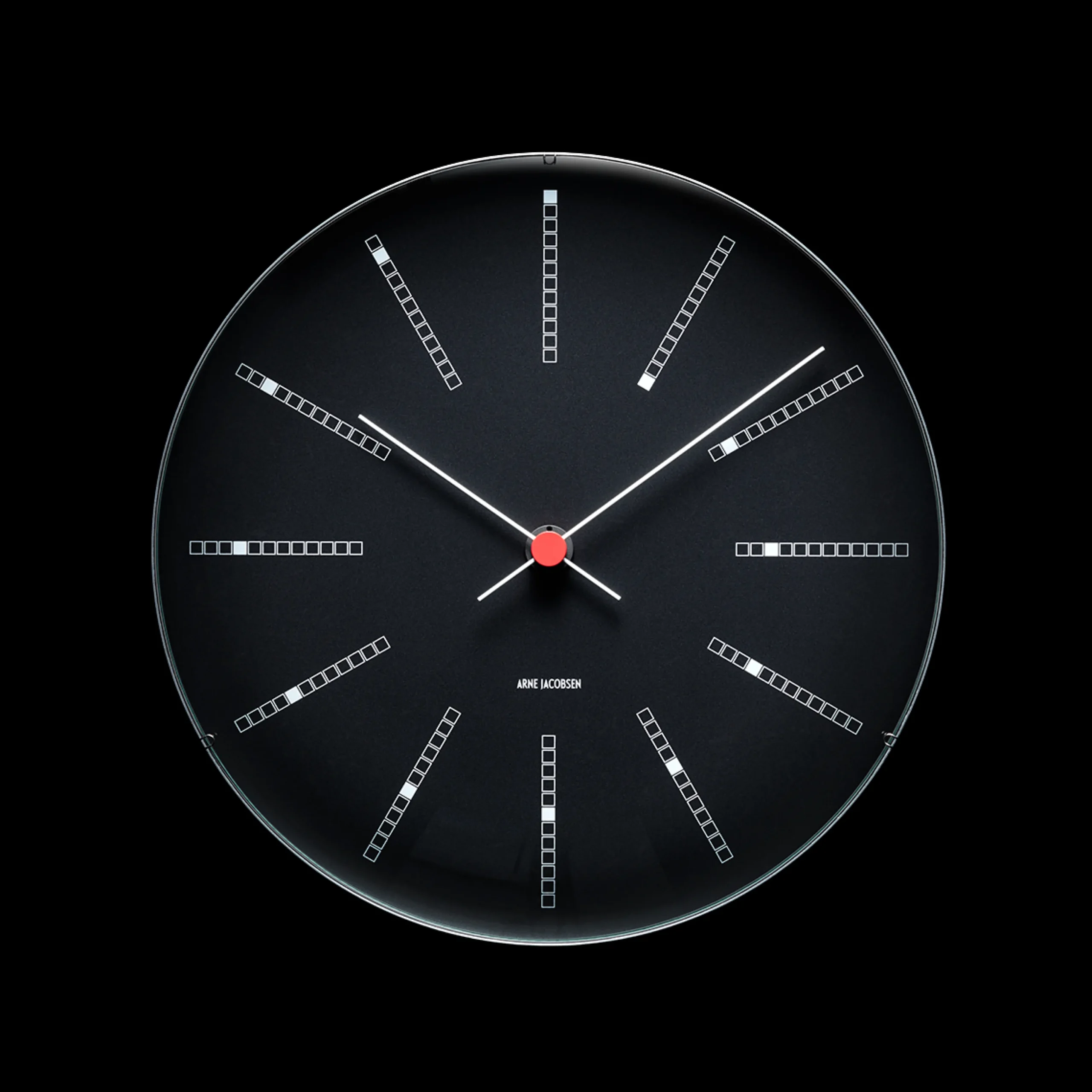 Det lækre Bankers-vægur i sort fra Arne Jacobsen Clocks måler 29 cm i diameter. Uret er oprindeligt designet i 1971 til brug i Nationalbanken, men nu kan du også få det på én gang klassiske og moderne vægur hjem i din bolig. Designet er tidløst, men skabt med en række af fantasifulde detaljer, der får uret til at skille sig ud fra mængden og blive bemærket. Blandt de skønne detaljer er den gennemgående spiral, der på elegant vis illustrerer tidens gang time for time hele dagen igennem. Uret fås også i en model med Ø21.