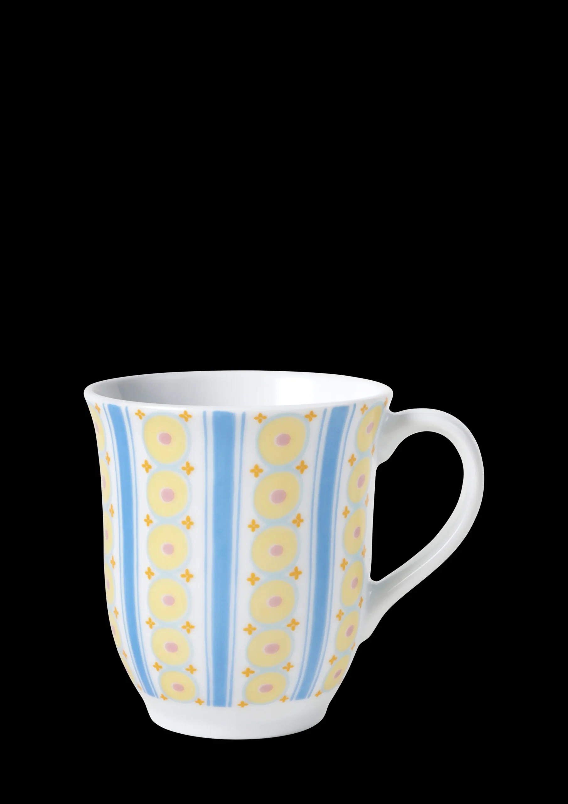 Bjørn Wiinblads stil er alt andet end minimalistisk. Den er overdådig, finurlig, vidunderlig – og stærkt defineret af levende farver og et unikt look. Du finder også mange af hans skæve og kunstneriske dekorationer på Eva-krusene fra Bjørn Wiinblad. Designet er et sandt sammensurium af farver og geometriske former med en håndtegnet fornemmelse, der på en eller anden måde passer perfekt sammen. Dette sæt med to krus i blå nuancer har hvirvlende striber hele vejen rundt og er indrammet af lodrette blå striber og orange prikker. Mønsteret er inspireret af de forskellige kjoler, du tidligere har set på Eva-vasen, og farverne er holdt i de samme sarte farvetoner, der kendetegner Evas glade og venlige stil. Kruset rummer 35 cl – perfekt til en god kop kaffe eller te. Det tåler selvfølgelig opvaskemaskine. Du har helt sikkert bedre ting at lave end at vaske op i hånden. Hvert krus har sin egen unikke personlighed og farvepalet, men har stadig et klart familiefælleskab takket være Bjørn Wiinblads genkendelige streg. Eva-kruset bringer glæde på bordet og hylden, hvor det bringer lidt mere lys og farve til din dag – i ægte Bjørn Wiinblad-stil.