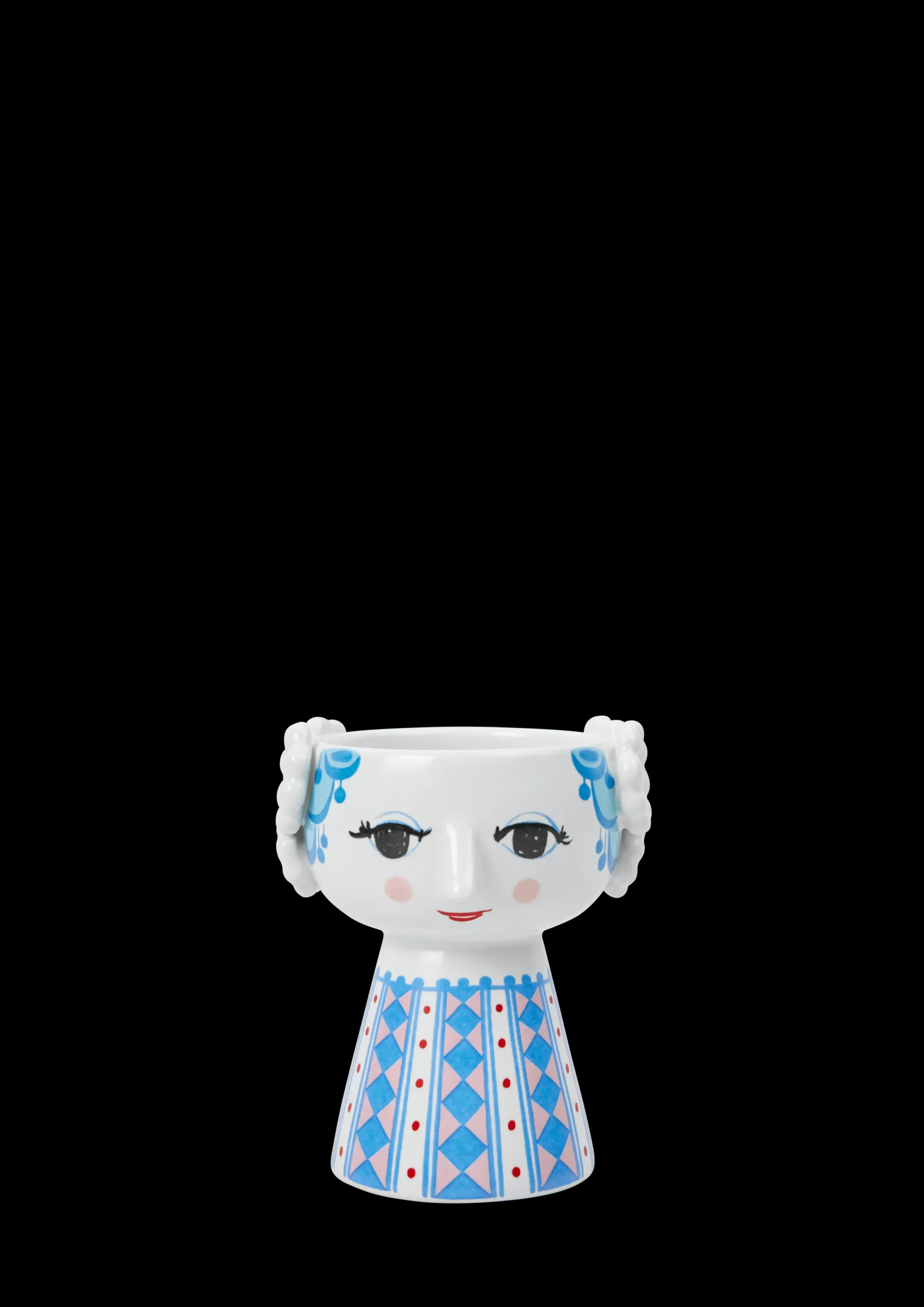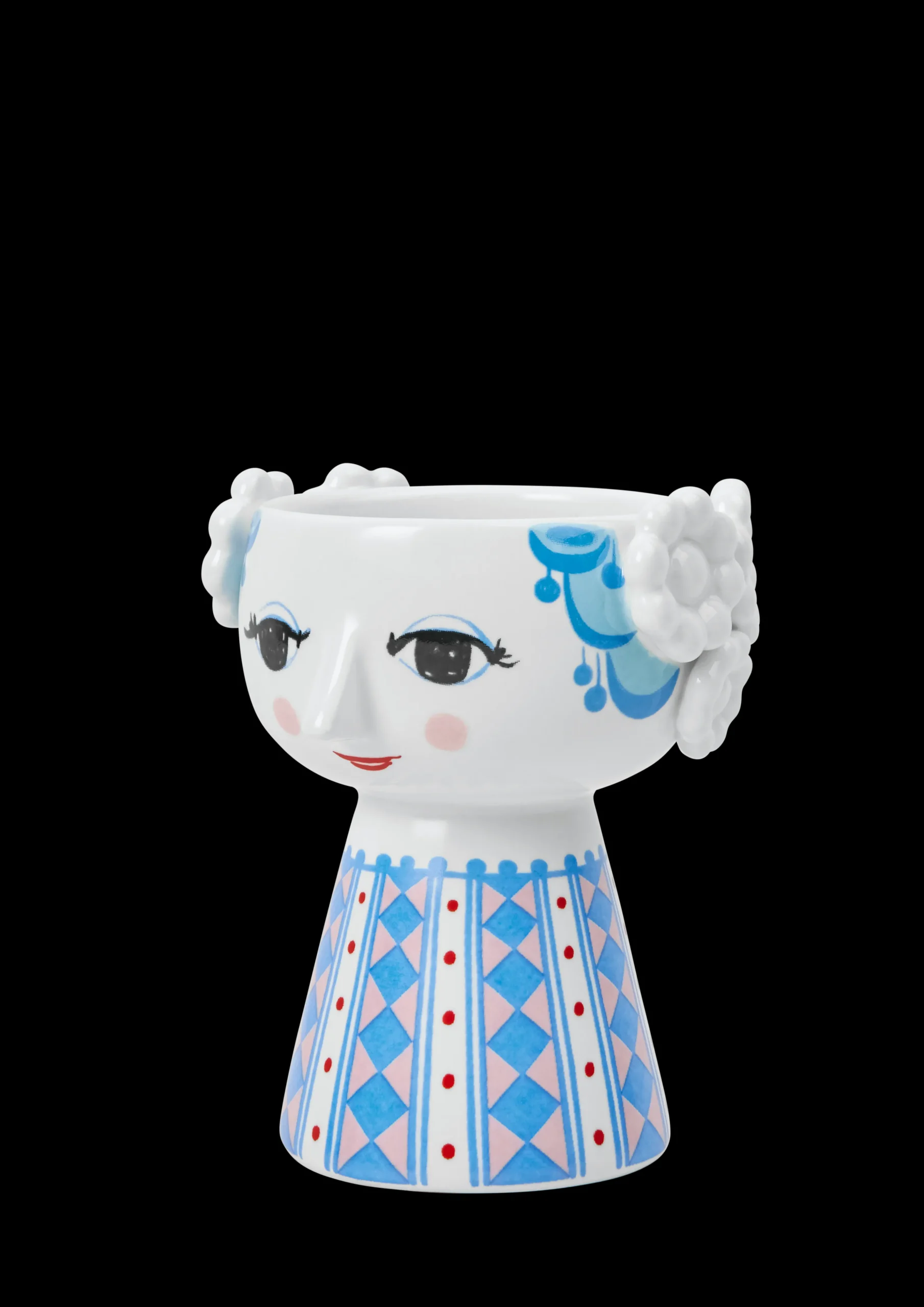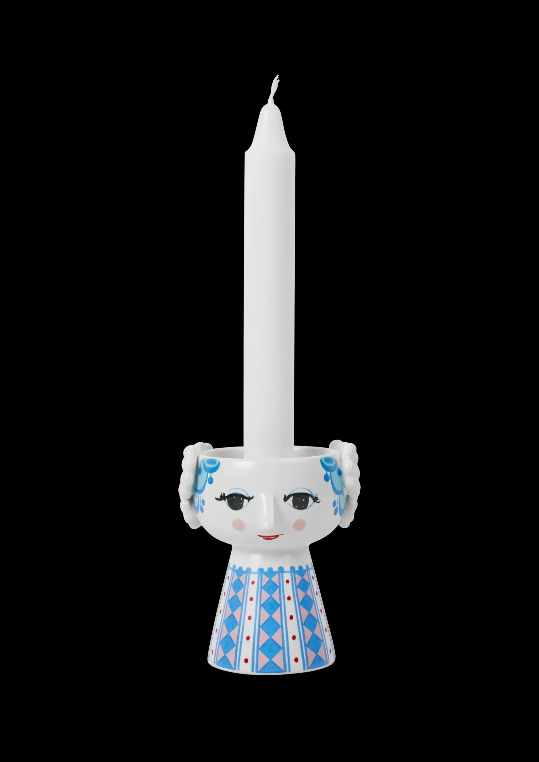 Bjørn Wiinblads stil er alt andet end minimalistisk. Den er overdådig, finurlig, vidunderlig – og stærkt defineret af levende farver og et unikt look. Du finder også mange af hans skæve og kunstneriske dekorationer på Eva-lysestagerne fra Bjørn Wiinblad. Designet er et sandt sammensurium af farver og geometriske former med en håndtegnet fornemmelse, der på en eller anden måde passer perfekt sammen. Og med denne smukke Eva-lysestage fra Bjørn Wiinblad med en dejlig blå nuance skaber du finurlighed i fuldt flor overalt i hjemmet. Lysestagen er 9,5 cm høj og har en diameter på 8 cm. Den er dekoreret med blåt hår og en farverig kjole med et flot diamantmønster i blå og lyserøde nuancer suppleret med rækker af røde prikker. Eva-lysestagen emmer af kærlighed til overdådighed og er perfekt til både fyrfadslys og stearinlys – eller helt alene som et lille skulpturelt indslag i indretningen. En Eva-lysestage pynter og skaber glæde både på bordet og på hylden, hvor den lyser op og gør hverdagen lidt mere farverig – præcis som Bjørn Wiinblad elskede det. Bjørn Wiinblad var en livsglad kunstner med en stor og farverig personlighed, der gik sine egne veje og ikke var bange for at drømme og tænke stort. Den sjæl mærkes også i Eva, der hviler i sig selv og inviterer os til at udtrykke vores egen stil og personlighed i indretningen. En ting er sikkert: Det bliver ikke kedeligt, når Eva flytter ind.