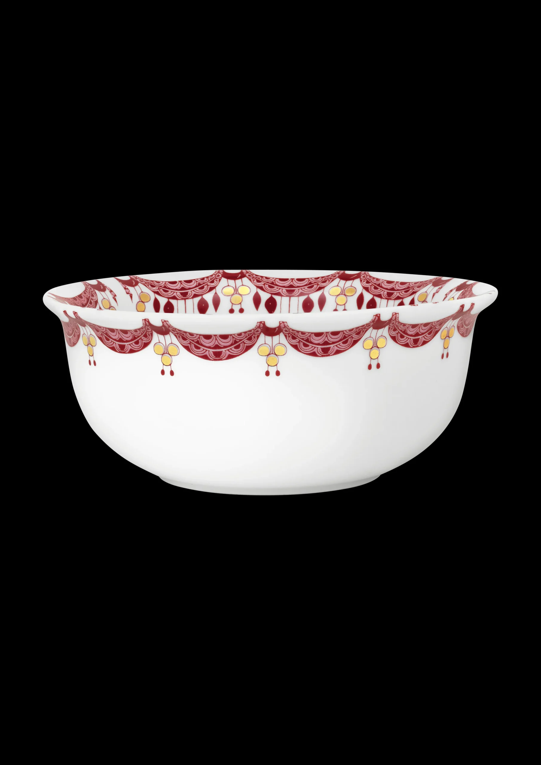 Denne søde juleskål i porcelæn spreder julestemning i ethvert hjem. Skålen er dekoreret med håndapplikerede julemotiver i ægte guld og rød, hvilket giver en flot effekt, når skålen stilles på bordet.nJuleskålen har en diameter på 20 cm og er 8 cm høj og kan kombinéres med tallerkener fra samme serie, og skab et eventyrligt julebord. nGuirlande-serien er en god gaveidé for alle, der holder af Bjørn Wiinblads fantasifulde univers.