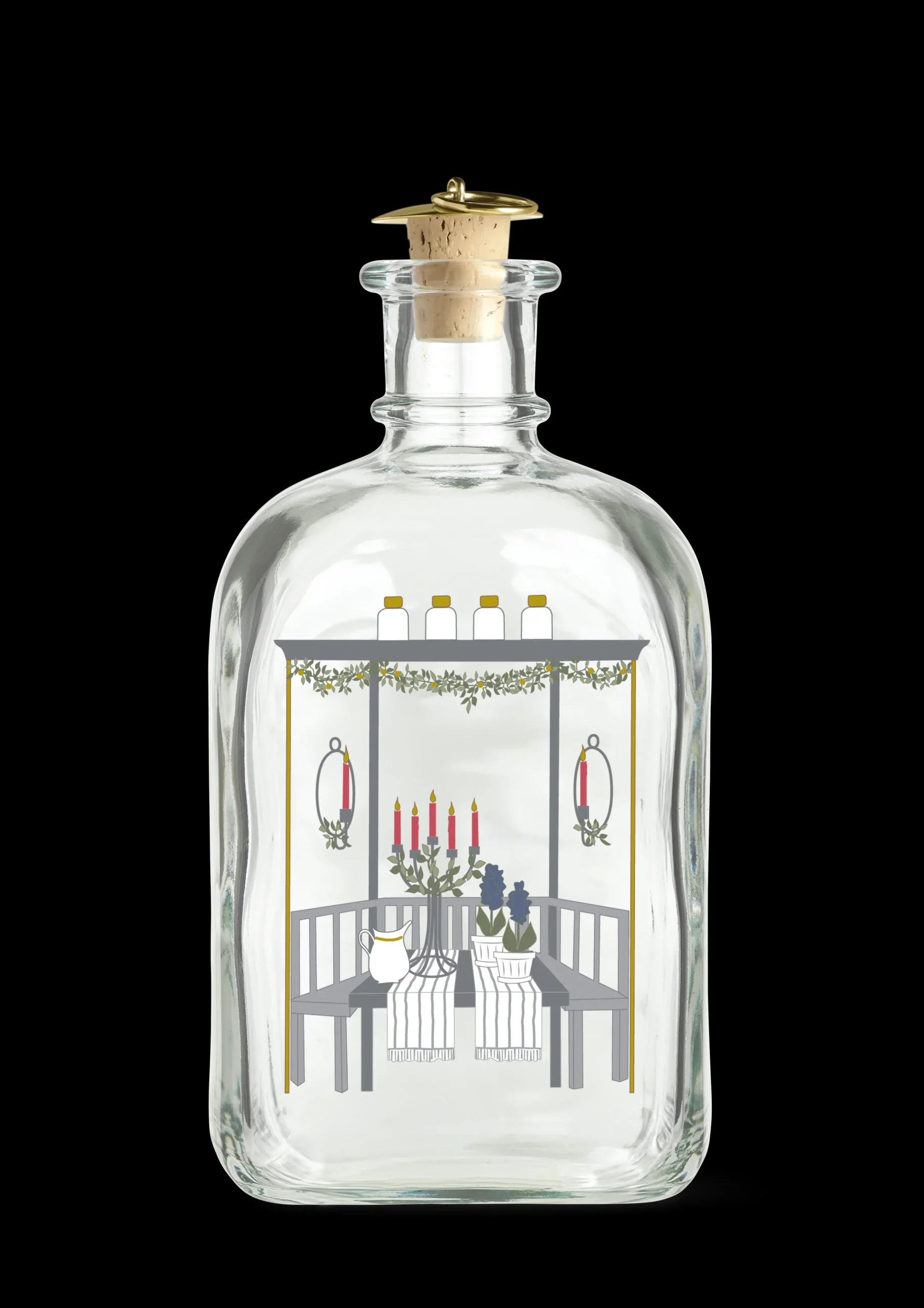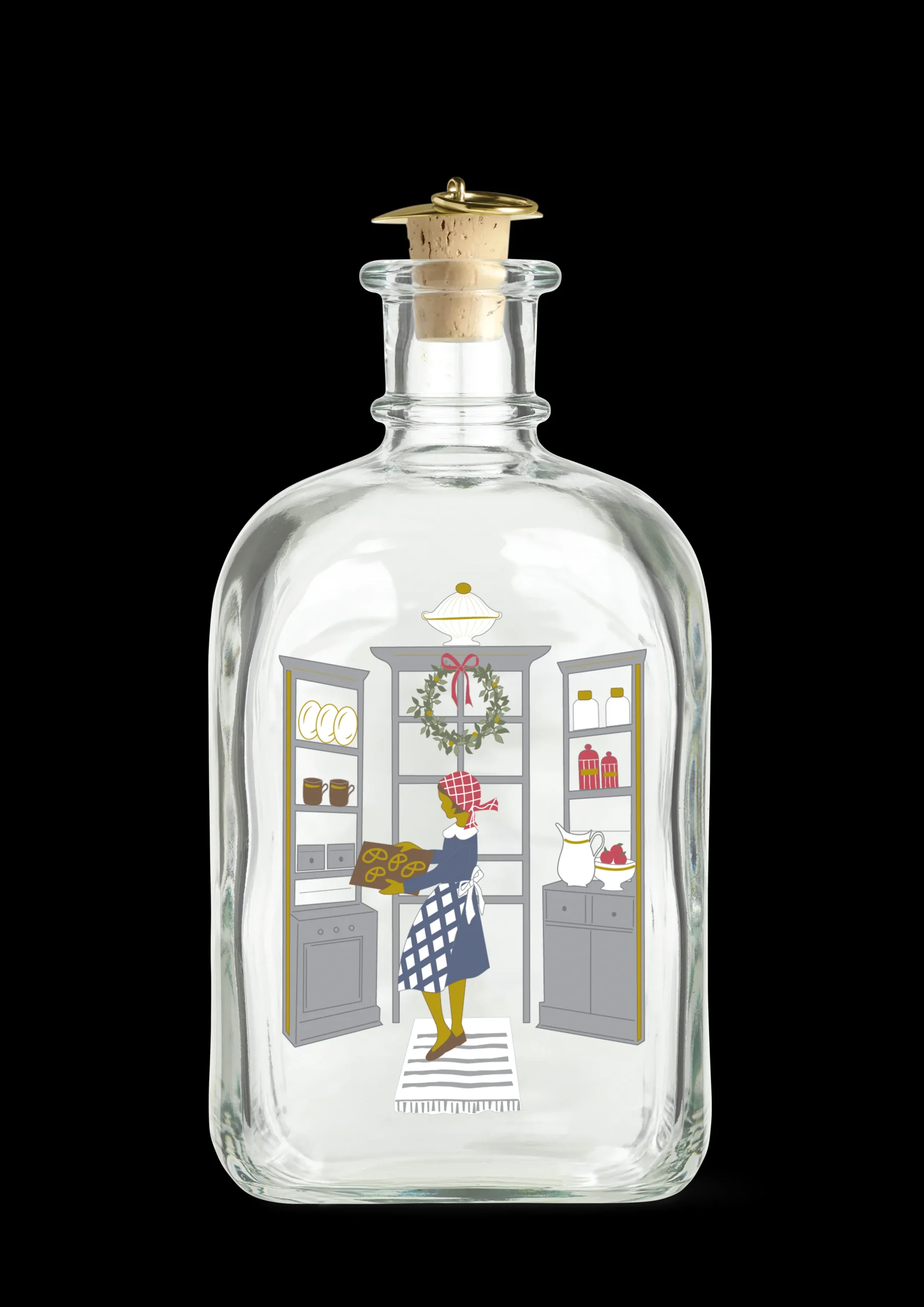 En følelse af jul som i gamle dage. Med kunstner Jette Frölichs nostalgiske og mesterlige papirklip inviterer Holmegaard Christmas dig med indenfor i julekøkkenet, der stemningsfuldt og levende rammer en nostalgisk og hyggelig julestemning. Oplev den ikoniske Holmegaard Christmas Juleflaske i 2024-udgaven og nyd kombinationen af Holmegaards refleksioner i glas og Jette Frölichs originale og kunstneriske univers, mens du hilser julen velkommen med familie og venner. Juleflasken er 21 cm høj og kan indeholde 73 cl – perfekt til årets hjemmelavede julesnaps. I 2024-motivuniverset tager Jette Frölich os med ind i hjemmets hjerte: køkkenet. I december er det her, magien sker, når der skal bages julekager og laves julemad, som vi har glædet os til smagen og duften af lige siden sidste jul. Men køkkenet er ikke kun et sted, hvor alskens julelækkerier bliver frembragt. Det er også her, vi hygger os og er sammen. Det er her, vi pakker gaver ind, hvor adventskransen tændes, og hvor vi får lidt varmt at drikke, når frosten bider udenfor. Her kommer bagværket duftende ud af ovnen, mel og sukker står fremme, juleæblerne pynter i skåle, og hyggen fuldendes med hyacinter i glas og julekranse i vinduerne. Holmegaard Christmas Juleflaske tåler ikke opvaskemaskine.