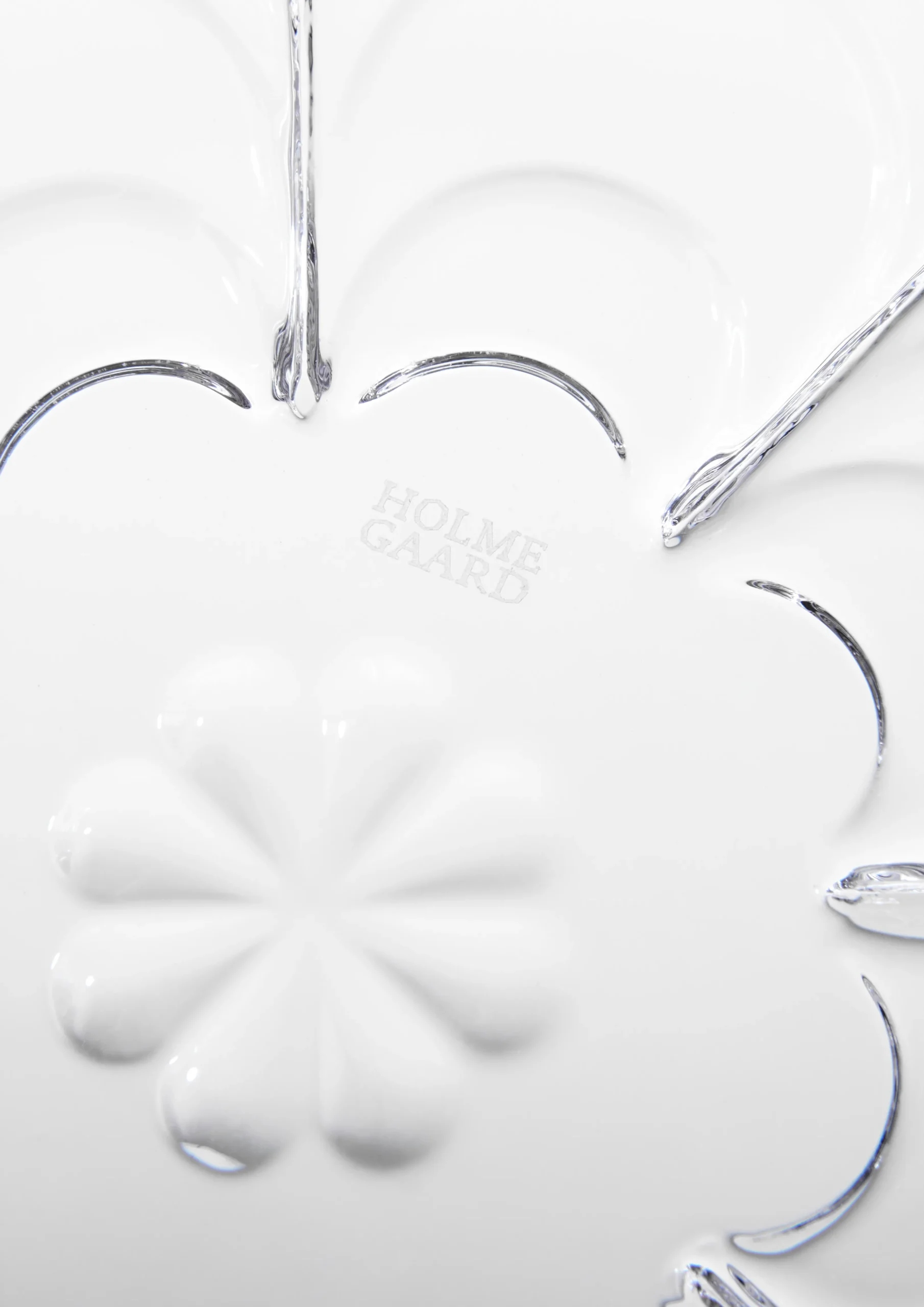Holmegaards serie Lily er inspireret af de forskellige stadier i åkandens blomstring og har det samme lette og poetiske udtryk som den smukke blomst. Isasietten i klart glas har en diameter på 16 cm og kommer i en pakke a to – perfekt til servering af desserter, is og kage. Blomstermønsteret træder frem som relief i det formpressede glas, der både er transparent og taktilt. Linjerne i designet er enkle, bløde og organiske, men stadig på en simplificeret og stilistisk måde, så der opstår en fin balance mellem det romantiske og moderne. Isasietterne er nemme at stable og kan også gå i opvaskemaskinen, så du kan bruge dem til daglig uden at skulle bekymre dig om at vaske dem op i hånden. I serien findes også en stor serveringsskål, en mindre skål og vandglas – alt sammen i fire forskellige farver. Alle delene i Lily-serien er skabt i gennemfarvet glas, så farven holder sig flot over tid.