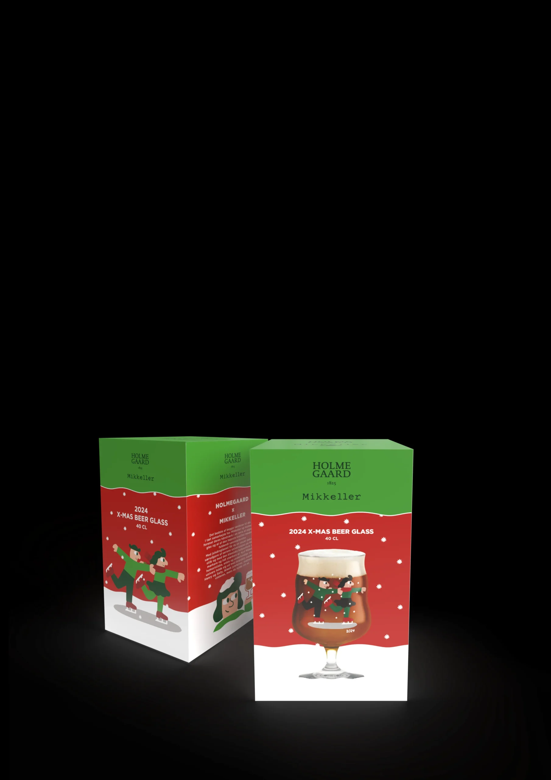 Holmegaard x Mikkeller – det bedste af begge verdener til din øl. I tæt samarbejde har Mikkeller og Holmegaard forenet deres håndværk i en serie af ølglas, hvor glas og øl af den højeste kvalitet mødes i en fuldendt sanseoplevelse. Med juleårsglasset får du en smukt dekoreret særudgave af seriens universalglas på 40 cl på stilk og med den klassiske tulipanform til de mørkere og lidt stærkere øl. Nyd Mikkellers humoristiske, enkle og underfundige visuelle univers folde sig ud med brandets maskotter Henry og Sally iklædt julefarver, skøjtende ud i vinteren, mens du nyder din øl. Inden for hver deres håndværk skubber Mikkeller og Holmegaard grænserne for, hvad der kan lade sig gøre og går aldrig på kompromis med hverken kvalitet eller kreativitet. Det er innovation og fornyelse, der danner grundstenene hos både Holmegaard og Mikkeller, og kompromisløst og med skarpt øje for detaljen bliver begge brands ved med at overraske og inspirere. Holmegaard er kendt for at skabe refleksioner i glas gennem generationer. Og serien med Holmegaard x Mikkeller-ølglas er den oplagte gaveidé til ølelskeren. Serveret i hvert sit specialdesignede glas vil du opleve både den enkelte øl og glassets fulde potentiale udfolde sig.