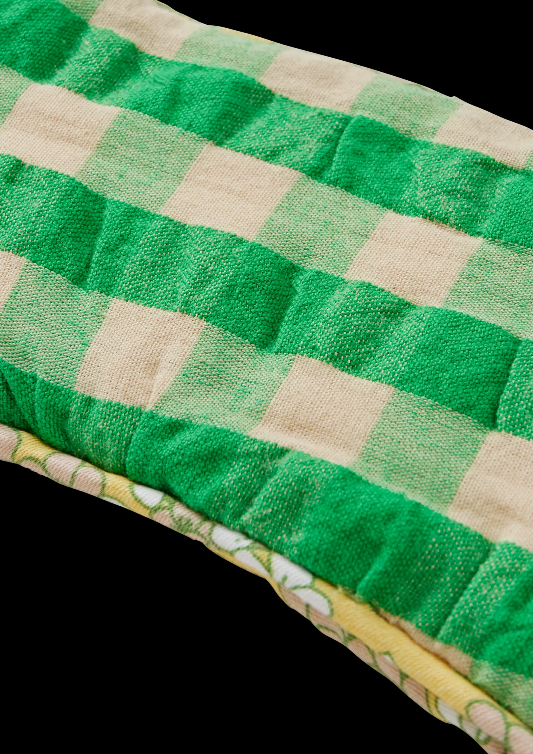JUNA handler om glæden ved at omgive sig med tekstiler, der gør livet smukkere, blødere, mere farverigt og sjovere – også når du sover. Og med Dodo fra JUNA får du en både smart og praktisk sovemaske med Bæku0026Bølge i farvekombinationen grøn/sand på den ene side og Pleasantly med en bundfarve i gul på den anden. Dodo-sovemasken er syet i 100% økologisk bomuld, og den dejlige bløde padding er perfekt til en god nats søvn med uendelige drømme. Samtidig sikrer den behagelige stofbeklædte elastik, at sovemasken er nænsom mod håret og altid sidder, hvor den skal. Kombinationen af Bæku0026Bølge-tern og Pleasantly-blomster giver et herligt mønstermix, hvor farverne er afstemt, så de to sider taler smukt sammen farvemæssigt. Det er helt op til dig og dit humør, hvilken side der skal vende udad. Som en del af JUNAs ansvarlige designfilosofi er sovemasken naturligvis som altid produceret af overskudsstof fra produktionen af JUNA-sengetøj.