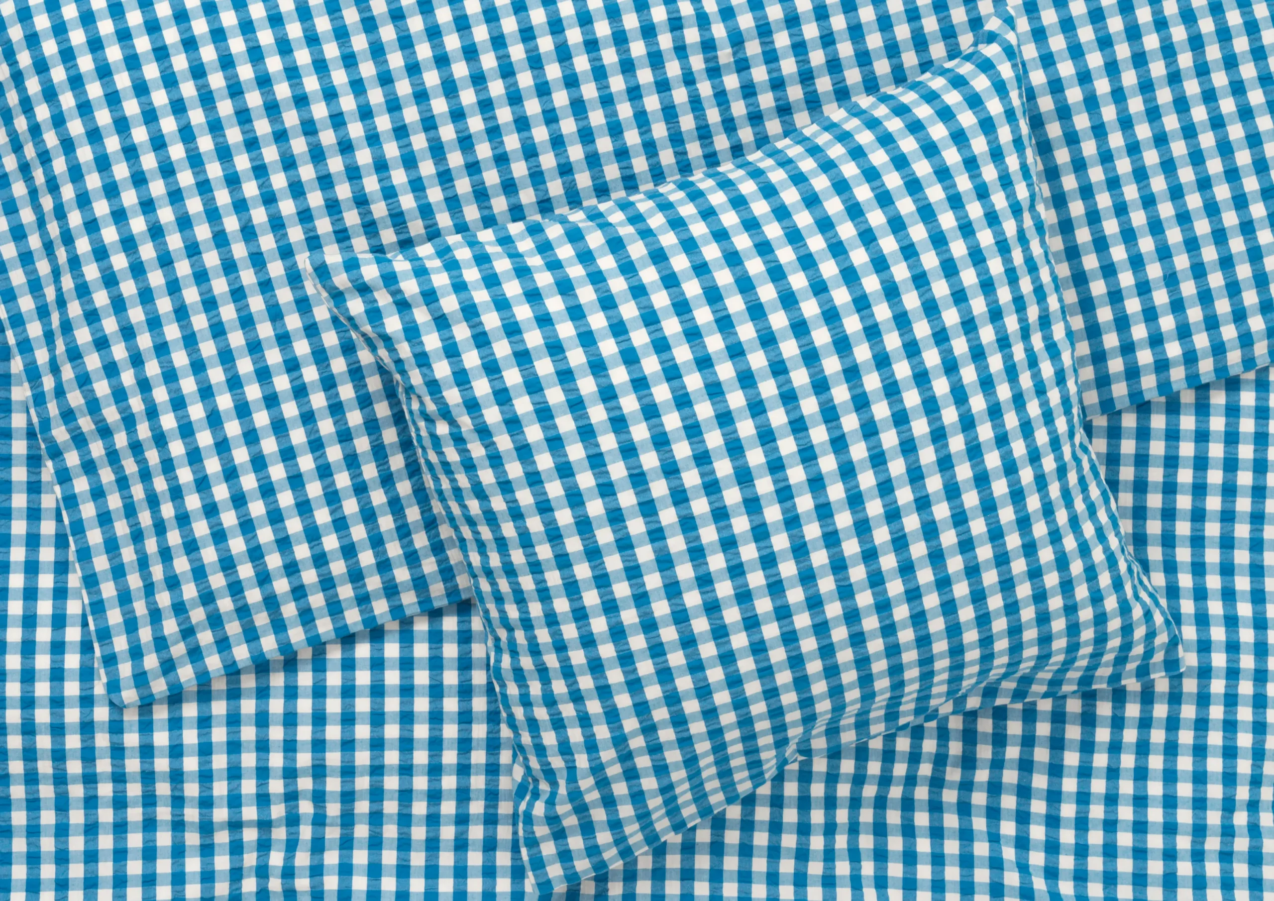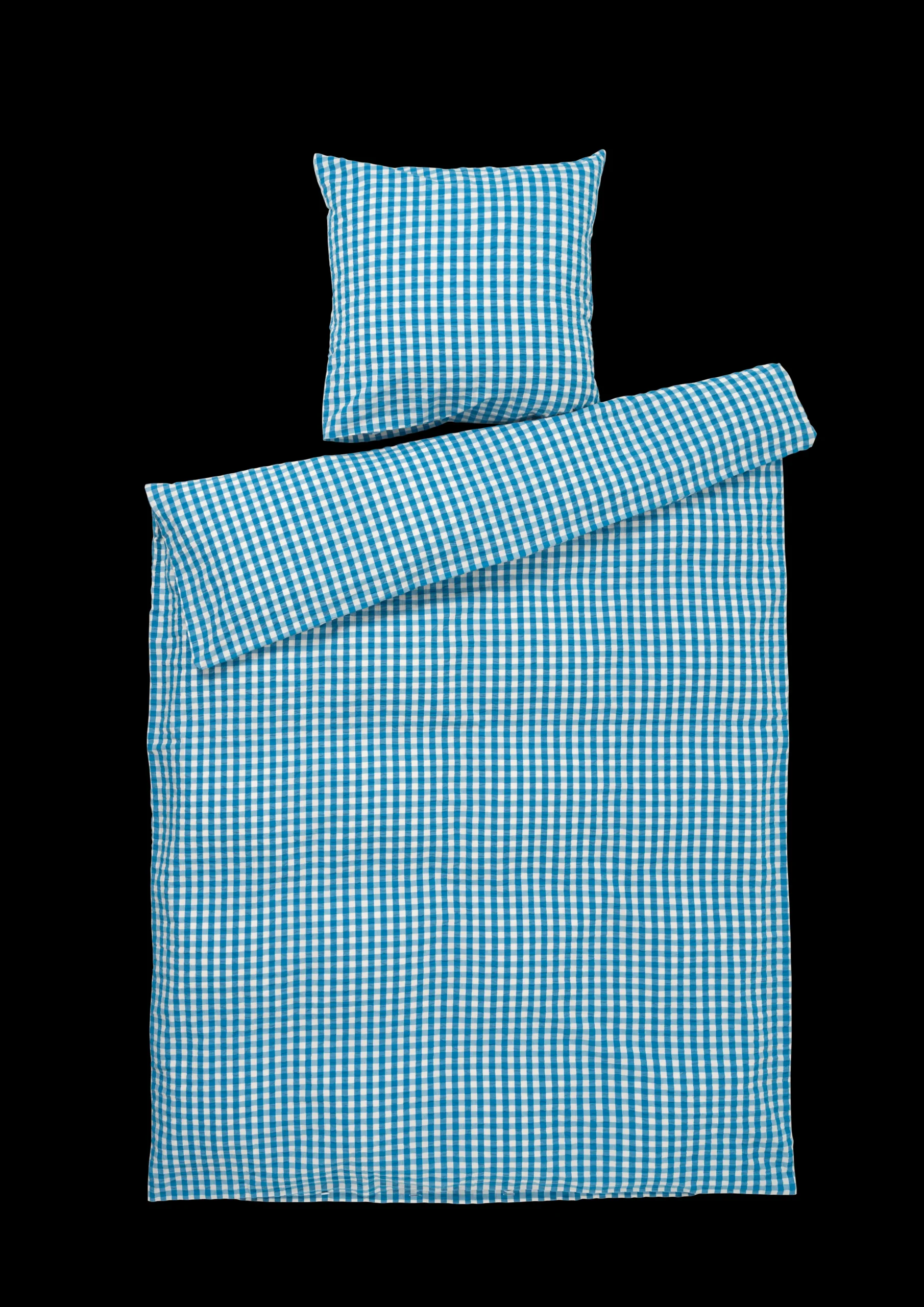 Det sæt tøj du bruger allermest tid i, er dit sengetøj. Derfor er sengetøj fra Juna skabt med intentionen om at være sanseligt, behageligt og 100% økologisk og bæredygtigt, så du trygt kan lægge dig til ro hver aften og få en god nats søvns. Juna handler om glæden ved at omgive sig med tekstiler, der gør livet smukkere, blødere, mere farverigt og sjovere. Derfor er farver og mønstre en stor del af Juna og giver sengetøjet en hyggelig og uhøjtidelig følelse. Den velkendte og klassiske ternede vævning fortolkes i en moderne farvepalet og det er netop kombinationen af det nostalgiske og nyskabende er med til at skabe en unik og glad stemning i indretningen. Den ternet Bæk u0026 Bølge i blå/birk har en dybde og klarhed over sig, der minder om havets farve på en sommerdag. Materialet er 100% økologisk bomuld, der både er OEKO-TEX®-mærket og GOTS-certificeret. Pudebetrækket lukkes med kuvertlukning, mens dynebetrækket lukkes med knaplukning. Har du flere forskellige sengesæt fra Juna, kan du mixe og matche de forskellige farver og mønstre på kryds og tværs og skabe din helt egen stil i soveværelset. Bæk u0026 Bølge er vævet, så det har en helt speciel tekstur, der lader luften cirkulere mellem huden og dynen – perfekt til de varme sommernætter. Det giver en god nats søvn, så du kan restituere og lade op til en ny dag. Og så er det ovenikøbet strygefrit, så du kan lade den lune sommervind om tørringen og lægge sengetøjet på direkte fra tørresnoren. Sengesættet består af 1 dynebetræk på 140×220 cm og 1 pudebetræk på 60×63 cm.