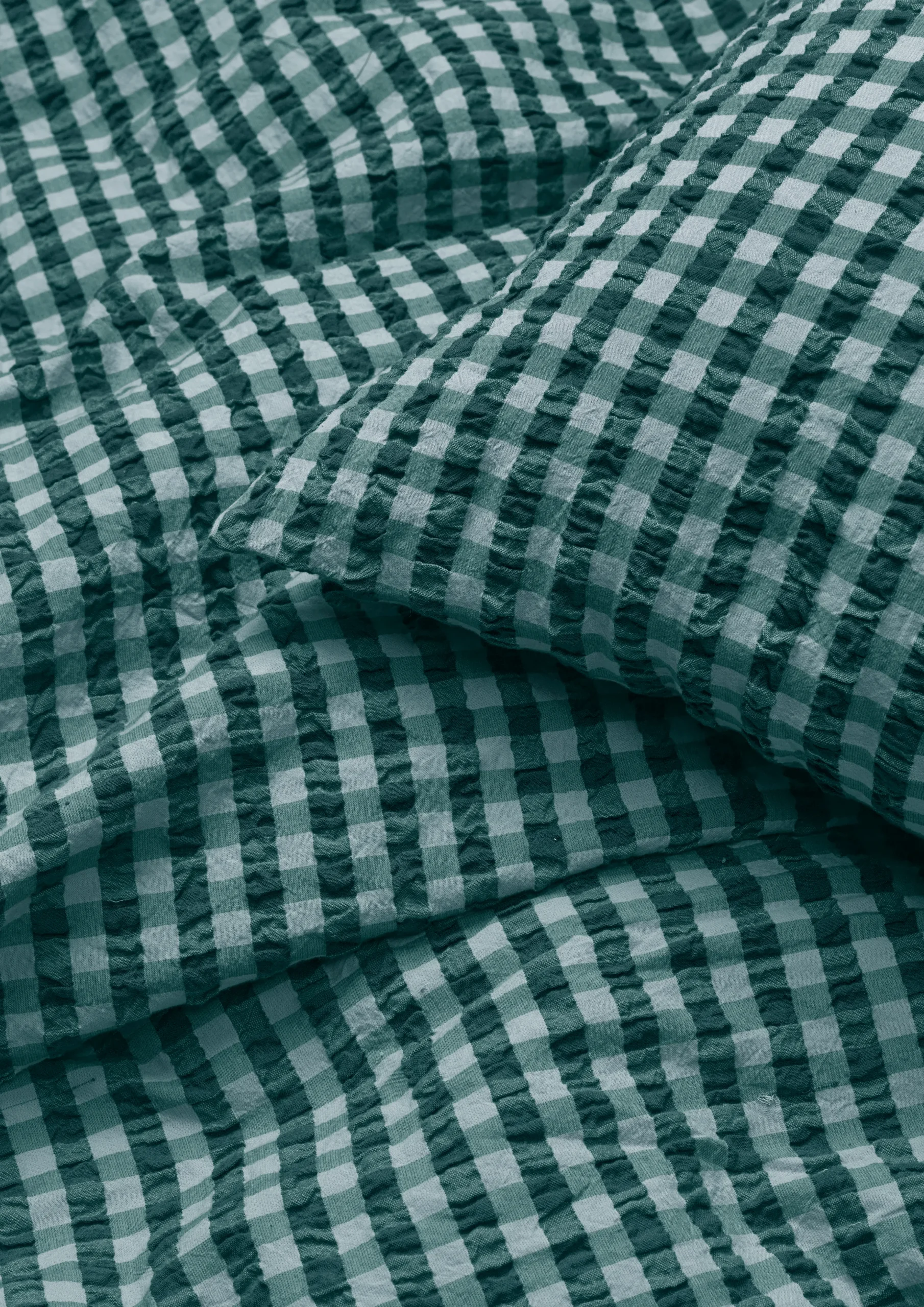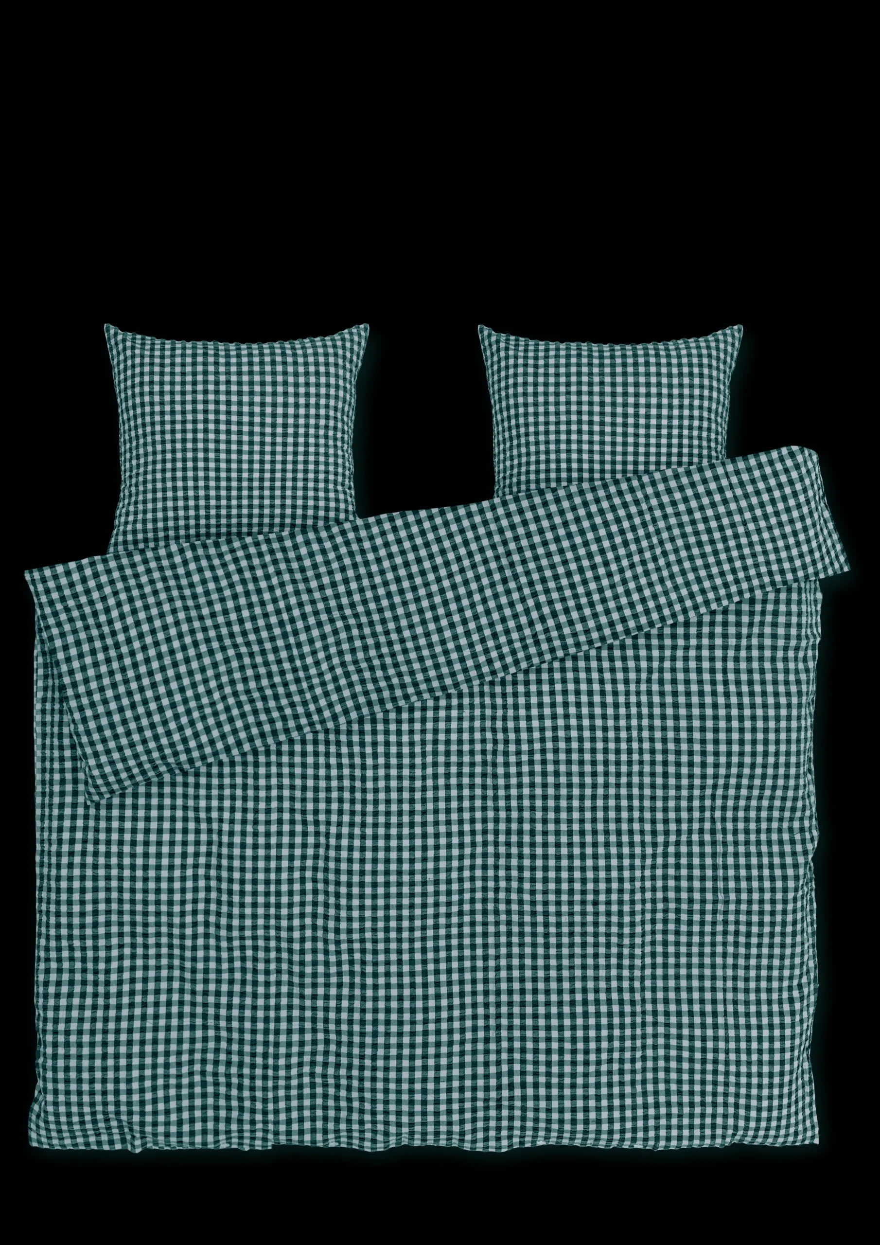 Sanseligt, behageligt, 100% økologisk og GOTS-certificeret. Sengetøjet Bæku0026Bølge fra JUNA er produceret ud fra bæredygtige principper og har en helt speciel vævning med en tekstur, der vækker minder. Måske kan du huske følelsen af stoffet fra barndommen, bedsteforældrene eller sommerhusferierne? Ikke alene er der noget nostalgisk over materialet – det er også funktionelt og lader luften cirkulere mellem din hud og stoffet. Det kalder på en god nats søvn, så du kan restituere og lade op til en ny dag. Sengetøjet til dobbeltdyne med ekstra længde måler 200×220 cm og kommer i den drømmende farvekombination grøn/lys blå, der er inspireret af det nordiske vinterlandskabs helt særlige nuancer som nåletræernes stedsegrønne farvepalet og de bundfrosne søers isblå toner. Har du flere forskellige Bæku0026Bølge-sengesæt fra JUNA, kan du lege med at blande de forskellige farver og mønstre på kryds og tværs og skabe dit eget drømmende univers i soveværelset, i sofaen, i hængekøjen, på altanen, eller hvor du nu tager din dyne og pude med hen. Du kan gøre lige, hvad du drømmer om. (GOTS ”Organic” Certified by Control Union, CU1026087)