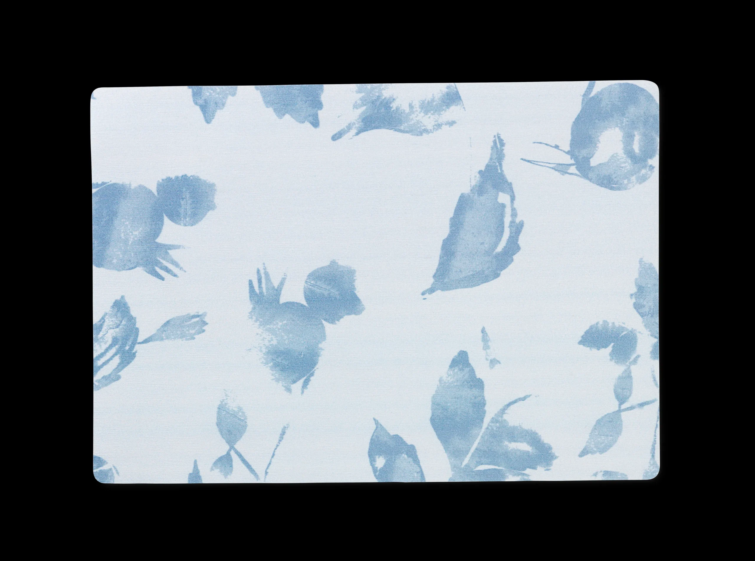 Den blå Hiprose-dækkeserviet med print af hybenblomster og hybenblade er designet af Ditte Vestergaard Guldbrandsen for JUNA. Den smukke dækkeserviet måler 43 x 30 cm, og den er fremstillet i 50 % bomuld og 50 % polyester med overfladebehandling i akryl, der sikrer nem rengøring af dækkeservietten, der blot skal tørres af med en fugtig klud efter behov. Hiprose-dækkeservietten har ligeledes skumbagside, så den ligger stabilt fast på overfladen.