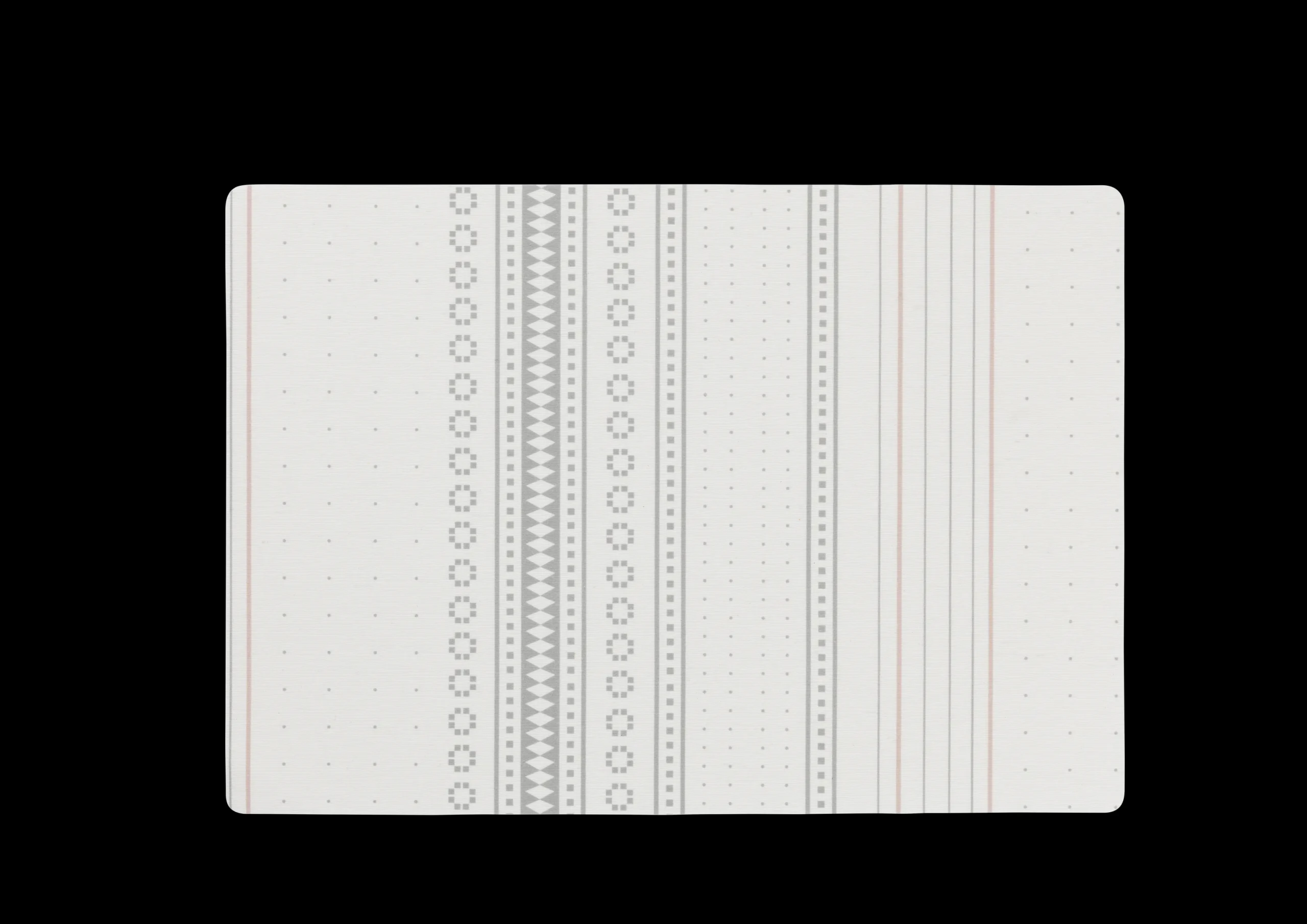 Elegant, hvid dækkeserviet med smukke, bohéme-inspirerede striber. Striberne har fine mønstre af prikker og rhomber, der giver et romantisk og feminint udtryk. Dækkeservietten er en del af JUNAs Cosmos-serie og måler 43×30 cm. Den er lavet af 50% bomuld og 50% polyester med akryl, der gør den yderst rengøringsvenlig – den skal blot tørres af med en fugtig klud. Cosmos-dækkeservietten har desuden en praktisk skumbagside, der beskytter dit spisebord mod varme tallerkener og gør, at den ligger særligt godt på bordet.