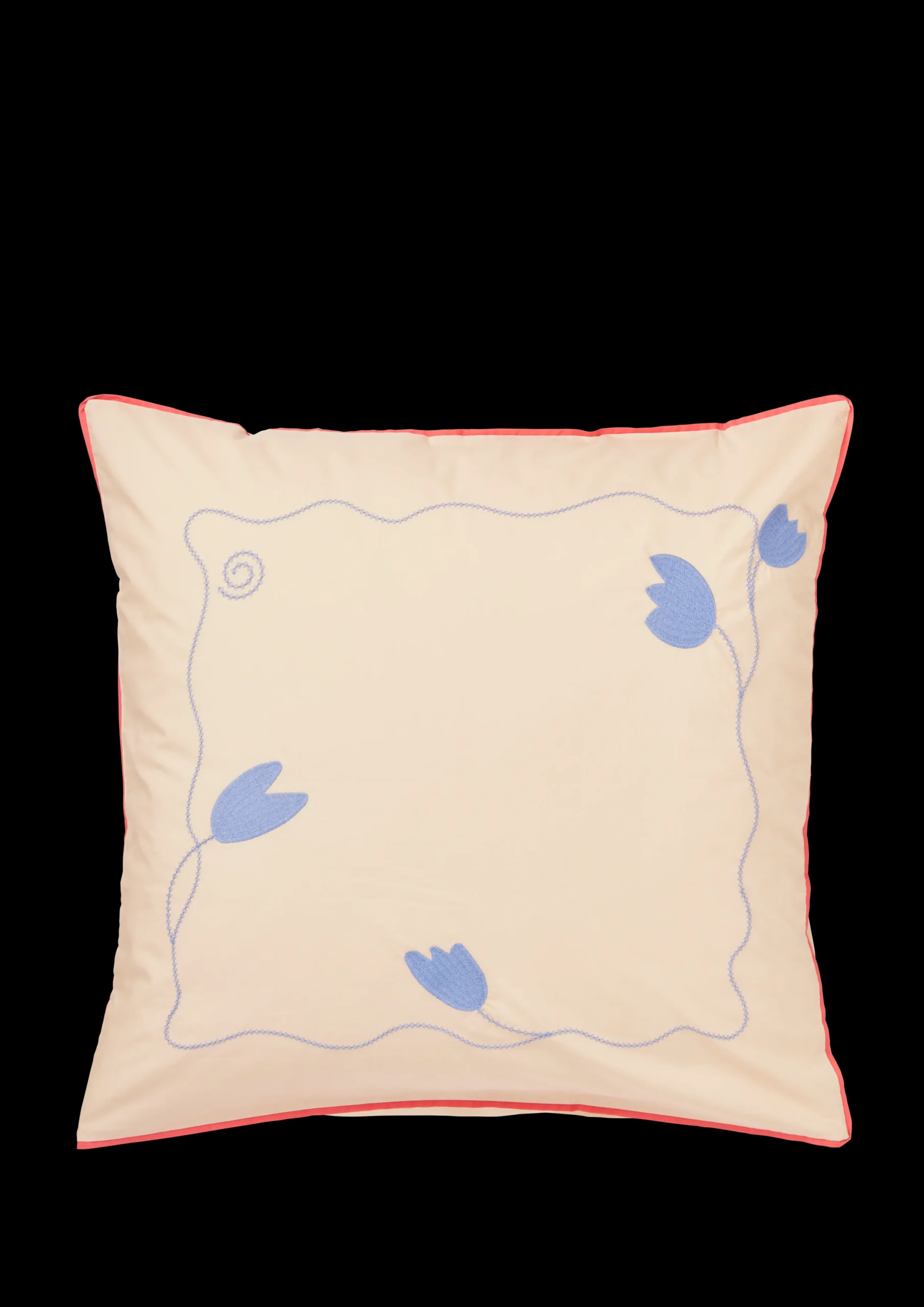 Med designsamarbejdet JUNA X KIMPOP fortolker de farverige personligheder Sofie Linde og Joakim Ingversen JUNAs drømmende univers i deres farverige, legende og unikke stil under navnet KIMPOP. Deres første kollektion Lollipop byder på bølgende kurver, overraskende linjer og moderne farvekombinationer, der skaber en farvestrålende og fantasifuld stemning i soveværelset, i sofaen, i lænestolen, på din daybed, eller hvor du ellers hygger dig i nattøj med din dyne og pude. Præcis ligesom JUNA ønsker Sofie Linde og Joakim Ingversen at skabe en hyggelig og uhøjtidelig følelse med deres tekstildesign, der inspirerer til store drømme i farverige omgivelser. Hele Lollipop-serien er desuden fremstillet i 100% økologisk bomuld, og tekstilerne er GOTS-certificeret, hvilket betyder, at du er sikret en ansvarlig produktion og tekstiler af en høj kvalitet skabt med omtanke og omsorg over for både miljø og mennesker. Pudebetrækket i farven sand måler 63×60 cm og har en fremtrædende rød piping hele vejen rundt mod kanten, der står i smuk kontrast til stoffets underspillede sandfarve. Desuden er pudebetrækket dekoreret med broderede detaljer a la moderne mormor. Som en gammeldags blonde i en ny fortolkning bølger en blå blomsterranke og forener det ultramoderne med det hjemlige og hyggelige. Alt sammen i en skøn, umiddelbar stil. Og så gør det jo heller ikke noget, at sengetøjet også bærer OEKO-TEX®-mærket, der er din garanti for, at dit sengetøj ikke er skadeligt for din sundhed og samtidig også mindre belastende for miljøet. (GOTS ”Organic” Certified by Control Union, CU1026087)nu003cbru003eVi anbefaler altid, at du vasker dit sengetøj før brug.