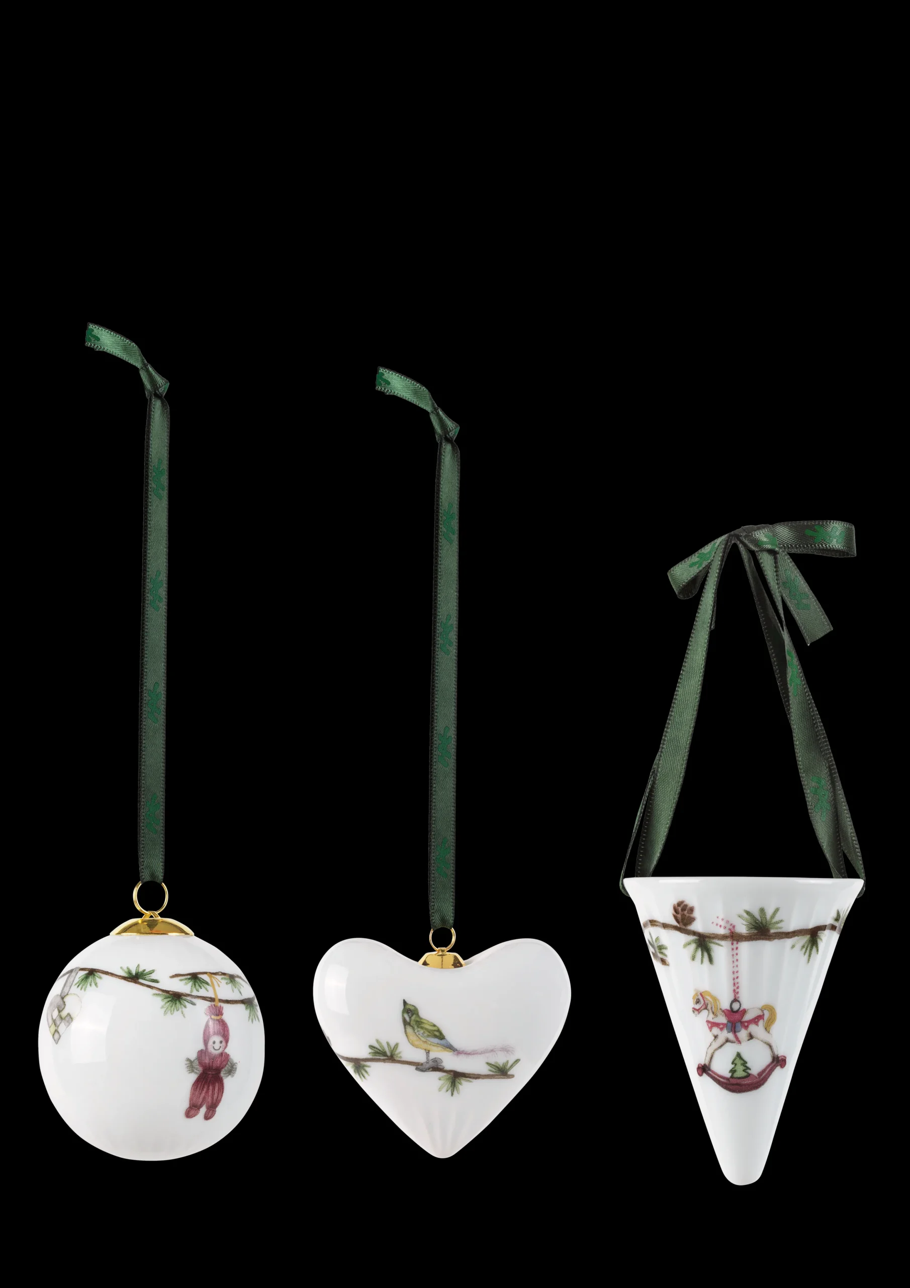 Hammershøi Jul er en klassisk serie fra Kähler, og her er introduceres nu et smukt julepyntsæt med den allerede kendte Julekugle, Kræmmerhus og Hjerte. Ophængene fra Kähler Hammershøi har de smukkeste motiver. Lad dem skabe julestemning ved at hænge i vinduet eller hæng flere ophæng på grene der placeres i en vase. Juleophæng fra Hammershøi er skabt med inspiration i julepynt og elementer fra naturen. Dekorationerne er nostalgiske jule-elementer som fugl, nisse, kanelstang, gyngehest mens den grønne lærkegren skaber en kontinuitet i designet. Motiverne er tegnet med en moderne streg og en farveskala, som bringer minderne om jul i gamle dage frem. Smukt design forenet med dekorativ elegance.