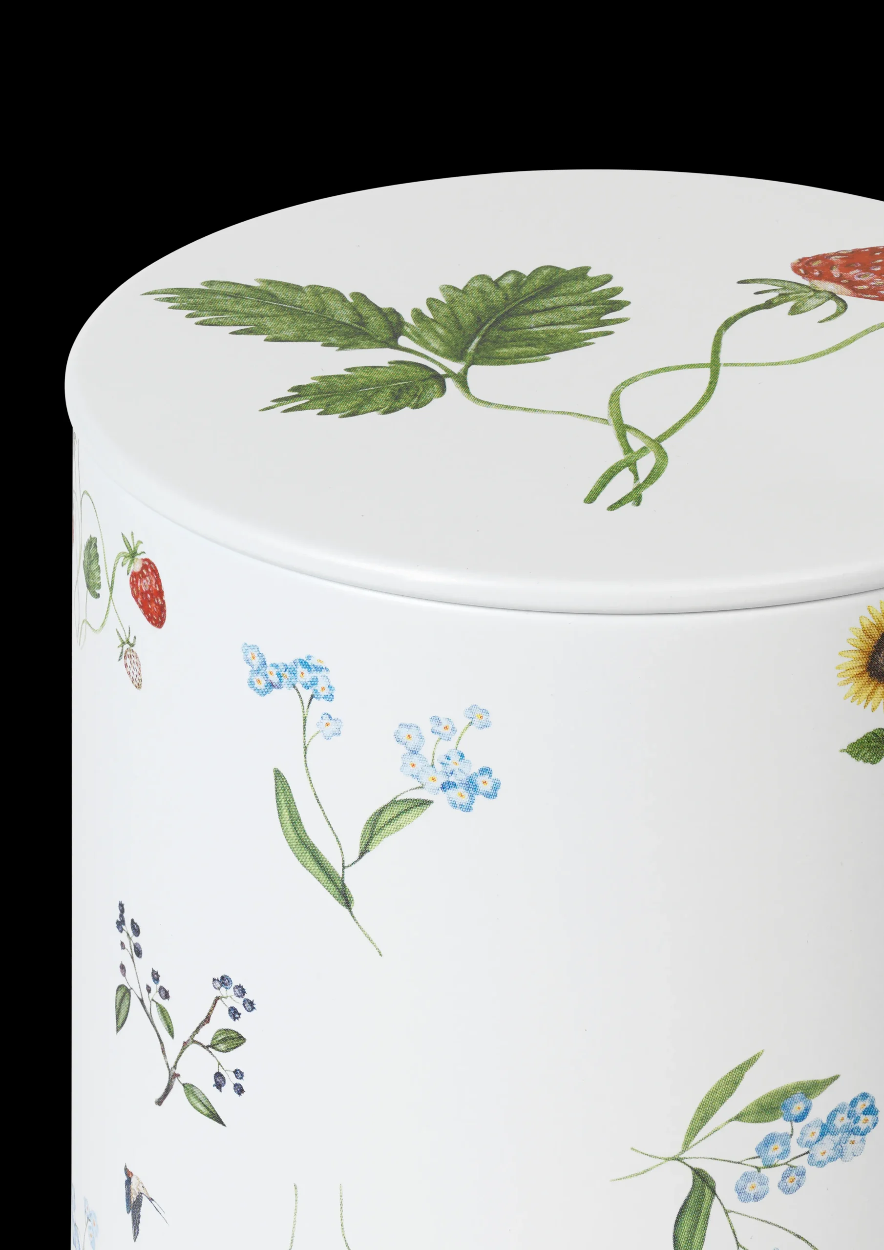 Blomstrende farver, former og følelsen af autentisk sommerstemning. Med Hammershøi Summer fra Kähler kan du næsten mærke solens stråler og den lune sommervind, når du dækker op til kaffe og lidt lækkert på terrassen, altanen eller i sommerhuset. Hammershøi Summer er inspireret af den danske sommers eventyrlige former, farver og følelser, og til 2025-sæsonen har en flot og stemningsfuld symfoni af de eksisterende motiver i Hammershøi Summer-serien fundet vej til et par stilfulde opbevaringsdåser. Denne Hammershøi Summer-opbevaringsdåse i flot dekoreret metal prydet med en symfoni af de forskellige Hammershøi Summer-motiver måler 18,5 cm i højden og er perfekt til småkager eller andre lækkerier til dig selv eller dine sommergæster – uanset om du lader dem stå på hylden i køkkenet, tager dem med ind på bordet eller blot ønsker at skabe masser af autentisk sommerhygge rundtomkring i boligen. Illustrationerne er placeret rundt på hele dåsen, så det giver et bedårende billede af de mange fine blomster og forskellige sommerfugle. Symfonitemaet er malet på metallet på samme måde som de andre temaer i Hammershøi Summer-serien, hvor planter og blomster nærmest bevæger sig uvilkårligt hen over de klassiske riller på de hvide keramikdele. Det er som om de nærmest vokser op, ja, næsten danser hen over overfladen med deres forskellige asymmetriske retninger. Har du allerede andre dele i Hammershøi Summer-serien, vil opbevaringsdåserne med symfonitemaet været et smukt supplement til de øvrige temaer og fuldende en glad og hyggelig sommerstemning på bordet, samtidig med at du nyder den autentiske nostalgi i Kählers håndlavede designtraditioner. Motiverne er skabt af kunstner Rikke Jacobsen på Hammershøi-stellets eksisterende dele designet af Hans-Christian Bauer. Med sine smukke akvareller skaber hun detaljerige motiver, hvor flora og fauna spiller en gennemgående rolle og indfanger stemningen i naturen og årstiderne omkring os.