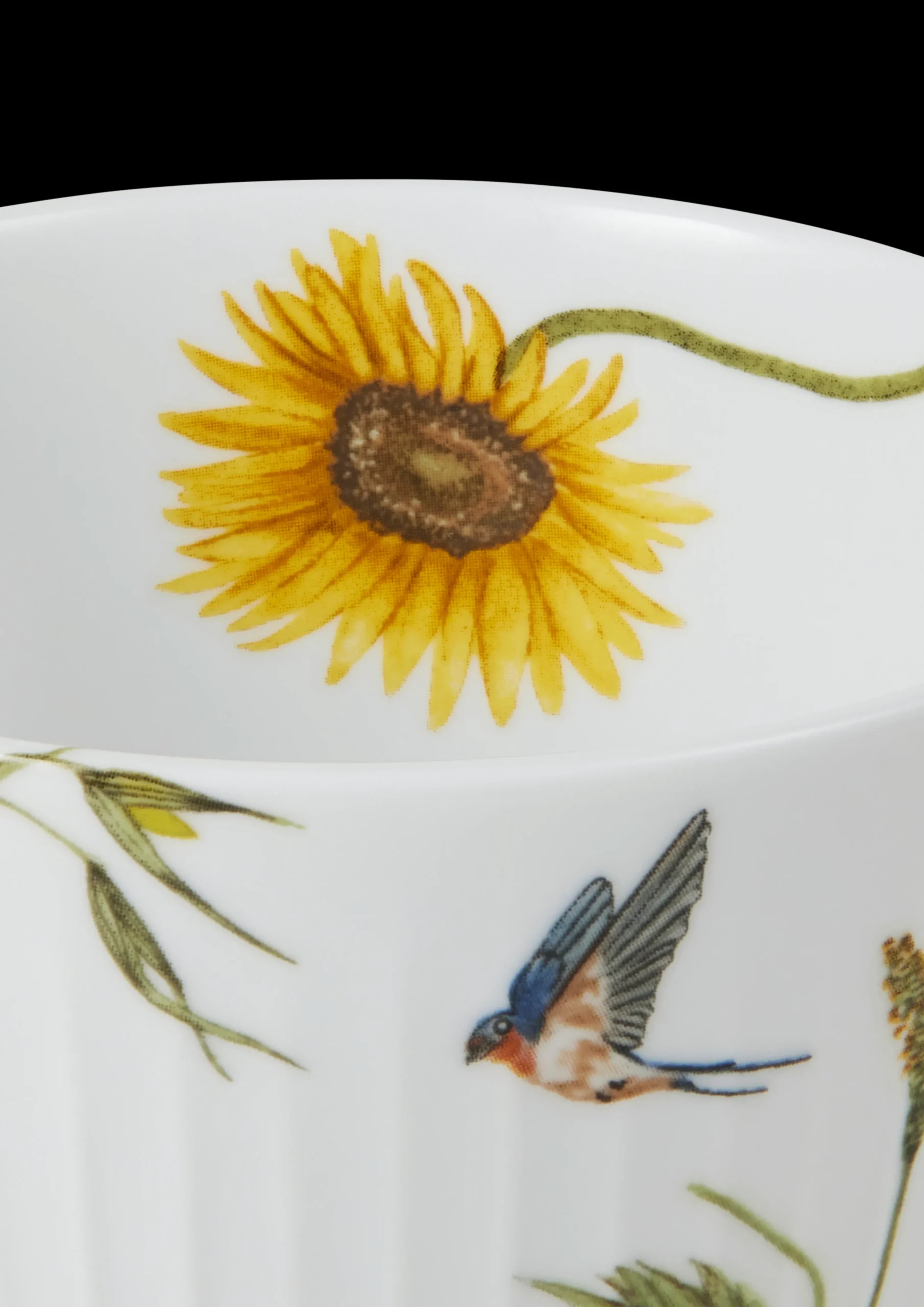 Med Hammershøi Summer fra Kähler kan du næsten mærke solens stråler og den lune sommervind, når du dækker op til kaffe og lidt lækkert på terrassen, altanen eller i sommerhuset. Serien er inspireret af den danske sommers eventyrlige former, farver og følelser, og den stolte solsikke og energiske svale pryder skålen med en diameter på 12 cm, der gør den oplagt til servering af bær, småkager eller andre lækkerier til sommergæsterne. Har du allerede andre dele i Hammershøi Summer-serien, vil skålen været et smukt supplement til de øvrige temaer sommerbær og forglemmigej og fuldende en glad og hyggelig sommerstemningen på bordet, samtidig med at du nyder den autentiske nostalgi i Kählers håndlavede designtraditioner. På skålen er solsikken foreviget på forskellige måder, så man fornemmer den bevægelse, den gennemgår i løbet af dagen: Den åbne blomst står mod solen fra morgenstunden og bevæger sig i løbet af dagen, så den hele tiden fanger så meget sol som muligt. Sidst på dagen drejer solsikken mod vest, og i løbet af natten drejer den mod øst og venter igen tålmodigt på solens første stråler. Motiverne er skabt af kunstner Rikke Jacobsen på Hammershøi-stellets eksisterende dele designet af Hans-Christian Bauer.