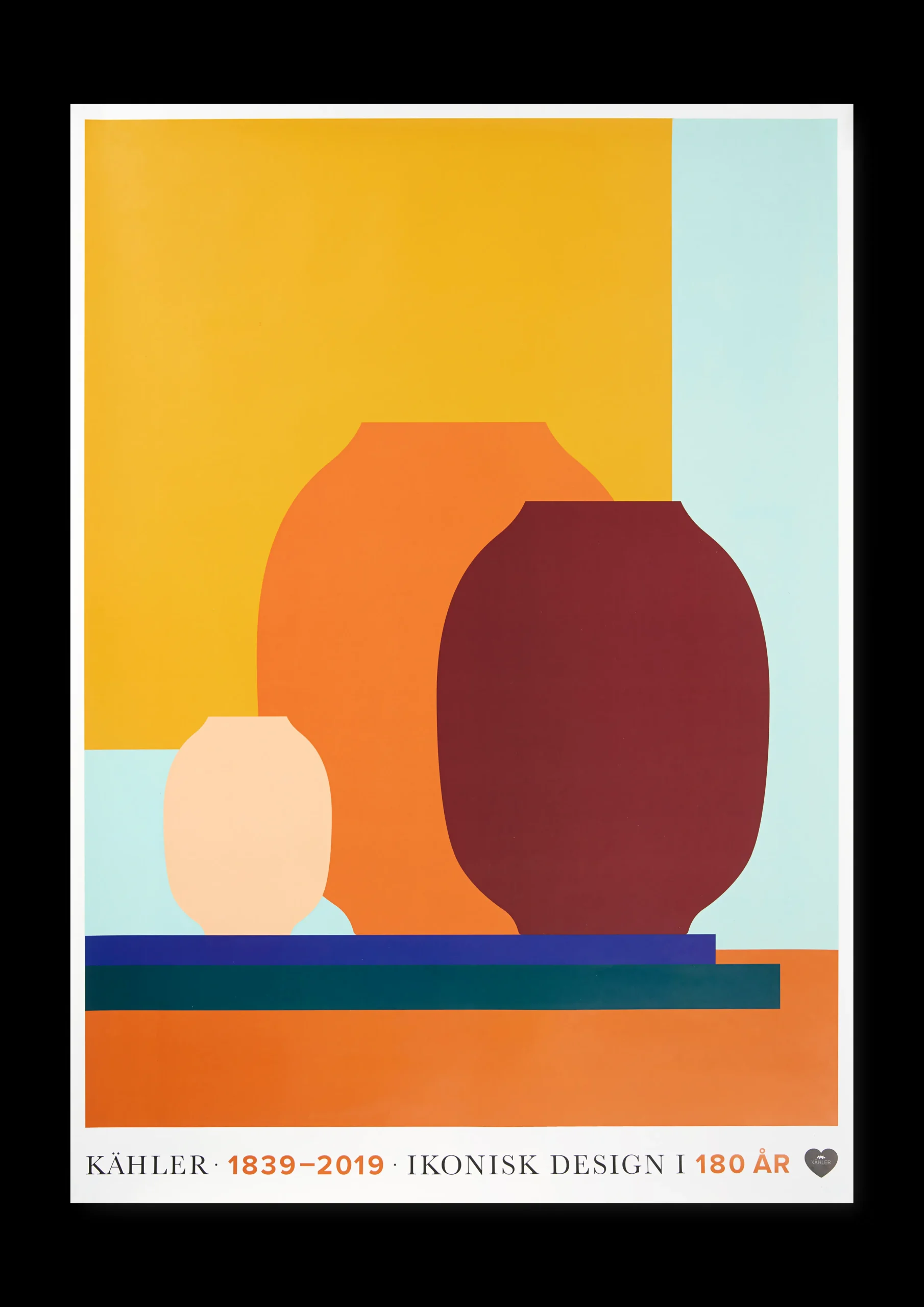 Skøn plakat fra ikoniske Kähler. Plakaten er lavet i forbindelse med Kählers fejring af 180 års jubilæum, og måler 50×70 cm. Den perfekte tilføjelse til hjemmet.