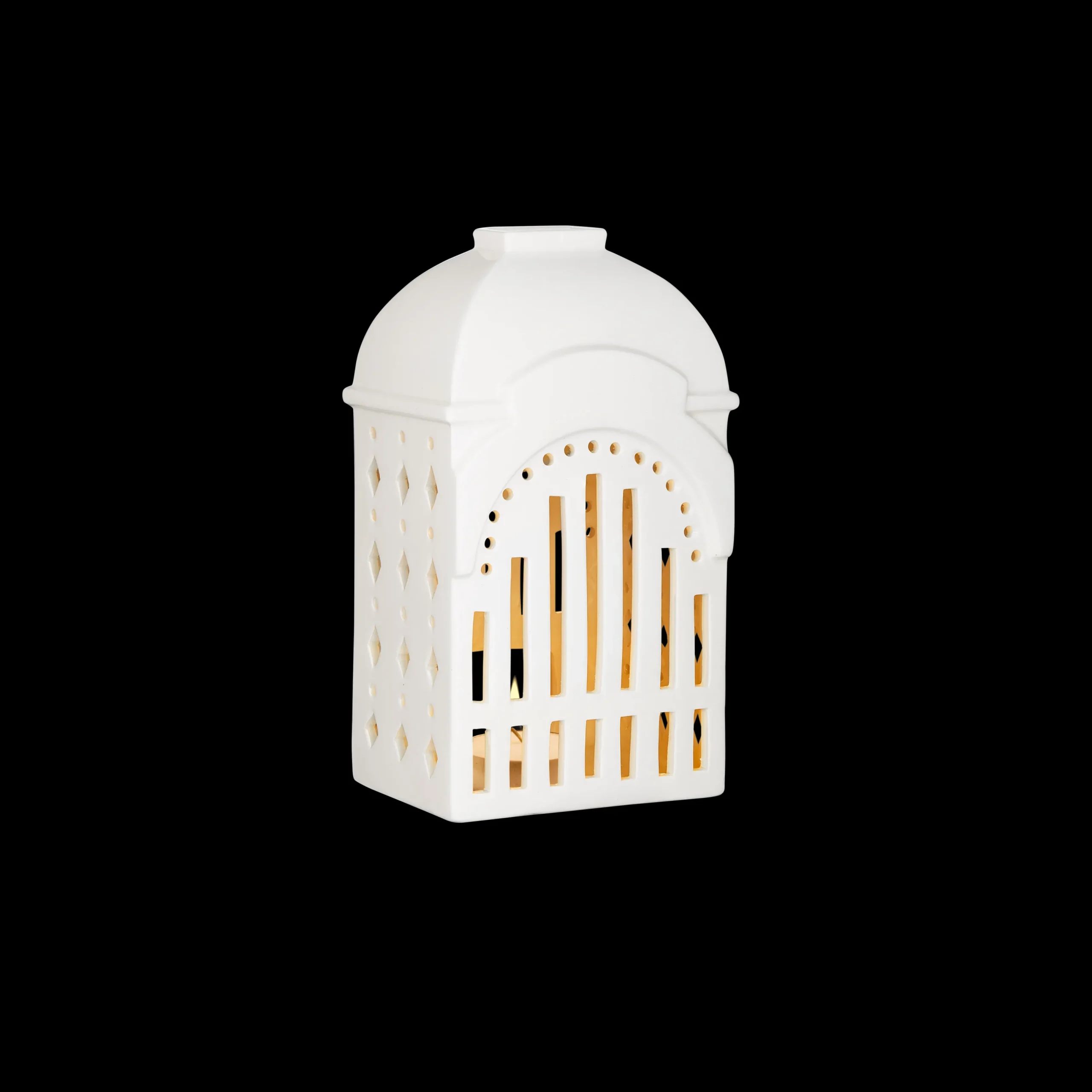 Tivolis hovedindgang blev indviet i 1890 og bygget af arkitekterne Richardt Bergmann og Emil Blichfeldt.nBache og Bendix Becker står bag Urbania, der er en serie af små fajance-huse, der er beregnet som en lukket fyrfadsstage. De keramiske lyshuse afspejler en moderne fortolkning af byrummet gennem et elegant og eksklusivt udtryk og er klassisk keramik i et smukt og nordisk design. Lyshusene er præget af stramme silhuetter, der skaber plads til kreativitet i designet af hvert enkelt vindue, der alle er udskåret i hånden, og forener Kählers unikke kulturarv med moderne kvalitetskeramik. Tivoli lyshus måler 18 cm i sin højde og er perfekt i vindueskarmen.
