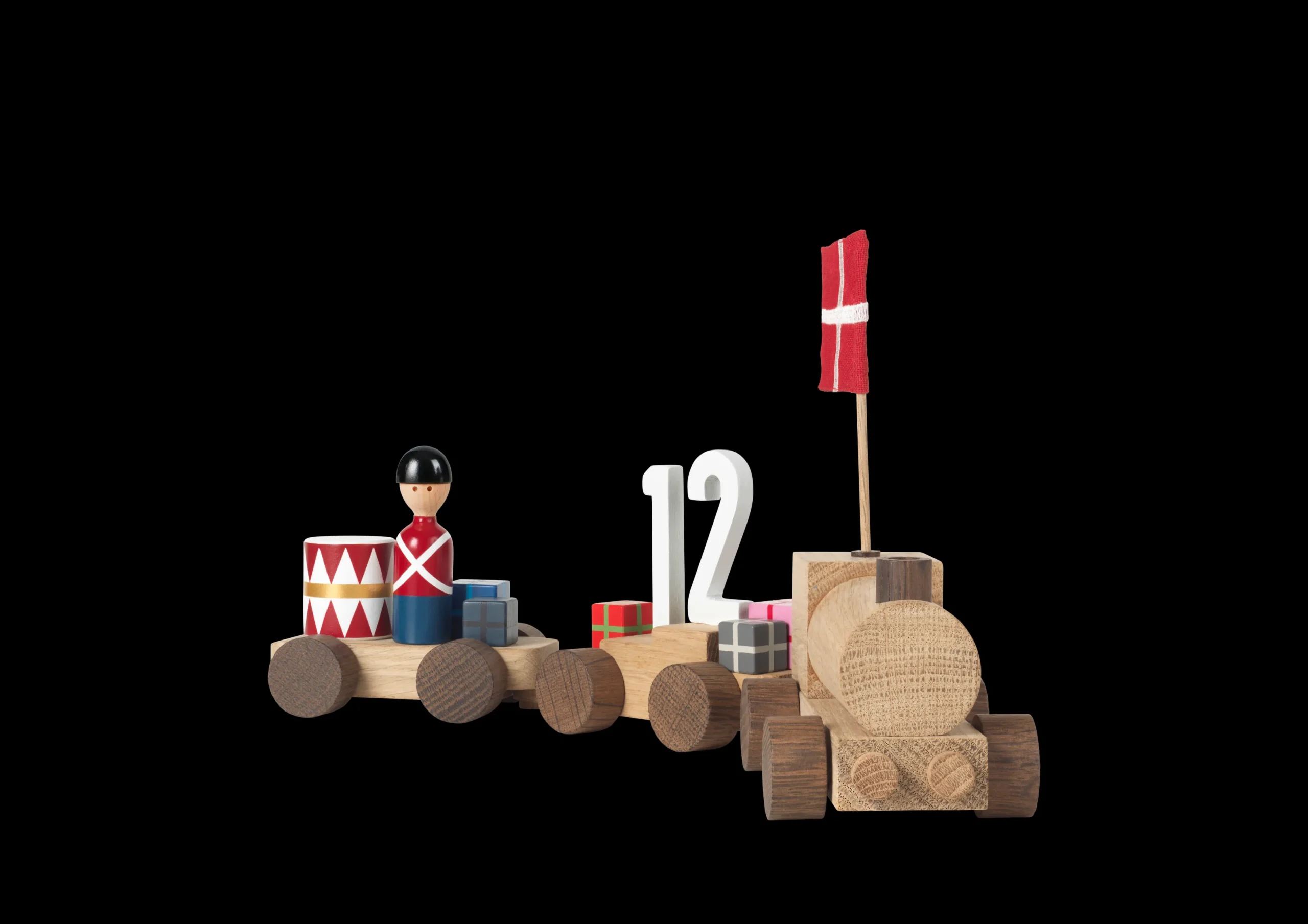 Dette fine fødselsdagstog er inspireret af et originalt Kay Bojesen-tog og skal selvfølgelig bruges som en dekorationsgenstand ved fejring af fødselsdage, men det fungerer også perfekt som pynt på hylden, så du hver dag kan nyde Kay Bojesens originale fortællinger i træ. De tre vogne er prydet med flag, farverige pakker, tal, den lille garder og en tromme – alle festlige elementer fra Kay Bojesens univers. Du får med Kay Bojesen-fødselsdagstoget også tal fra 0 til 9 (2 stk. 1-taller), der ligesom flaget kan sættes i flere huller i vognene, så du kan skabe lige præcis den kombination, du bedst kan lide. Fødselsdagstoget er ikke legetøj, men tænkt til dekoration.