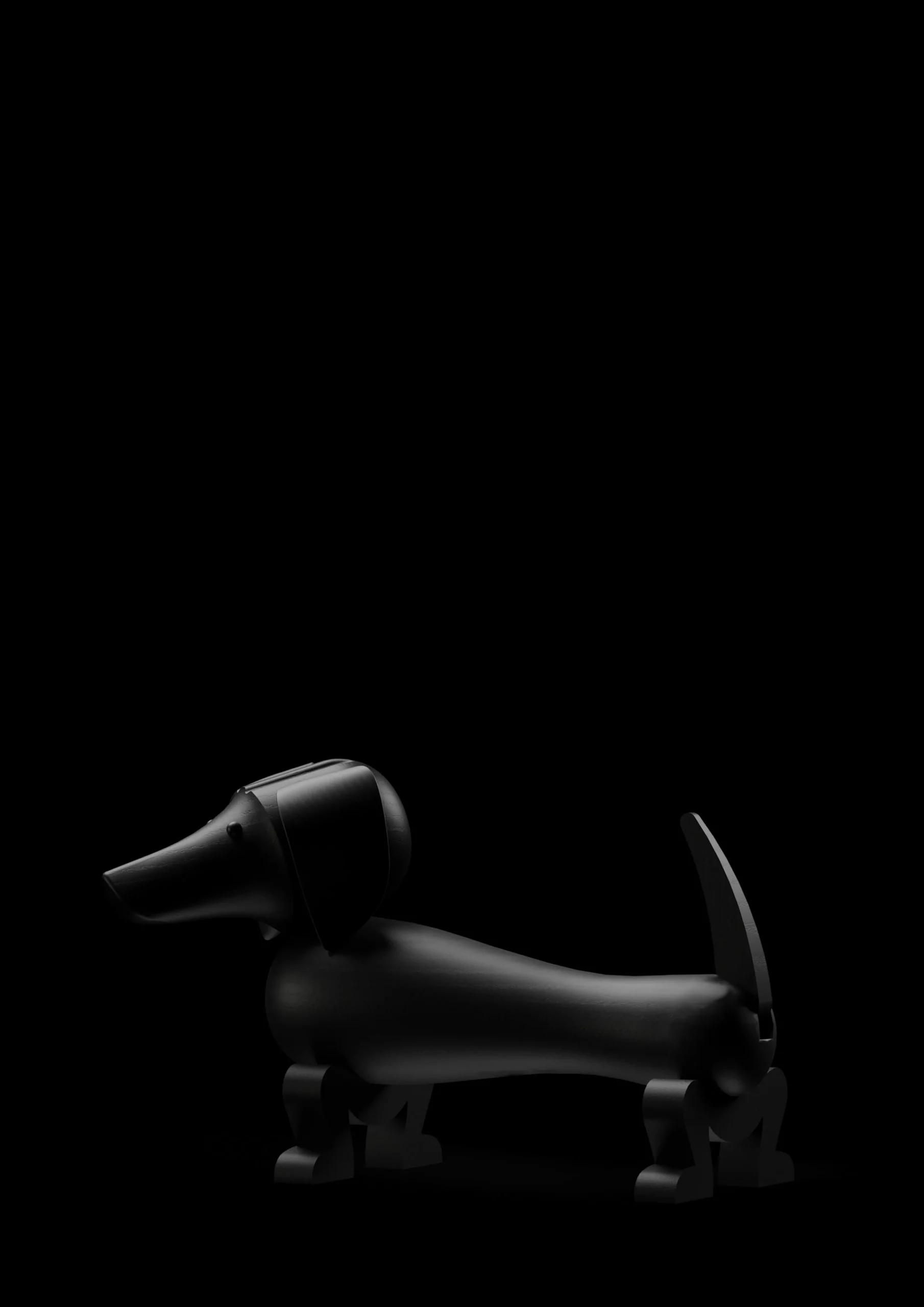 Med sit moderne og minimalistiske udtryk er det ikke til at se, at Gravhunden Pind er fyldt 90 år i 2024. Skabt af Kay Bojesen i 1934 er den blot endnu et bevis på, at Kay Bojesen formåede at skabe ikoniske designs, som vi aldrig bliver trætte af at kigge på. Faktisk var gravhunden et af de allerførste dyr, som Kay Bojesen skabte, og de runde former, bløde kanter og smilende linjer, der blev hans signatur, er allerede tydelige i designet af Pind. Jubilæumsversionen af Gravhunden er udformet i mørkbejdset eg, og på billeder fra arkivet ses det, at Kay Bojesen faktisk lavede ganske få mørke Gravhunde i sin levetid. Derfor var det helt på sin plads at genoplive Pind med mørk ’pels’ til jubilæet, hvor den mørke bejdse giver en smuk glød og et varmt udtryk til det liv og spil, der er i egetræet. Den mellemstore jubilæumshund måler 28,5 cm – en original størrelse, der ikke før har været sat i produktion, men som var den størrelse Kay Bojesen lavede Pind i tilbage i 1934. Denne størrelse Gravhund løfter desuden hovedet på en særligt charmerende måde og kigger tillidsfuldt op. Pind er forsynet med et 90-årslogo og produceres kun i 2024 i forbindelse med jubilæumsfejringen.