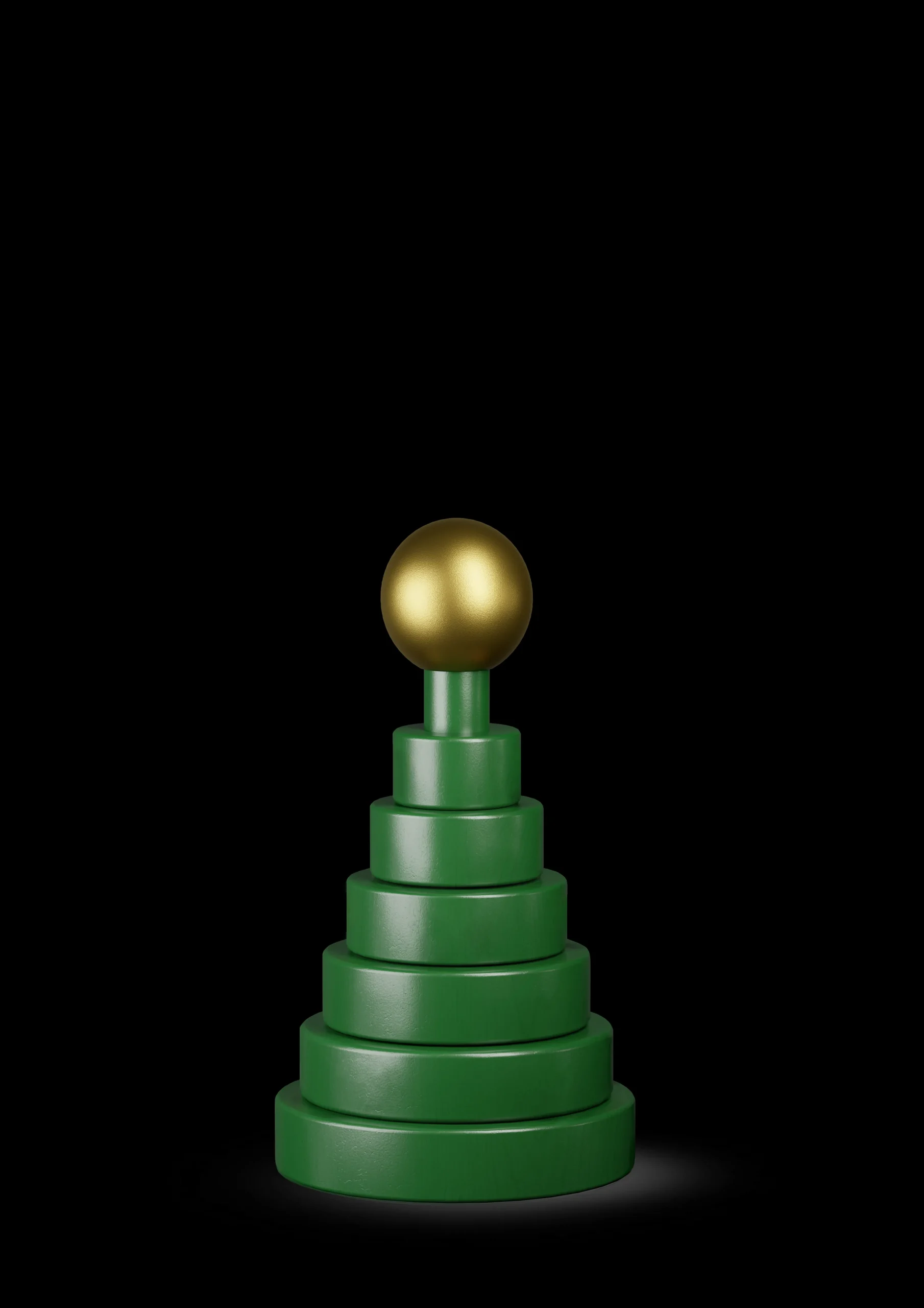 Julemagi fortolket i træ på basis af originalt design fra arkiverne. Kay Bojesen skaber året rundt originale fortællinger i træ, og med juletræet i Kay Bojesens univers får du en ikonisk og stilren juleudsmykning i en velkendt form baseret på det klassiske stabeltårn. Træets grønne farve er hentet fra den grønne ring på tårnet, og kuglen på toppen er malet i guld, så den glimter som en stjerne. På billeder fra arkiverne kan man se, at Kay Bojesen elskede at lave små juleopstillinger, og i den sammenhæng brugte han selv stabeltårnet som juletræ til at skabe sine fortællinger. Kay Bojesen-juletræet fås både i denne mindre størrelse på 13,5 cm eller den lidt større udgave på 19,5 cm, så du kan vælge præcis det juletræ, der passer bedst i din oppyntning – eller kombinere to eller flere og skabe et stemningsfuldt og minimalistisk stilleben. Juletræernes ringe er fremstillet i FSC®-certificeret gummitræ, mens den pålimede top kommer i FSC®-certificeret bøgetre. Den manuelle produktion med maling og tryk er som altid udført med den store præcision og omhyggelighed, der kendetegner alle træfigurerne fra Kay Bojesen. Træet, bemalingen og håndværket er i fokus og giver figurerne en helt særlig kvalitet – både fysisk og æstetisk. Kay Bojesen arbejdede ud fra en filosofi om, at træ først får liv, når det får en fortælling. Det var gennemgående for alle hans figurer og kommer også tydeligt til udtryk med de to juletræer, der med runde former og klassiske linjer bringer julefortællingen til live og på smukkeste vis lader Kay Bojesens legende og fantasifulde tanker leve videre i juletræet. Kay Bojesen insisterede på at vække fantasien og barnet i os alle – også i december, hvor en umiddelbar glæde, forventning og magi er omkring os i 24 fortryllende dage – eller lidt mere.
