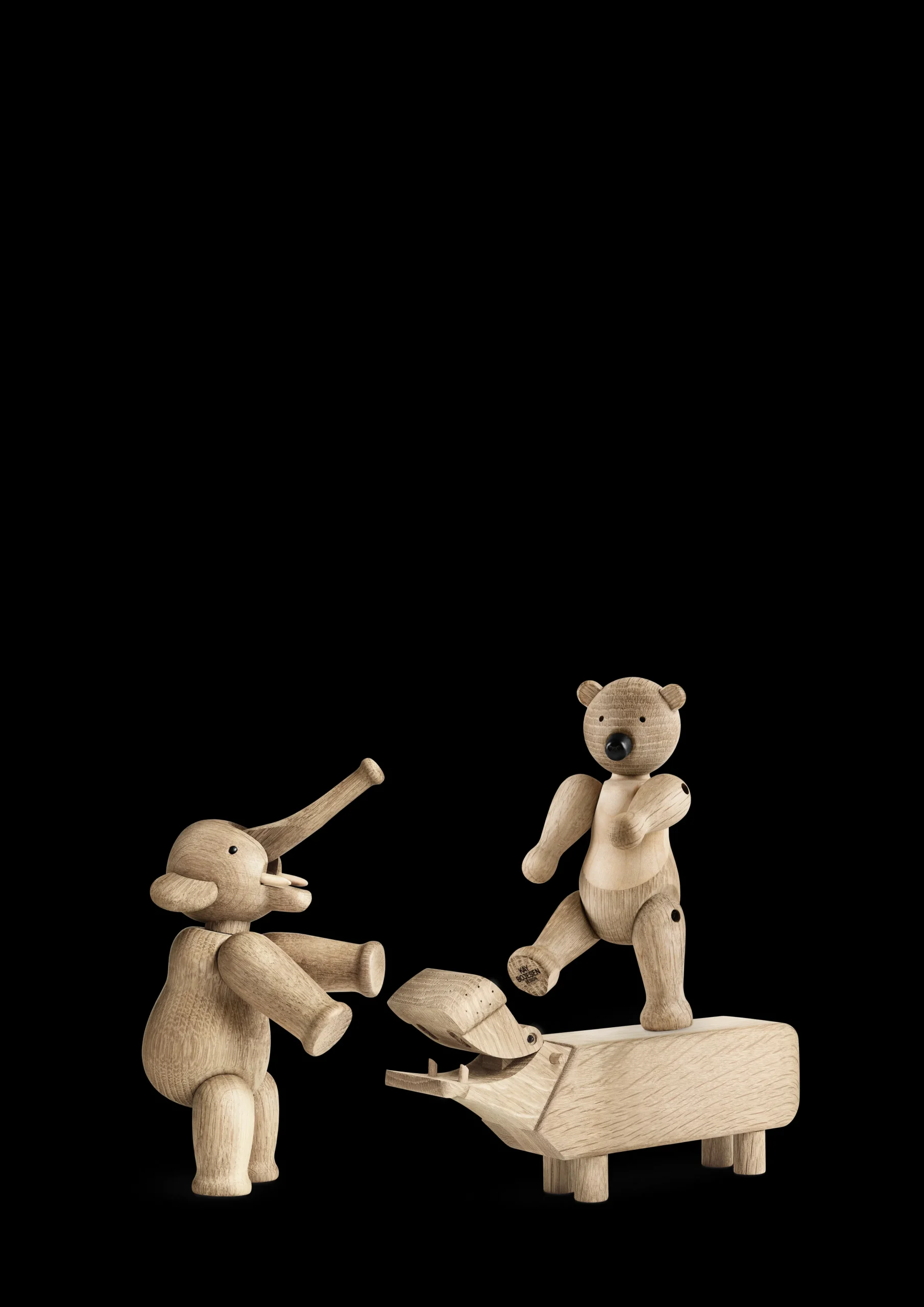 Store ikoner. Små størrelser. Under overskriften Liliput kan du nu skabe originale fortællinger i træ med tre af Kay Bojesens berømte træfigurer i en endnu mindre ministørrelse, hvor de smilende linjer i de små miniatureudgaver slet ikke kan undgå at få de helt store smil frem hos alle, der elsker klassisk dansk design. Mød Bjørnen på 9,5 cm, Elefanten på 7,5 cm og Flodhesten på bare 6 cm i højden. Liliput Bjørnen står ligesom sine større søskende klar med sine karakteristiske åbne arme og venlige udtryk. Og selvom den er lille, så kan Liliput Bjørnen stadig både dreje hovedet og bevæge armene, så du kan stille, sætte eller lægge den, nøjagtig som du ønsker. Også Elefanten med sin lange snabel og søde ører har i Liliput-versionen samme indbydende runde form som originalen fra begyndelsen af 50’erne, hvor Kay Bojesens elefantfigur kom til verden på Kunsthåndværkets Forårsudstilling. Flodhesten blev født i 1955 som et muntert indslag til at holde styr på blyanten på skrivebordet, og den vil stadig skabe smil og stil som Liliput på kontoret eller på børneværelset. Alle Liliput-dyrene er fremstillet i FSC®-certificeret egetræ, der garanterer, at træerne til produktionen er plantet, dyrket og fældet ansvarligt. Liliput Bjørnen har desuden detaljer i FSC®-certificeret ahorn, der er med til at understrege Bjørnens bløde formsprog. Dyrenes enkeltdele er drejet, slebet, pudset og poleret, så de både ser smukke ud og føles rare at røre ved. Selvom dyrene er blevet mindre, er det store håndværksmæssige arbejde bag hver enkel Liliput-figur det samme som altid, og den høje kvalitet i materialer, udformning og finish lyser ud af de tre små venner, der i denne unikke sampak med alle Liliput-figurerne er den helt oplagte gaveide til alle, der sætter pris på original dansk formgivning og design som Kay Bojesen er kendt for – uanset om det er til det store jubilæum eller den lille børnefødselsdag. Stor, lille, mini eller Liliput så har Kay Bojesens familie af trædyr en helt særlig appel til både børn og voksne. En træfigur er ikke en gave, der bliver glemt, men bliver en kær ven, der flytter med gennem hele livet – lige fra børneværelset til egen bolig i voksentiden. Noget som designikoner af en vis kaliber kan uden at miste relevans.