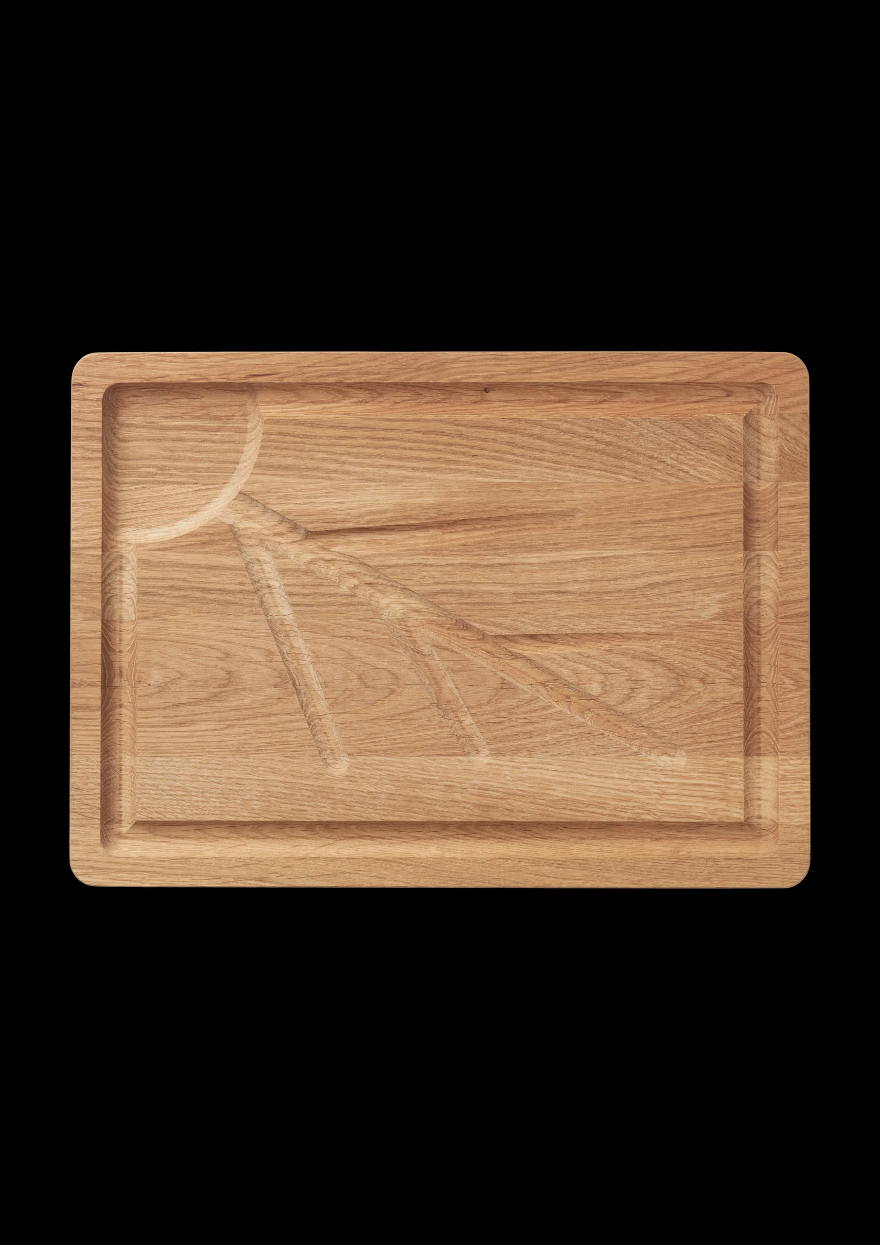 I serien kommer nu et solidt og funktionelt skærebræt i FSC-certificeret egetræ – perfekt til køkkenet, når der skal skæres, hakkes og snittes. Det er smukt forarbejdet og har runde, bløde former, der gør skærebrættet behageligt at håndtere i det daglige. Desuden er der arbejdet med at give det smukke og naturlige egetræ en finish, der er rar at røre ved, så skærebrættet ikke kun er en æstetisk, men også taktil oplevelse. Kay Bojesens fortællinger i træ begrænser sig ikke kun til hans berømte figurer. Også funktionelle brugsgenstande til hjemmet udgør et helt kapitel i hans mangfoldige designarv. Under navnet Menageri designede Kay Bojesen i 1940’erne en elegant serie, der rummer både skåle, bestiksæt, peberkværne, æggebægre og meget mere – alt sammen udført i træ med det samme minimalistiske, bløde og organiske formsprog, der kendetegner Kay Bojesens øvrige arbejde. Samlere og kendere vil kunne genkende skærebrættet, der er et originalt design fra Kay Bojesens hånd, som nu genintroduceres i egetræ. Den praktiske saft rende sikrer, at overskydende saft samles i hjørnet og ikke flyder ud over køkkenbordet. Saftrenden er samtidig dekorativ og giver skærebrættet sit helt eget udtryk, så det også pynter, hvis det står fremme i køkkenet. Det nye skærebræt er en oplagt gaveidé til eksempelvis bryllupsparret, der skal til at etablere sig – eller den studerende, som skal flytte hjemmefra. Et godt skærebræt er uundværligt i køkkenet, og en gave man kan have glæde af hele livet.