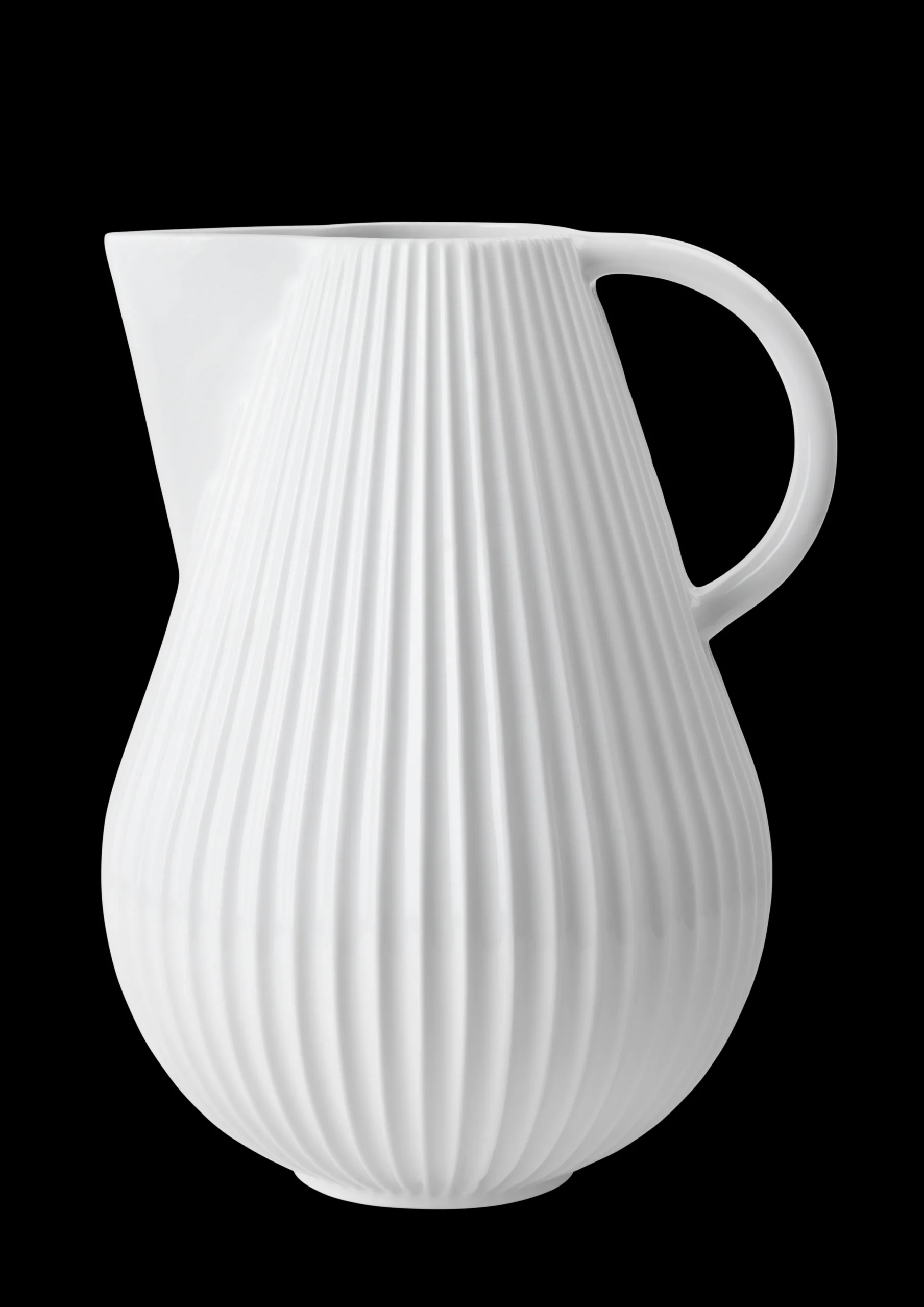 Den smukke og skulpturelle Tura kandevase i kridhvid porcelæn er designet af Philip Bro Ludvigsen og inspireret af kvindelige former. Tura kandevasen er udført med respekt for Lyngby Porcelæns klassiske riller, men er samtidig et moderne take på en smuk vase. 4 l.