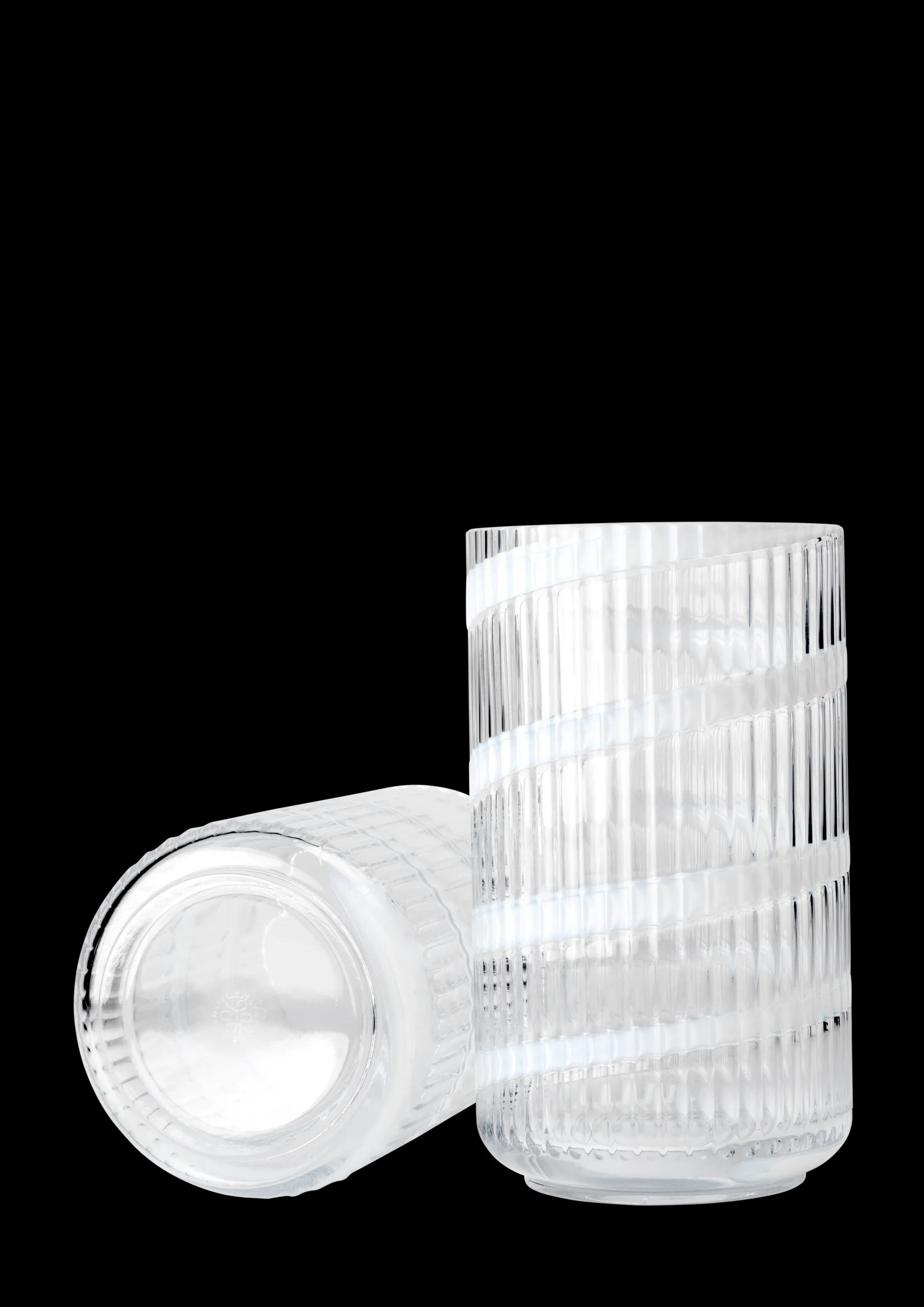 En smuk fusion af designarv og en moderne swirl-effekt der frisker op. Med Lyngby-seriens unikke swirl-vase får du enkel, stilren og skulpturel glasmagi, som vi kender det fra Lyngby Porcelæn, hvor arkivdesign, klassiske former og rendyrket æstetik udfoldes med linjer til perfektion i et elegant hvirvlende design. Med vasernes swirl-mønster bliver det ikoniske riflede design udvidet med en noget mere levende version, hvor der er tilsat lidt af naturens dynamiske form og detaljerigdom. Og helt i tråd med naturens diversitet, så er alle vaserne også forskellige i udtrykket, da glasfarverne er lagt på individuelt, hvilket er med til at skabe den helt naturlige unikafølelse, der samtidig er et perfekt match til tidens indretningstrends. Hver swirl påføres af særligt uddannede glaspustere, der manuelt anvender farven i en spiral rundt om det varme glas, inden vasen mundblæses. Denne proces er meget kompleks og betyder, at hver swirl er unik for hver enkelt vase. Du kan på tværs af hele serien virkelig fornemme, hvordan swirlen er en håndværksmæssig detalje, der både bidrager til det individuelle udtryk og den taktile oplevelse. Og du kan mærke swirlen både på ydersiden af vasen og som en forhøjning på indersiden. Sammen med Lyngby Porcelæns karakteristiske linjer til perfektion får du derfor med swirl-vaserne virkelig følelsen af at eje et helt særligt unikaprodukt. Ud over denne vase på 25 cm i højden findes swirl-vaserne også i to andre allerede velkendte størrelser på 15,5 cm og 20,5 cm, der matcher resten af Lyngby-serien. Brug dem sammen eller hver for sig til årstidens blomster – eller uden. Hver især står de som selvstændige designelementer, men de komplimenterer naturligvis også hinanden perfekt. Tænk også gerne kreativt og brug måske især et par af de lidt mindre vaser som det sidste touch på spisebordet og rundtomkring i boligen på for eksempel sofabordet, natbordet eller det lille sidebord – eller som stilfuld opbevaring til dine skriveredskaber. Alle swirl-vaser kommer selvfølgelig med det ikoniske logo i bunden, der sikrer dig, at du har fat i det ægte vasedesign – det fra Lyngby Porcelæn.
