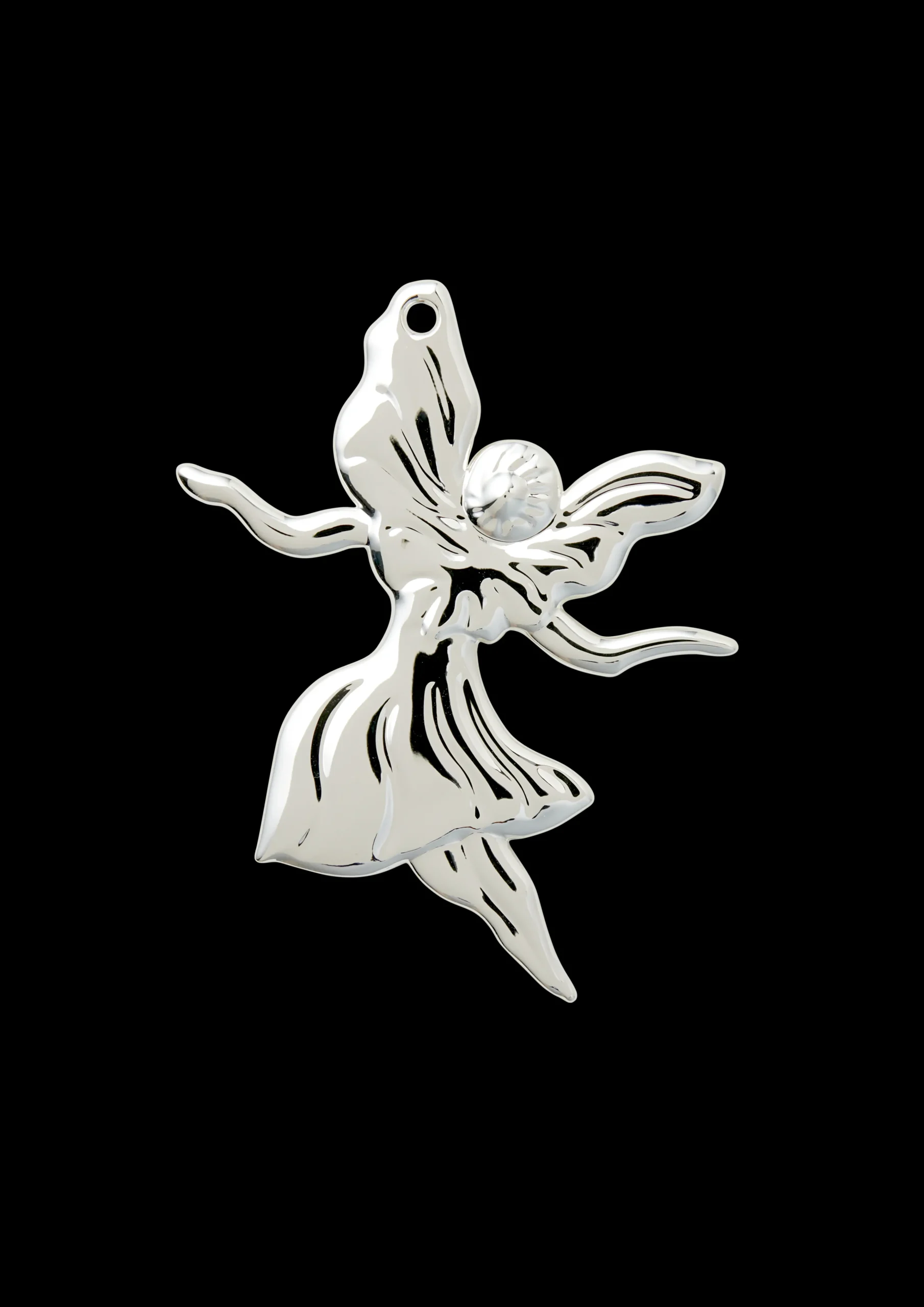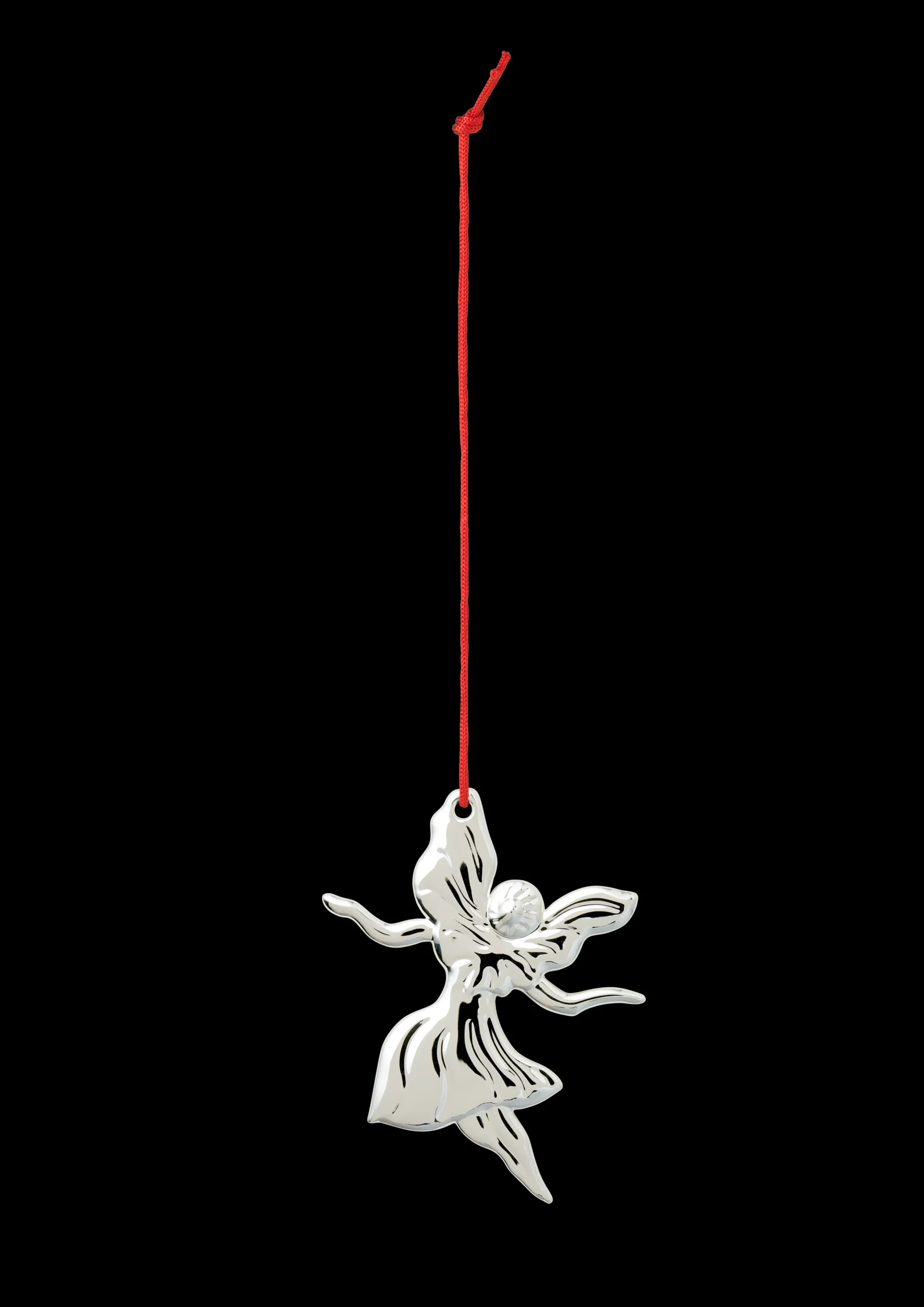 Klassisk julepynt med kunstnerisk kant. Rosendahls Karen Blixens Jul er for mange indbegrebet af den hyggelige og traditionelle jul – fuld af historie og julesymbolik, der får juleglæden til at holde helt indtil juleaften. Ole Kortzau lavede sin første Karen Blixen-julepynt tilbage i 2007. Og hvert år kommer der nye ophæng til i den særlige håndlavede kvalitet skabt med omhyggelighed og øje for detaljen i en sådan grad, at hvert enkelt ophæng fremstår som et lille kunstværk i sig selv, belagt med ægte sølv og guld. 2024-kollektionen indeholder blandt andet denne forsølvede ’dansende engel’, der yndigt og svævende tilføjer den magi til december, der gør juletiden til noget helt særligt. Den dansende engel rummer den yndige lethed, der ofte forbindes med Karen Blixens historiefortælling, og man kan næsten høre den julemusik, englen danser til. Ligesom de andre små ophæng i serien er det ca. 7 cm i højden og fungerer perfekt som vinduespynt. Motiverne i Karen Blixens Jul er ofte en kærlighedserklæring til børnenes perspektiv på julen. Men selvom Ole Kortzaus julehistorier tager udgangspunkt i virkeligheden, så er de ikke virkeligheden. Derfor er der også altid lige puffet lidt til motiverne. De er altid lidt skæve, lidt underfundige. Ole Kortzau vil have os til stoppe op, tage en pause – og opdage alle de klassiske karakterer på en anden måde. nDette juleophæng leveres med en fin rød snor.