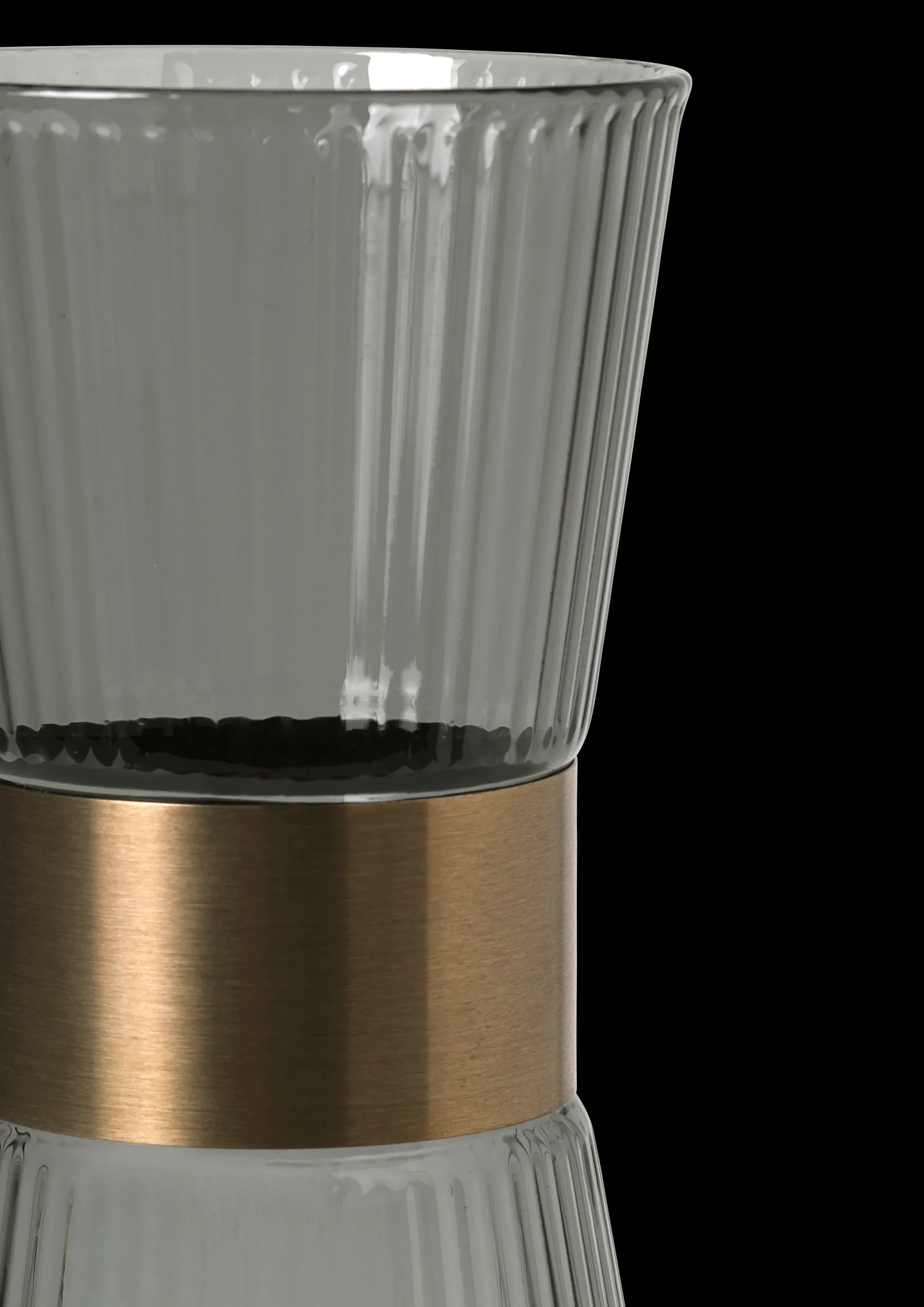 Servér iskoldt, forfriskende vand i den elegante Grand Cru Nouveau-vandkaraffel. Den er skabt i røgfarvet glas og er både let og elegant. Gentagende riller pryder overfladen i glasset og skaber et raffineret optisk spil, når lyset brydes. Et elegant eksempel på funktionelt glasdesign til det moderne liv. Den rummer 1 liter og tåler opvaskemaskine op til 55 grader.
