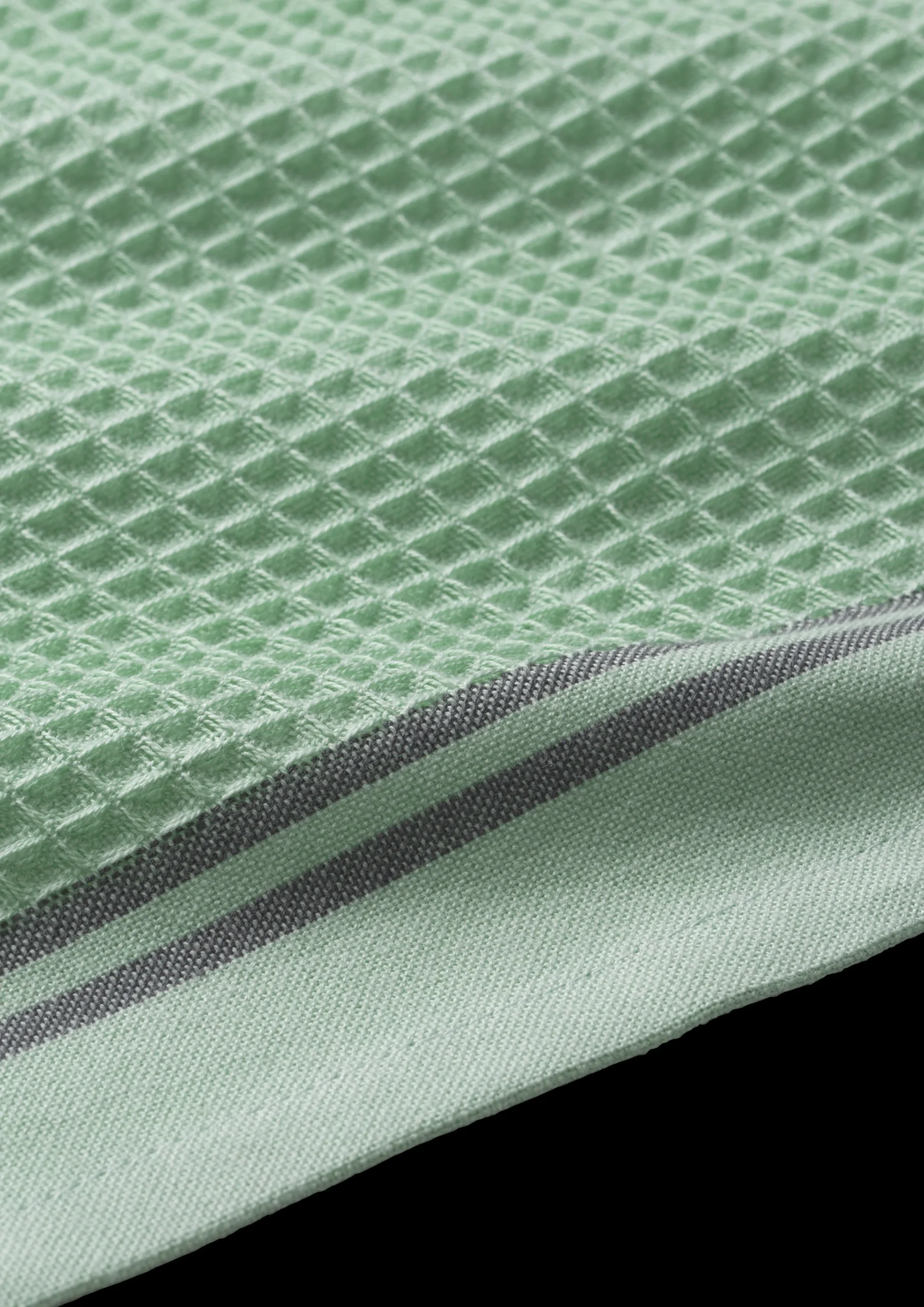 Rosendahl Textiles Alpha-viskestykket er fremstillet af 100% økologisk bomuld, GOTS-certificeret, og er kendetegnet ved den dybe tredimensionelle vaffeltekstur. Viskestykket måler 50×70 cm og er her i farven mint med sidestriber i mørkegrå. Rosendahls køkkentekstiler er ikke kun smukke at se på – de er også funktionelle, absorberer godt og tørrer hurtigt. Vi anbefaler at vaske dem ved 40 grader for at skåne miljøet, men de kan sagtens tåle at blive vasket ved 60 grader, uden at det går ud over kvaliteten. Rosendahl Textiles Alpha-viskestykket fås i flere farver.