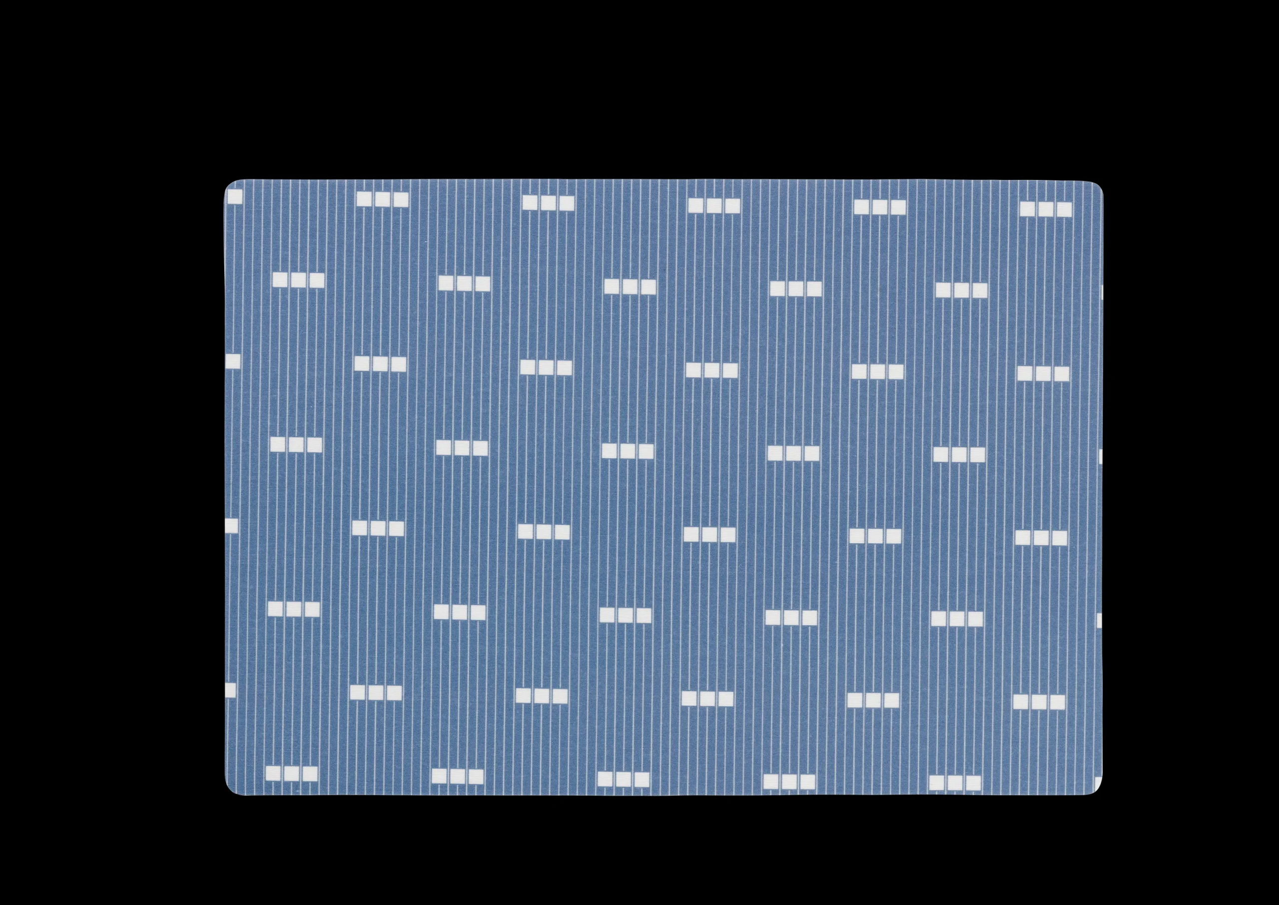 Skøn, himmelblå dækkeserviet med et fint mønster bestående af små, hvide streger og firkanter. Dækkeservietten er en del af JUNAs Tribe-serie og er lavet af 50% bomuld samt 50% polyester med akryl, hvilket gør den super nem at holde ren. Den skal blot tørres af med en fugtig klud. Udover at være rengøringsvenlig, så beskytter dækkeservietten også dit spisebord mod varme tallerkener, da bagsiden er beklædt med skum.