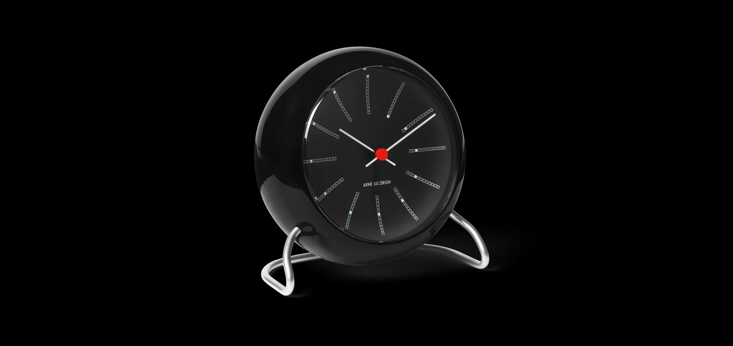 Det smukke Bankers bordur fra Arne Jacobsen er fremstillet i et hærdet slagfast topglas. Borduret Bankers måler 11 cm i diameter og er fremstillet sort i sort. Det er med til at give uret et unikt udtryk. Foden er i massiv rustfrit stål. nBankers blev designet i 1971 med formålet om at udsmykke Danmarks Nationalbank. I 1978 stod bygningen færdig, hvor Bankers blandt andet pryder den 20 m høje forhal. Arne Jacobsen vandt flere konkurrencer om den danske nationalbank i 1961. nDet unikke og særlige bordur udtrykker dansk design på en neutral, men alligevel detaljefuld måde. Borduret vil være et dekorativt og minimalistisk element i din indretning.