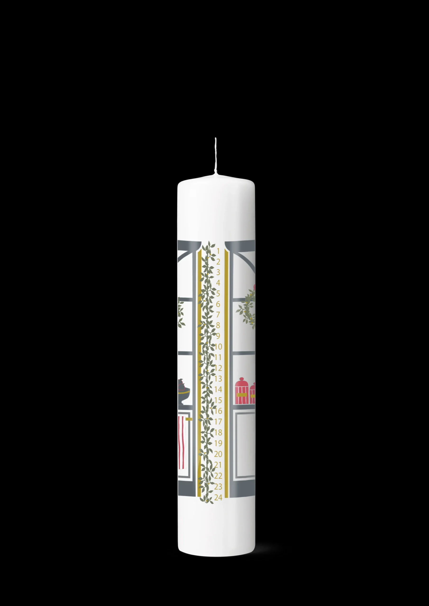 En følelse af jul som i gamle dage. Med kunstner Jette Frölichs nostalgiske og mesterlige papirklip inviterer Holmegaard Christmas dig med indenfor i julekøkkenet, der stemningsfuldt og levende rammer en nostalgisk og hyggelig julestemning. På det smukke kalenderlys i 2024-udgaven kan du nyde kombinationen af Holmegaards refleksioner i glas og Jette Frölichs originale og kunstneriske univers, mens du hilser julen velkommen i lysets skær sammen med familie og venner og tæller ned til juleaften på en elegant og fredfyldt måde. Det 25 cm høje og meget dekorative lys med tal fra 1 til 24 er formet af fuldraffineret specialvoks og brænder således smukt hele december måned. Motivet på kalenderlyset 2024 tager udgangspunkt i Jette Frölichs nostalgiske juleunivers, der i 2024-fortællingen tager os med ind i hjemmets hjerte: køkkenet. I december er det her, magien sker, når der skal bages julekager og laves julemad, som vi har glædet os til smagen og duften af lige siden sidste jul. Men køkkenet er ikke kun et sted, hvor alskens julelækkerier bliver frembragt. Det er også her, vi hygger os og er sammen. Det er her, vi pakker gaver ind, hvor adventskransen tændes, og hvor vi får lidt varmt at drikke, når frosten bider udenfor. Her kommer bagværket duftende ud af ovnen, mel og sukker står fremme, juleæblerne pynter i skåle, og hyggen fuldendes med hyacinter i glas og julekranse i vinduerne.