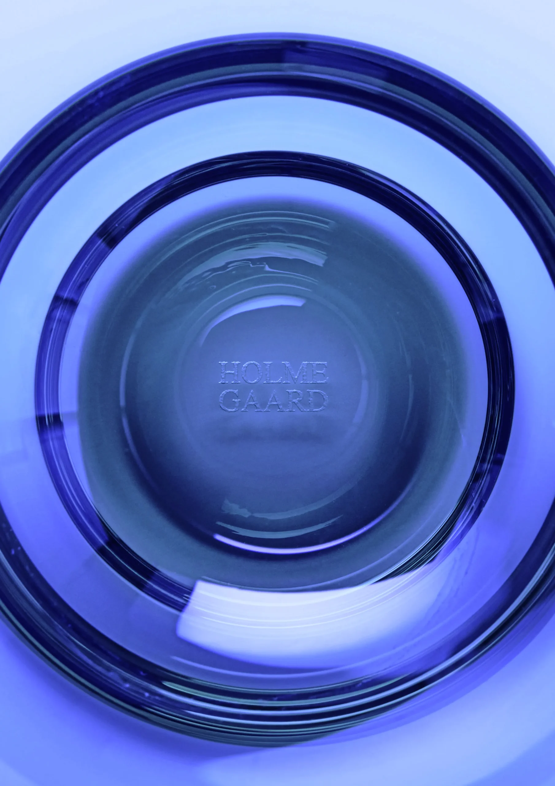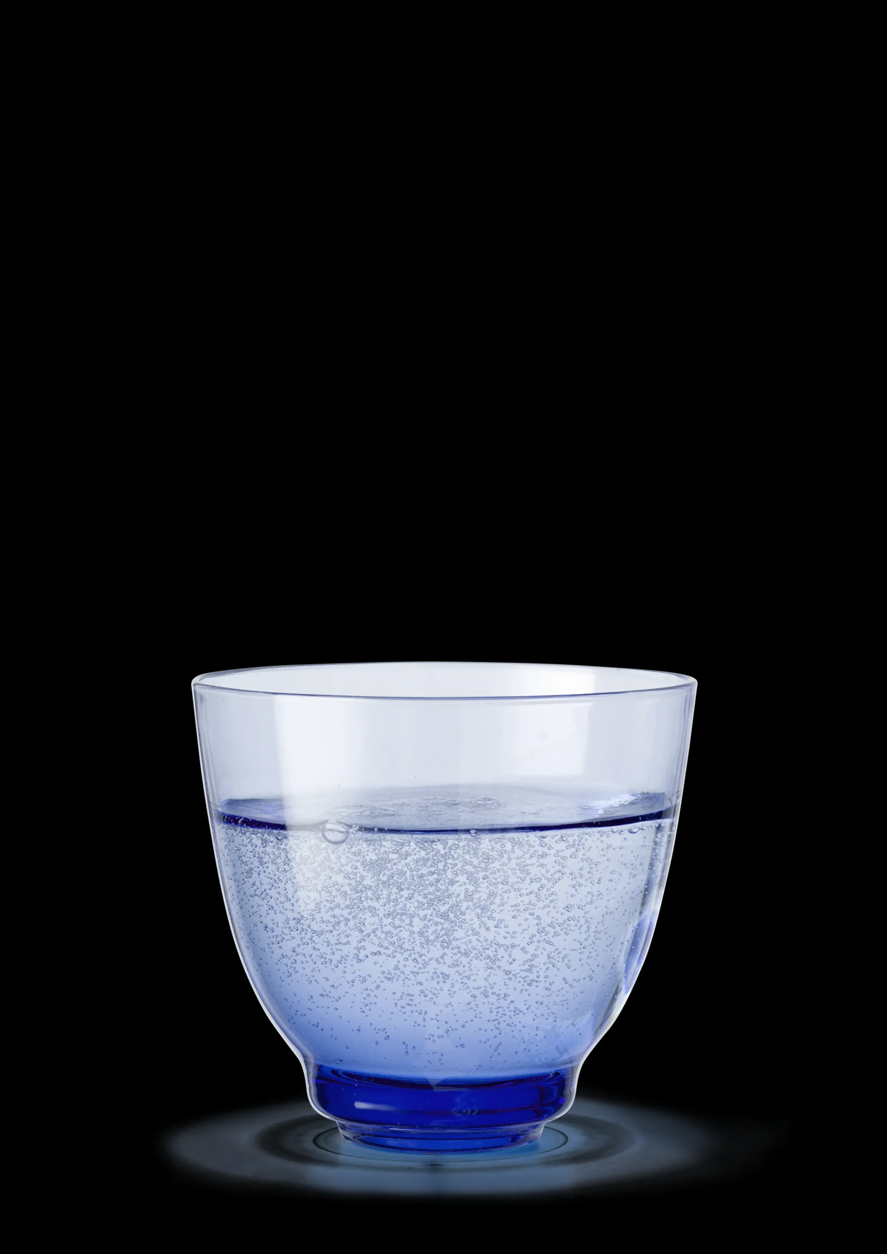 Glasserien Flow giver øjeblikkeligt liv til borddækningen og vækker sanserne på ny. Mundblæst og elegant er serien karakteriseret ved et diskret bølgemønster i bunden, der breder sig som ringe i vandet og tilføjer en organisk og dynamisk følelse til det skulpturelle glasdesign. Vandglasset i mørkeblå rummer 35 cl og skaber et levende og harmonisk udtryk på bordet. Farven på glasset er mest intens i bunden, hvor rillerne er, men har en transparent karakter – også der hvor farverne er stærkest. De nye mørkeblå glas kan sagtens stå alene eller måske endnu mere oplagt – bruges i kombination med de andre farvede glas i serien. Smukt kvalitetsglas fra Holmegaard er for alle og er skabt til at blive brugt – også i hverdagen – og vandglasset har en dejlig tyngde i bunden, der gør, at det både står stabilt på bordet og ligger godt i hånden, selvom foden snævrer lidt ind. Som en unik håndværksmæssig feature er kanten på Flow-glasset flammepoleret, hvilket giver en flot afrundet kant, der også gør glasset ekstra behageligt at drikke af.