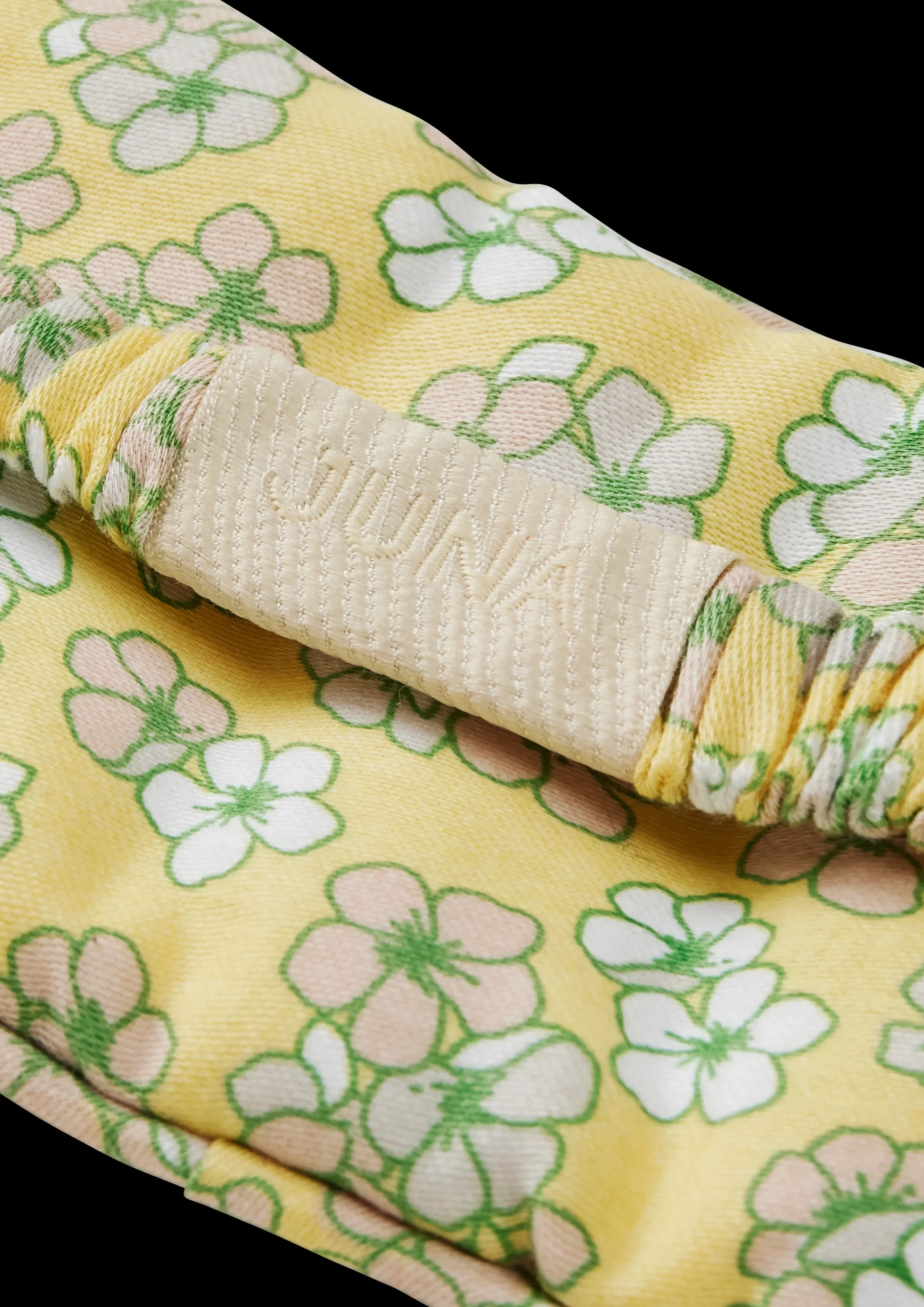JUNA handler om glæden ved at omgive sig med tekstiler, der gør livet smukkere, blødere, mere farverigt og sjovere – også når du sover. Og med Dodo fra JUNA får du en både smart og praktisk sovemaske med Bæku0026Bølge i farvekombinationen grøn/sand på den ene side og Pleasantly med en bundfarve i gul på den anden. Dodo-sovemasken er syet i 100% økologisk bomuld, og den dejlige bløde padding er perfekt til en god nats søvn med uendelige drømme. Samtidig sikrer den behagelige stofbeklædte elastik, at sovemasken er nænsom mod håret og altid sidder, hvor den skal. Kombinationen af Bæku0026Bølge-tern og Pleasantly-blomster giver et herligt mønstermix, hvor farverne er afstemt, så de to sider taler smukt sammen farvemæssigt. Det er helt op til dig og dit humør, hvilken side der skal vende udad. Som en del af JUNAs ansvarlige designfilosofi er sovemasken naturligvis som altid produceret af overskudsstof fra produktionen af JUNA-sengetøj.