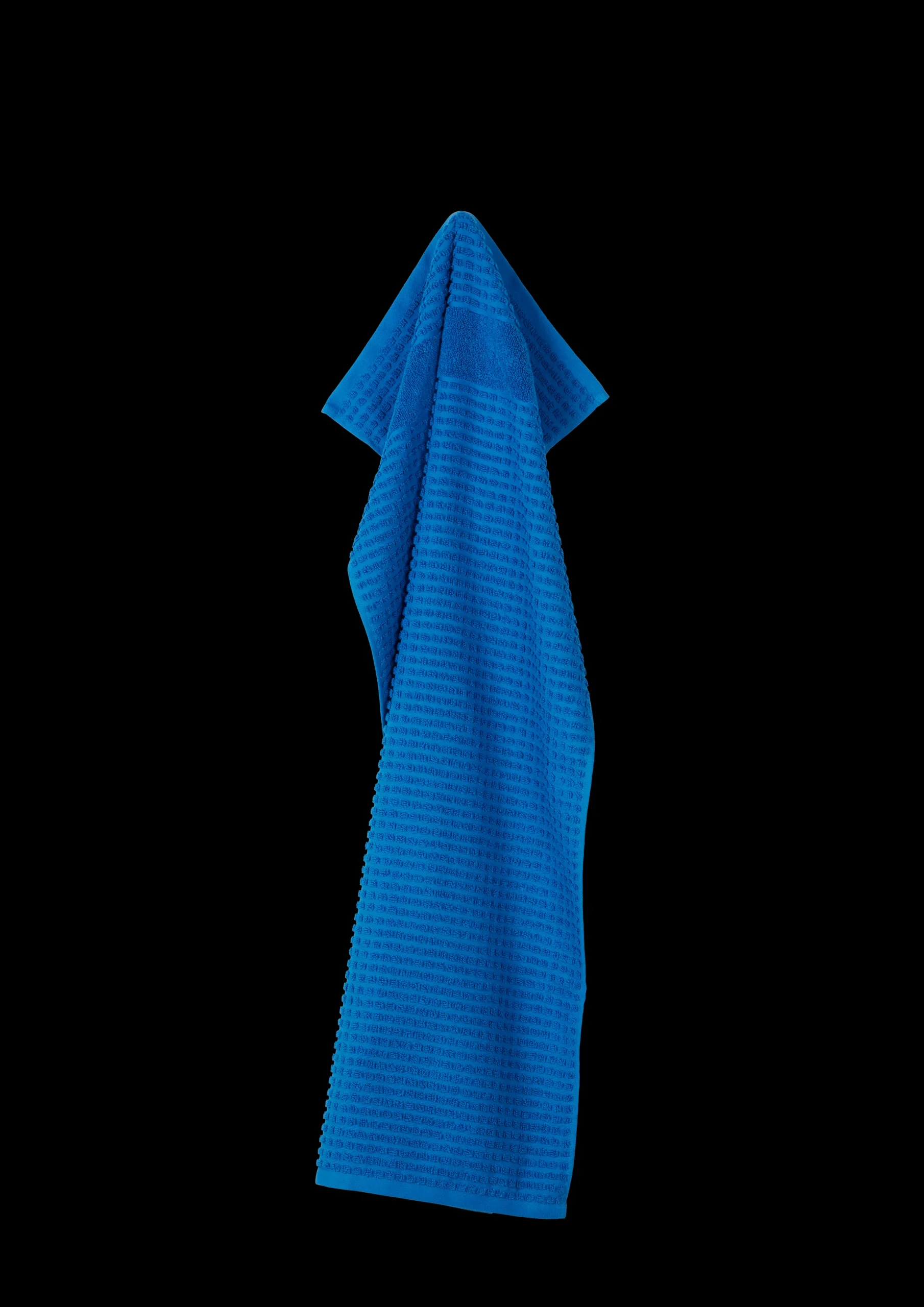Juna handler om glæden ved at omgive sig med tekstiler, der gør livet smukkere, blødere, mere farverigt og sjovere. Frisk badeværelset op med den skønne Check-håndklæde i blå nuance, der minder om havets farve på en sommerdag. Den ensfarvede Check-håndklæde har et svagt geometrisk mønster, måler 50×100 cm og er fremstillet i 100% økologisk bomuld, der både er OEKO-TEX®-mærket og GOTS-certificeret, så du kan gå i bad med ren samvittighed.