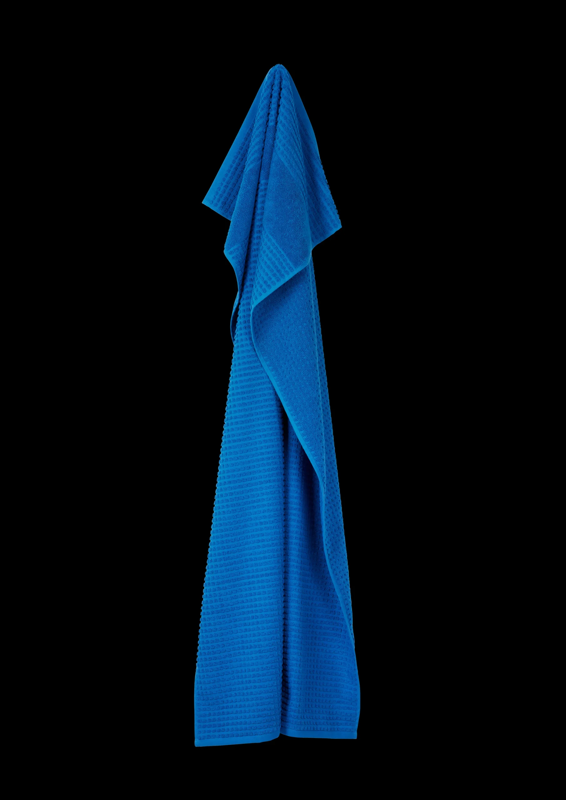 Juna handler om glæden ved at omgive sig med tekstiler, der gør livet smukkere, blødere, mere farverigt og sjovere. Frisk badeværelset op med den skønne Check-håndklæde i blå nuance, der minder om havets farve på en sommerdag. Den ensfarvede Check-håndklæde har et svagt geometrisk mønster, måler 70×140 cm og er fremstillet i 100% økologisk bomuld, der både er OEKO-TEX®-mærket og GOTS-certificeret, så du kan gå i bad med ren samvittighed.