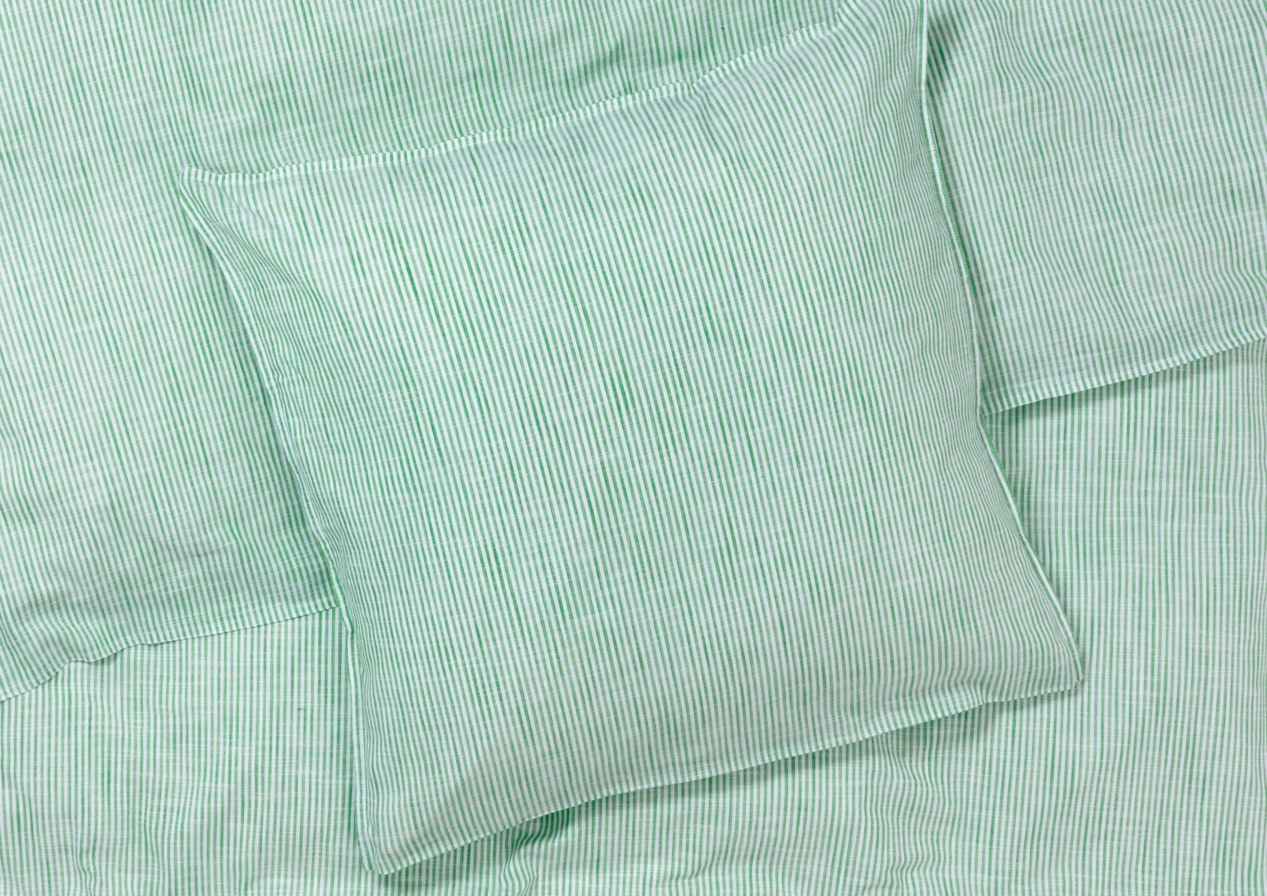 Serien Monochrome er skabt i 100% økologisk bomuld og vævet på en måde, der giver stoffet et råt og casual look inspireret af naturens strukturer med en helt speciel overflade, der føles himmelsk mod huden. Det nyeste sengesæt fra Monochrome Lines kommer i en grøn farve, og den særlige vævning med en ujævn tråd skaber unikke variationer i stoffets struktur og gør farven levende. Den afdæmpede farve kombineret med hvide striber giver Monochrome Lines et klassisk udtryk, der også spiller smukt sammen med puder, tæpper og sengetøj fra de andre JUNA-serier, så du kan mikse og matche på kryds og tværs. Monochrome Lines er ikke bare en smuk tilføjelse til soveværelset, der giver en blød og god nats søvn. Sengetøjet er også GOTS-certificeret og OEKO-TEX®-mærket, så du kan sove trygt og drømme uendelige drømme.