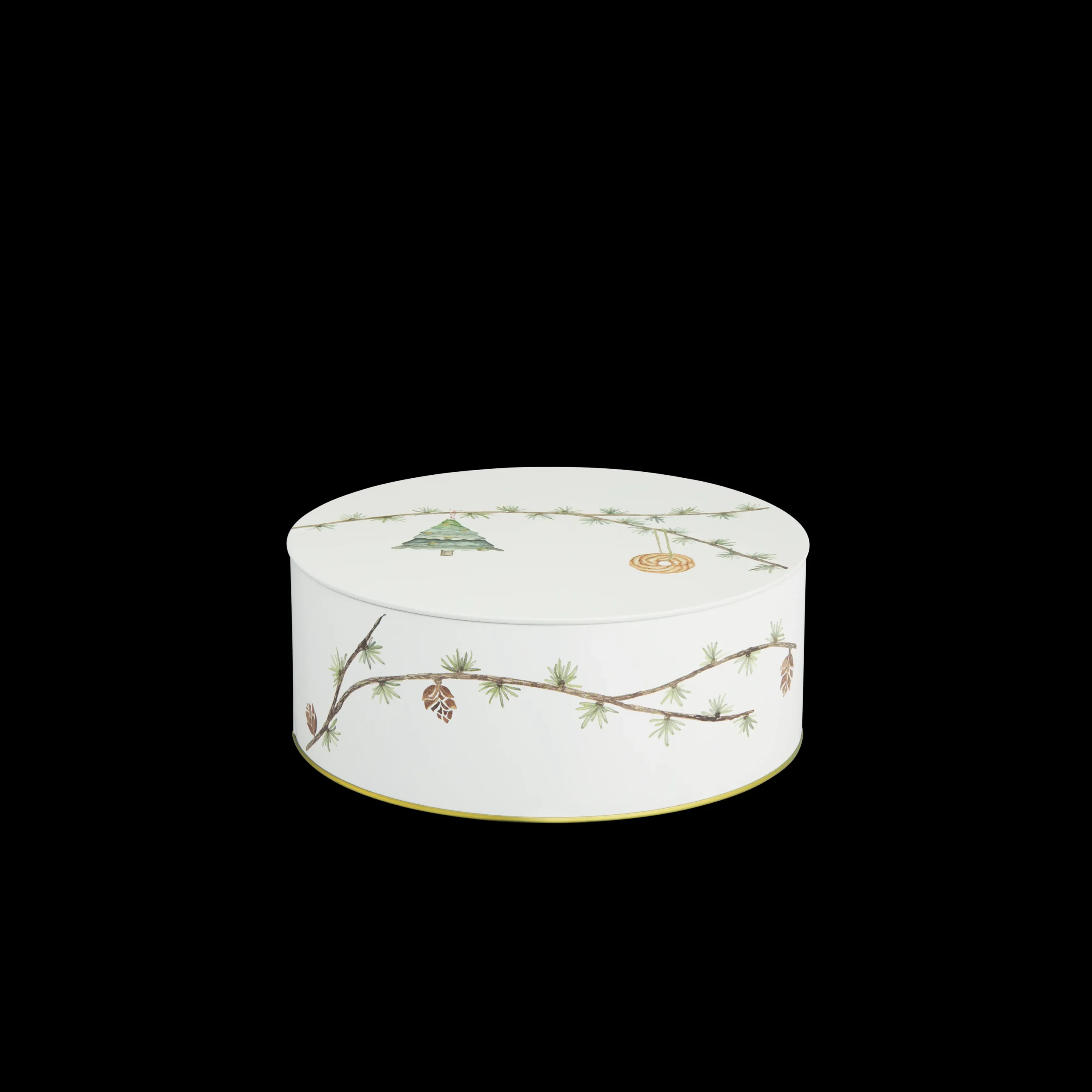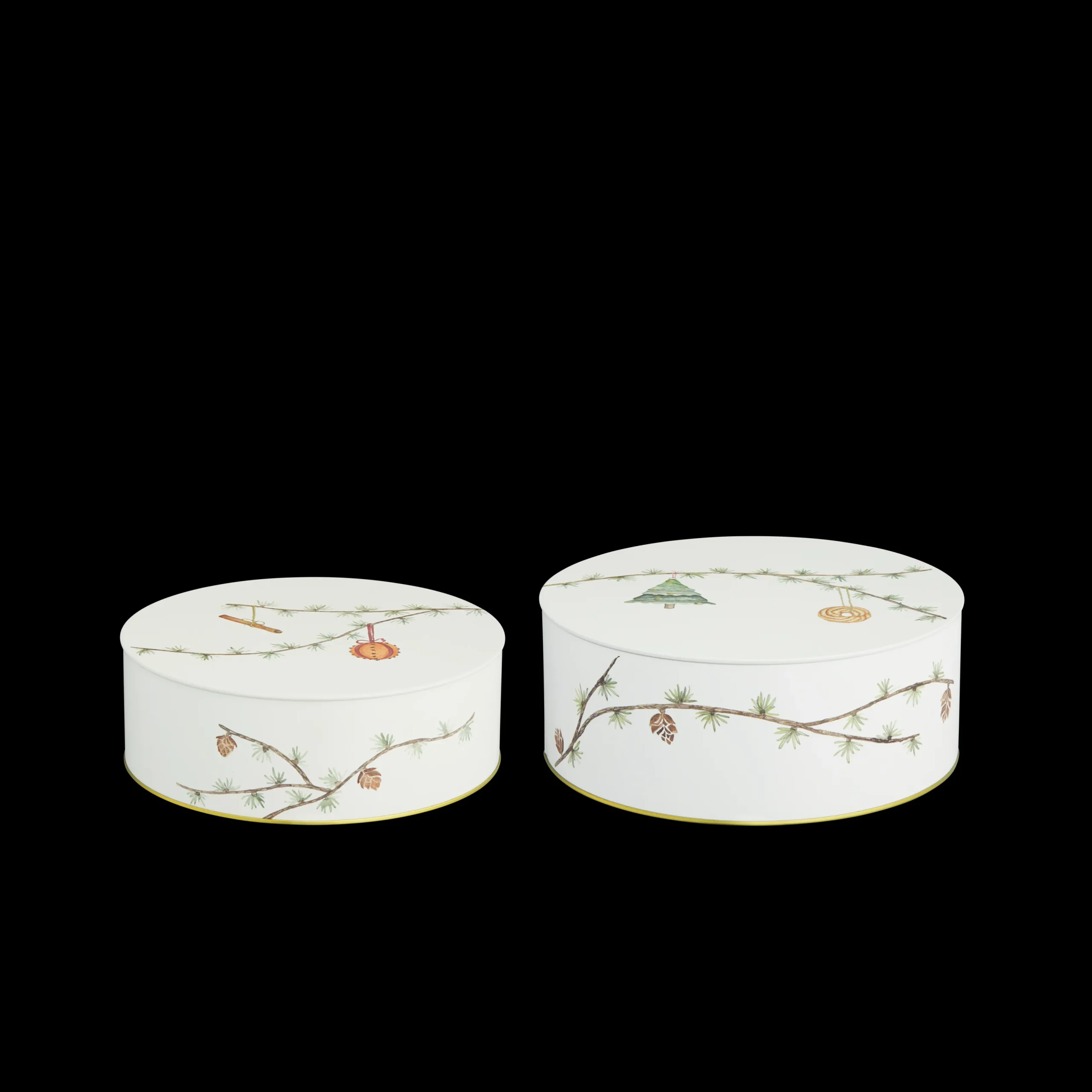 Hammershøi Jul er en juleserie fra Kähler, hvor der er tanke for den klassiske fortælling. Hans-Christian Bauer og Rikke Jacobsen står i spidsen for dette års design, og her får du et sæt med to smukke juleopbevaringsdåser. Disse kommer i hvidt metal, der gør dem yderst anvendelige til f.eks. dit hjemmebag eller til julens værtindegaver. Den elegante udsmykning består af fine grene med gran og små kogler, der fint pynter på dåsen. Der er også små juleophæng af finde, og derved er den både klassisk, enkel og særdeles stilfuld at have stående i sin bolig. Den må ikke komme i opvaskemaskinen.