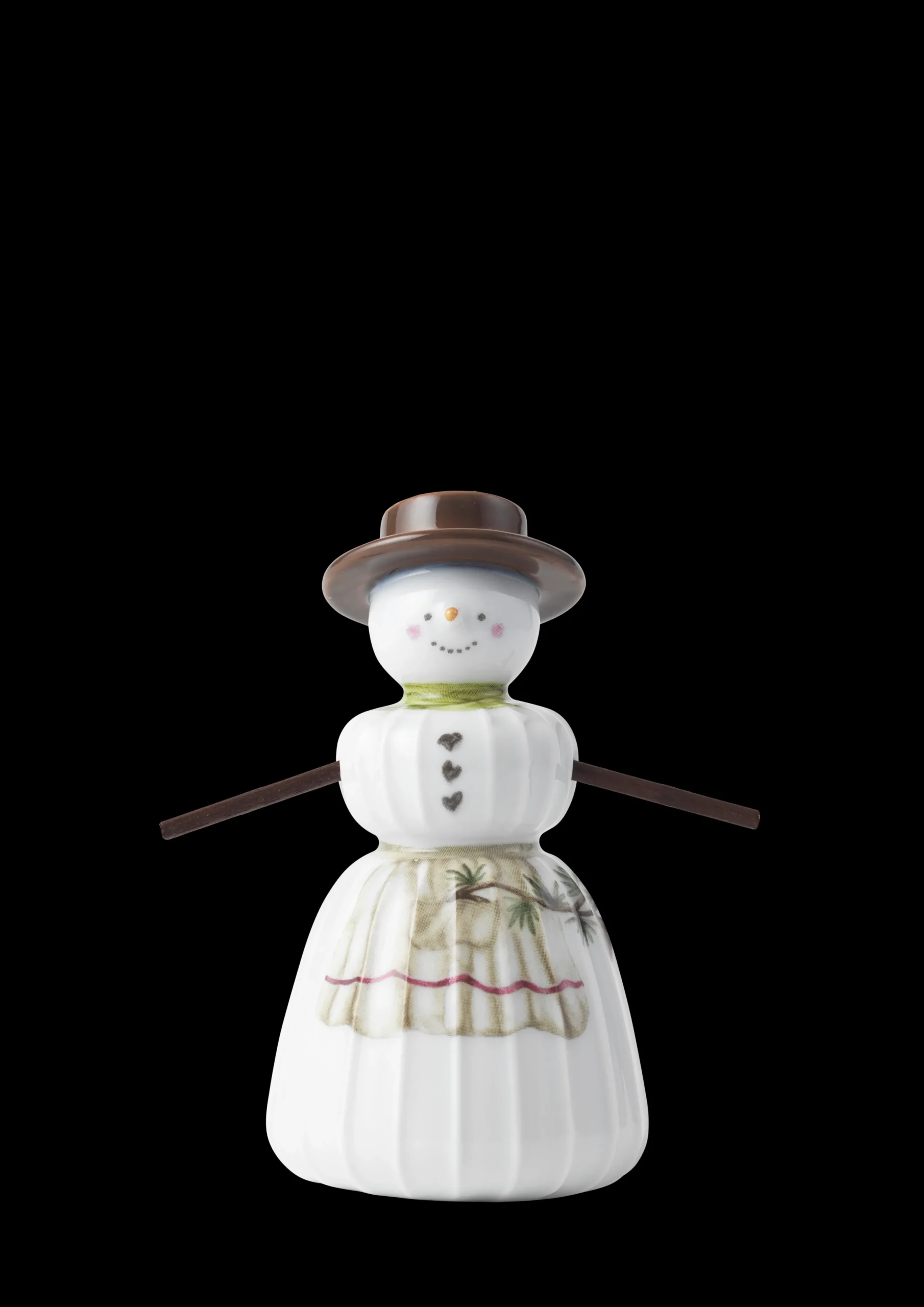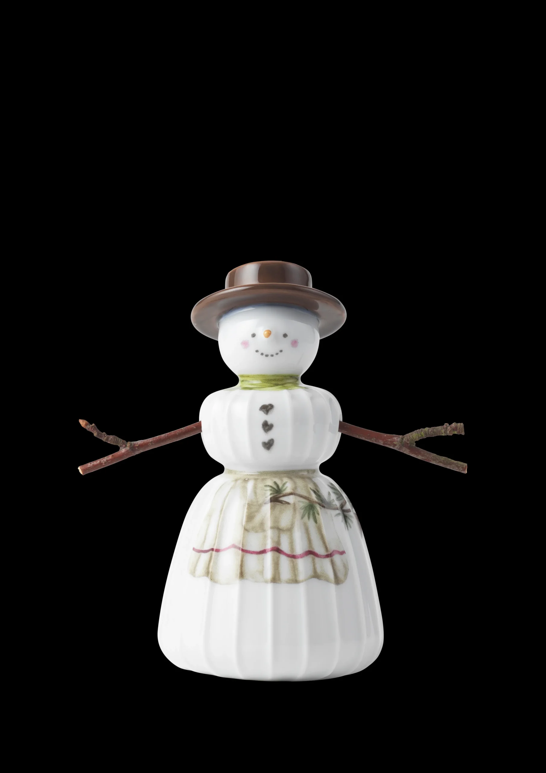 Juletraditioner og håndværkstraditioner i skøn forening. Med familien af snemænd fra Kählers juleserie Hammershøi Christmas bringer du enkelt og autentisk julestemningen ind i boligen med glade smil og hyggelige julemotiver, der matcher seriens øvrige dele og fuldender julehyggen, samtidig med at du kan nyde nostalgien i Kählers håndlavede designtraditioner. Gå en tur i haven, parken eller skoven og find jeres egne små kviste, der kan bruges som arme til seriens søde figurer. Måske som en ny, hyggelig juletradition den 1. december. På den måde bliver snemændene endnu mere personlige og betydningsfulde. Vær opmærksom på at de medfølgende arme til både den stående og hængende familie af snemænd udelukkende er vedlagt som inspiration til, hvordan du kan personliggøre dine Kähler-snemænd i din helt egen DIY-stil. Snekonen har selvfølgelig en høj hat på, som vi forbinder det med en klassisk snemand. Hun måler 11 cm i højden og 6 cm i diameter og er udformet i bløde linjer med Hammershøi-seriens ikoniske riller, der kendetegner Hans-Christian Bauers stel og bordpynt. Denne model er den stående udgave af Snekonen, men du kan også få hende som ophæng. Så der er frit valg. Skab dit eget snelandskab i vinduet, på hylden eller på julebordet, eller lad hele familien pynte på juletræet eller på smukke grene i en flot vase. Kählers snemandsfamilie består af Snemanden, Snekonen, Snedrengen og Snepigen, der alle på forskellig vis er dekoreret med motiver fra Hammershøi Christmas-serien malet i akvarel af Rikke Jacobsen og overført til det snehvide porcelæn. Motiverne er klassiske julemotiver som julehjerter, kræmmerhuse og gaver i en autentisk, hyggelig og håndmalet stil, som man slet ikke kan undgå at komme i den helt rigtige julestemning af.