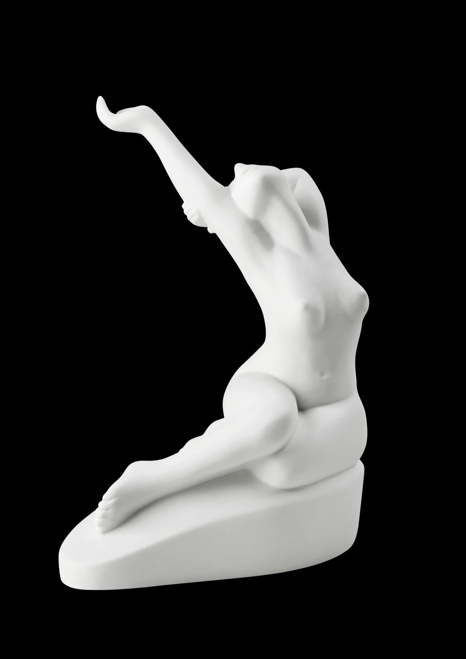 Kähler er historisk set meget kendt og anerkendt for sine keramiske figurer. Og den tradition tager kunstner Louise Hindsgavl med sig ind i arbejdet med Moments of Being-serien, hvor hun både trækker tråde tilbage til den kunstneriske historie, som Kähler er en del af, og ind i den tid, vi befinder os i lige nu. Med figuren Heavenly Grounded manifesterer Louise Hindsgavl den følelse og det moment, hvor en kvinde er præcis det sted i livet, hun gerne vil være. Den 22,5 cm høje porcelænsfigur viser en kvinde, der rækker en arm i vejret, mens hun sidder – næsten ligger – henslængt. Alslappet. I balance. Forankret. Heavenly Grounded er en hyldest til netop hende, der har fundet ro og fred med en situation. Hendes liv eller hendes forandringer. Heavenly Grounded symboliserer selvsikkerhed og power – at stå fast, at være jordnær, at være lige præcis det sted, der er rigtigt for én selv som kvinde. Moments of Being er en serie af tre kvindeskulpturer, der ud over Heavenly Grounded består af Beginnings og Silent Change. Alle figurer er formet i hvidglaseret, mat fajance i et enkelt og klassisk design, hvor de afrundede former er definerende for hver enkelt kvindeskikkelse.