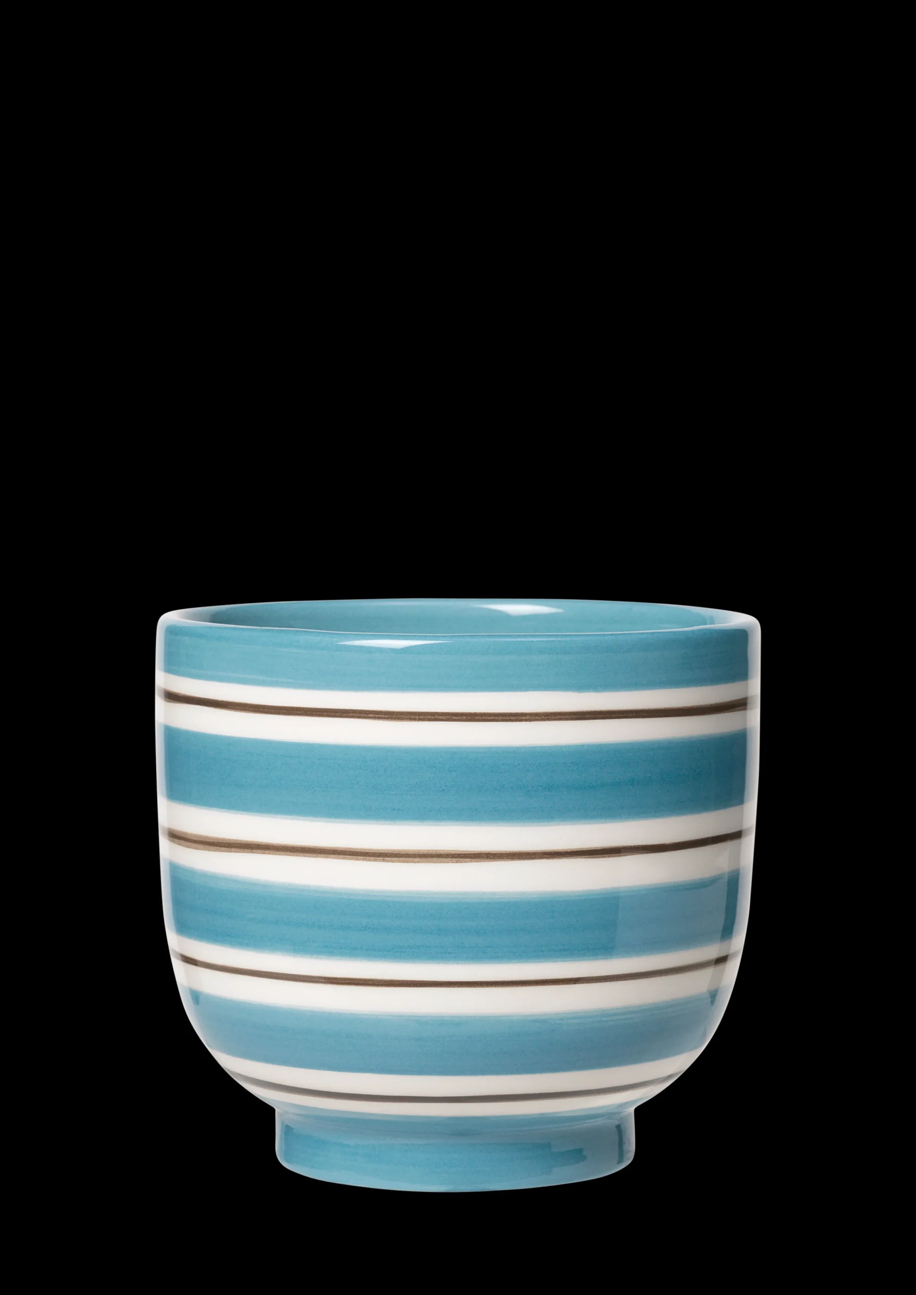 The Omaggio Nuovo series from Kähler is both a renewal and tribute to the well-known Omaggio vases, whose stripes comes in several different colors. Omaggio Nuovo has a recognizable and renewed design and all of Omaggio Nuovo’s shapes and colors are linked together. The flowerpot Ø12 cm is decorated with hand-painted wide blue stripes and narrow brown stripes. The combination of narrow and wide stripes gives the Omaggio Nuovo vases a new graphic expression which fits perfectly into the Nordic classical style. The striped flowerpot bowl matches with the Omaggio Nuovo vases in different sizes and creates a new decorative look in interior design. The shape of the flowerpots are inspired by the vases, and has the same distinctive graphic expression. Design by Ditte Reckweg and Jelena Schou Nordentoft