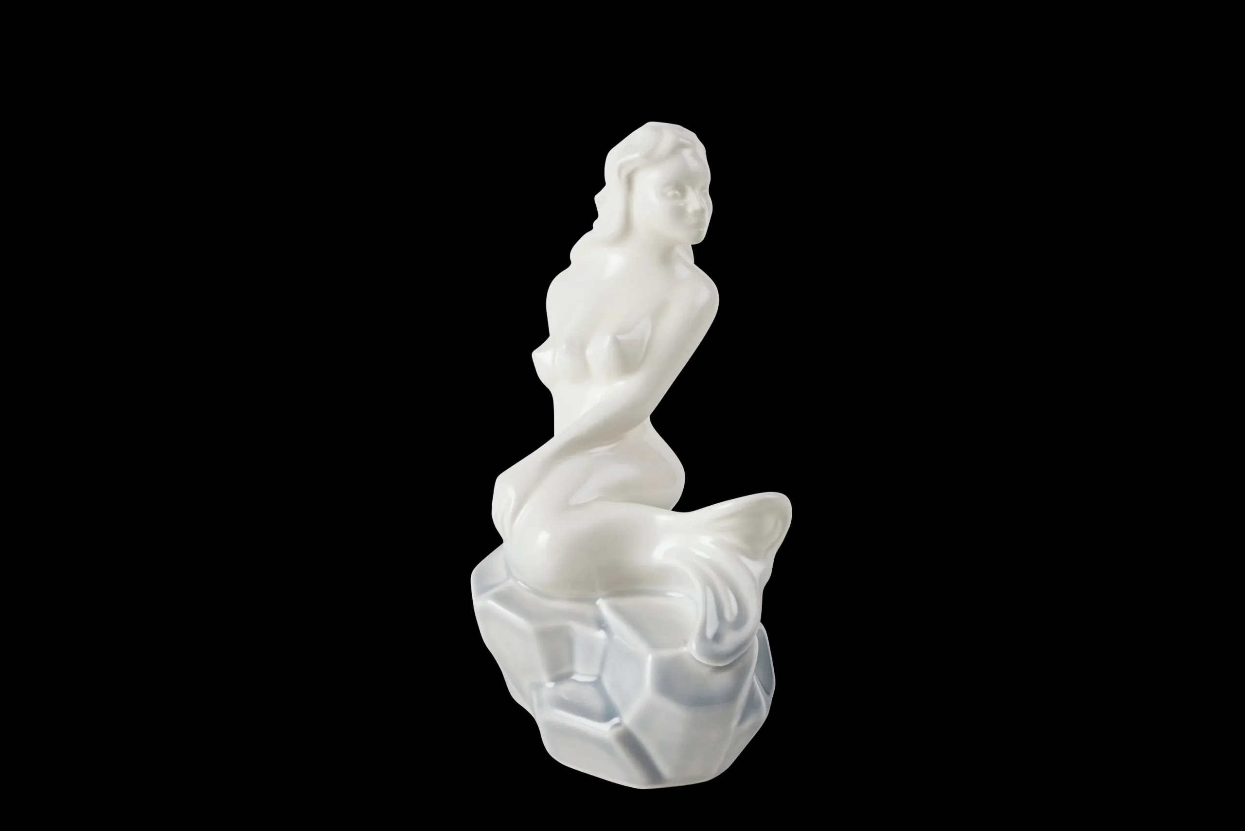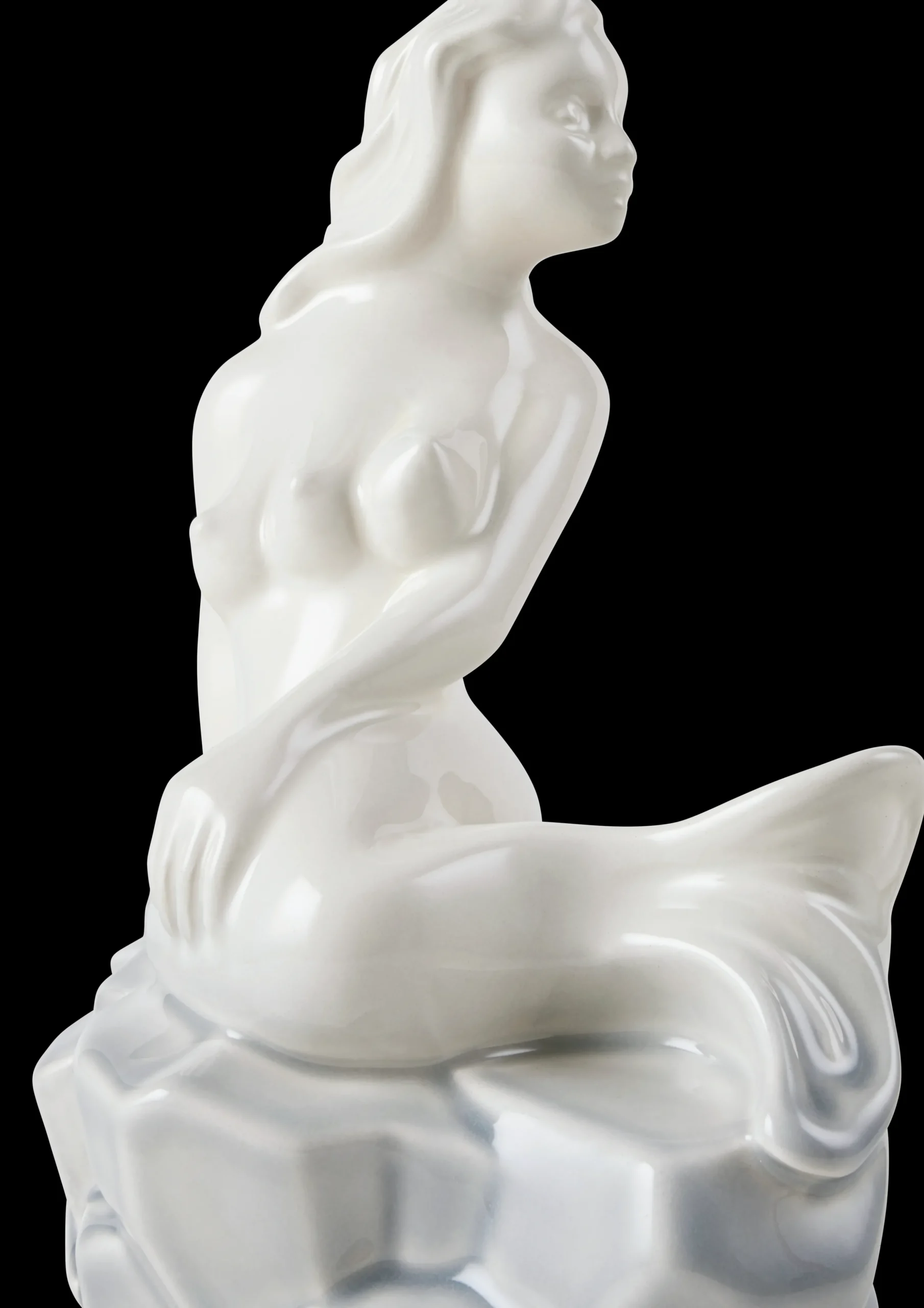 Improved and impatient. Forbedret og utålmodig. Med udgangspunkt i H.C. Andersens verdensberømte eventyr om Den Lille Havfrue har kunstner Louise Hindsgavl med sin vanlige pirrende og provokerende keramiske kunst endnu engang i samarbejde med Kähler skabt en figurativ kickstarter til livets ofte lidt svære snakke. The Ambitious hedder hendes nye figurer i glaseret keramik. Her fortæller hun historien om en havfrue, der prøver nye veje for at gøre sine drømme til virkelighed. Som den foretagsomme og initiativrige unge kvinde hun er, har hun forsøgt sig med ben i stedet for hale. Og hun er klar til at tage et skridt videre. Måske skal der et ekstra bryst til for at charmere prinsen? Den utålmodighed, som havfruen efterhånden må føle i sine bestræbelser på at få prinsen i nettet, har Louise Hindsgavl i sin fænomenale formgivning subtilt udtrykt med den svirpende bevægelse i halen. The Ambitious-figurerne er 20 cm høje og fås i lilla, blå og denne grå variant. Alle emmer af Kählers autenticitet og håndlavede designtraditioner, samtidig med at de med deres udfordrende udtryksform lægger op til samtalen om det, Louise Hindsgavl kalder ’de ting, vi skylder hinanden at tale om, men ofte ikke selv tør tage hul på’. Med The Ambitious tager hun os med ind i en utålmodighedens og mulighedernes verden og stiller sit figurative arbejde til skue – og debat. Hun påtager sig som kunstner ansvaret, påtager sig risikoen ved at starte den svære samtale. For ud over at skabe moderne kunst og design til boligen, så vil Louise Hindsgavl med The Ambitious-figurerne gerne kradse i overfladen på vores kultur og skabe platformen for en diskussion. For eksempel om hvad der ligger i vores stræbsomhed, og hvor langt vi vil gå for at indfri vores ambitioner. The Ambitious bliver kun solgt på Holmegaard værket og på Rosendahl.com. Der bliver kun produceret 200 stk. af hver farve, og de er alle nummererede. Vi kan ikke oplyse om hvilket nummer din figur har/får.