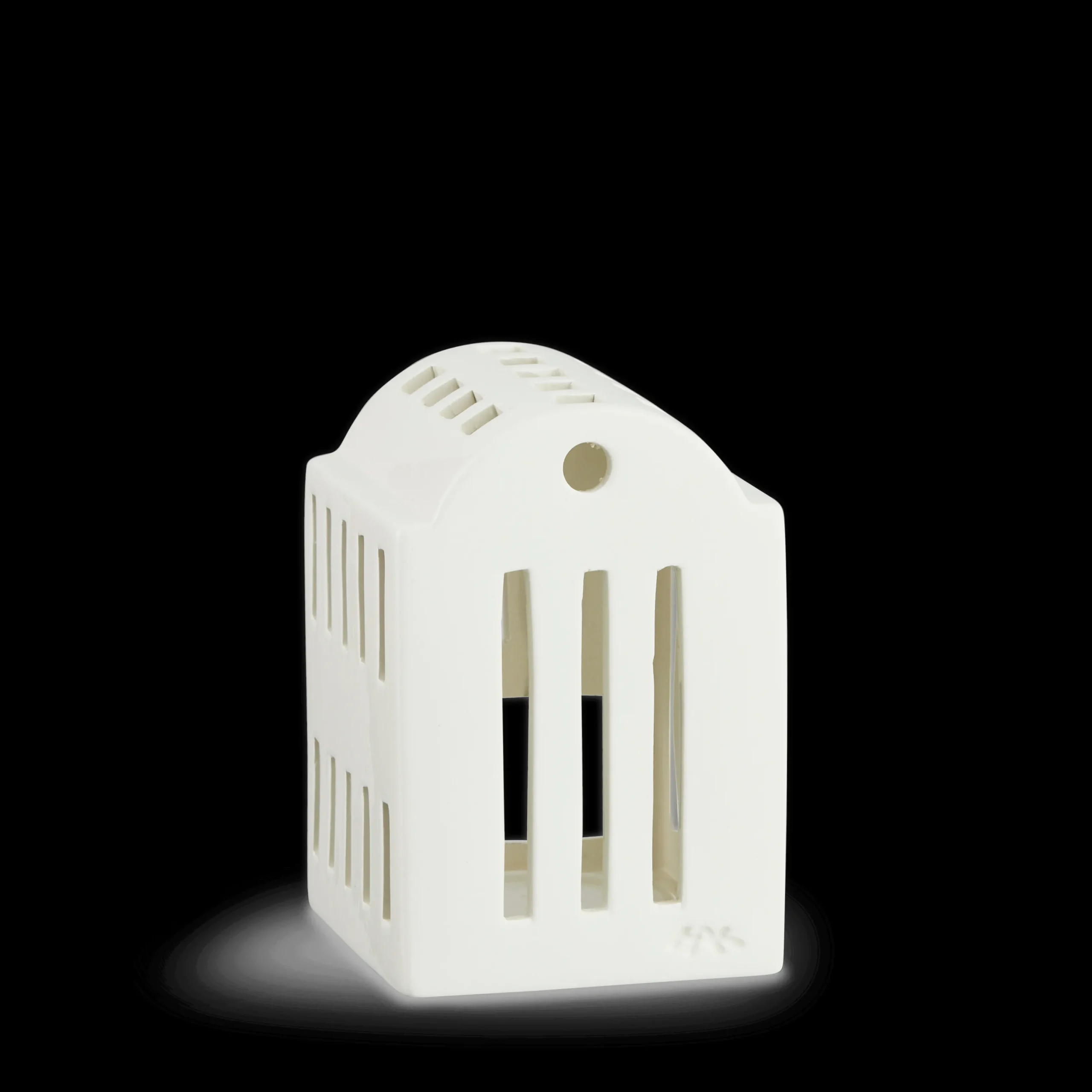 Lige til sæsonens hygge og mørke aftener lanceres denne arkitektoniske perle i Urbania-serien af smukke og unikke lyshuse. Dette lille lyshus er inspireret af 1920’ernes pakhuse i New York og skaber smukke og specielle lyssilhuetter med de mange små håndskårne vinduer i varierende størrelser. Stil flere lyshuse sammen i vinduskarmen, i små grupper på bordet eller på reolen og skab fantastiske stemningsfulde rum.