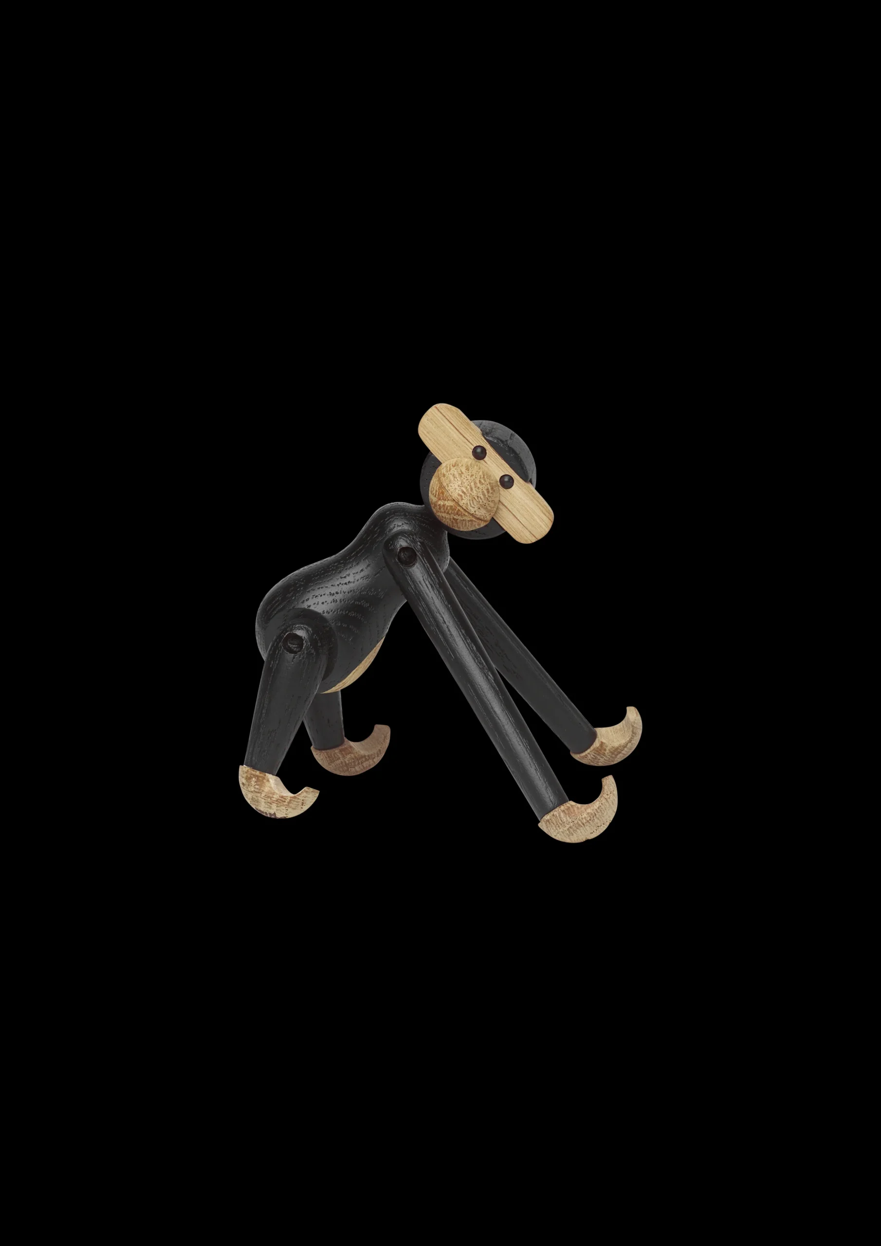 Byd velkommen til en helt ny abe i Kay Bojesens designunivers: den elegante og grafiske miniabe i mørkbejdset egetræ. Den unikke håndværksfinish, der kendetegner Kay Bojesens produkter, er tydelig i den nye miniabe, hvor træet spiller hovedrollen og er behandlet med nænsomhed og respekt. Det kræver stor omhyggelighed og erfaring, når abens små dele skal bejdses, og der ligger mange timers håndværk i hver enkelt lille abe. Den bejdsede overflade giver træet en dybsort overflade med glød, varme og liv, og de imponerende håndværksdetaljer skaber sammen med den mørke farve et eksklusivt udtryk. Den nye, stilfulde abe er den perfekte gave til designelskeren. Eller til ham eller hende, der slet ikke kan få nok af Kay Bojesens aber. Uanset hvor aben flytter ind, vil den skabe smil og stil med sin finurlige fremtoning og sit elegante udseende.