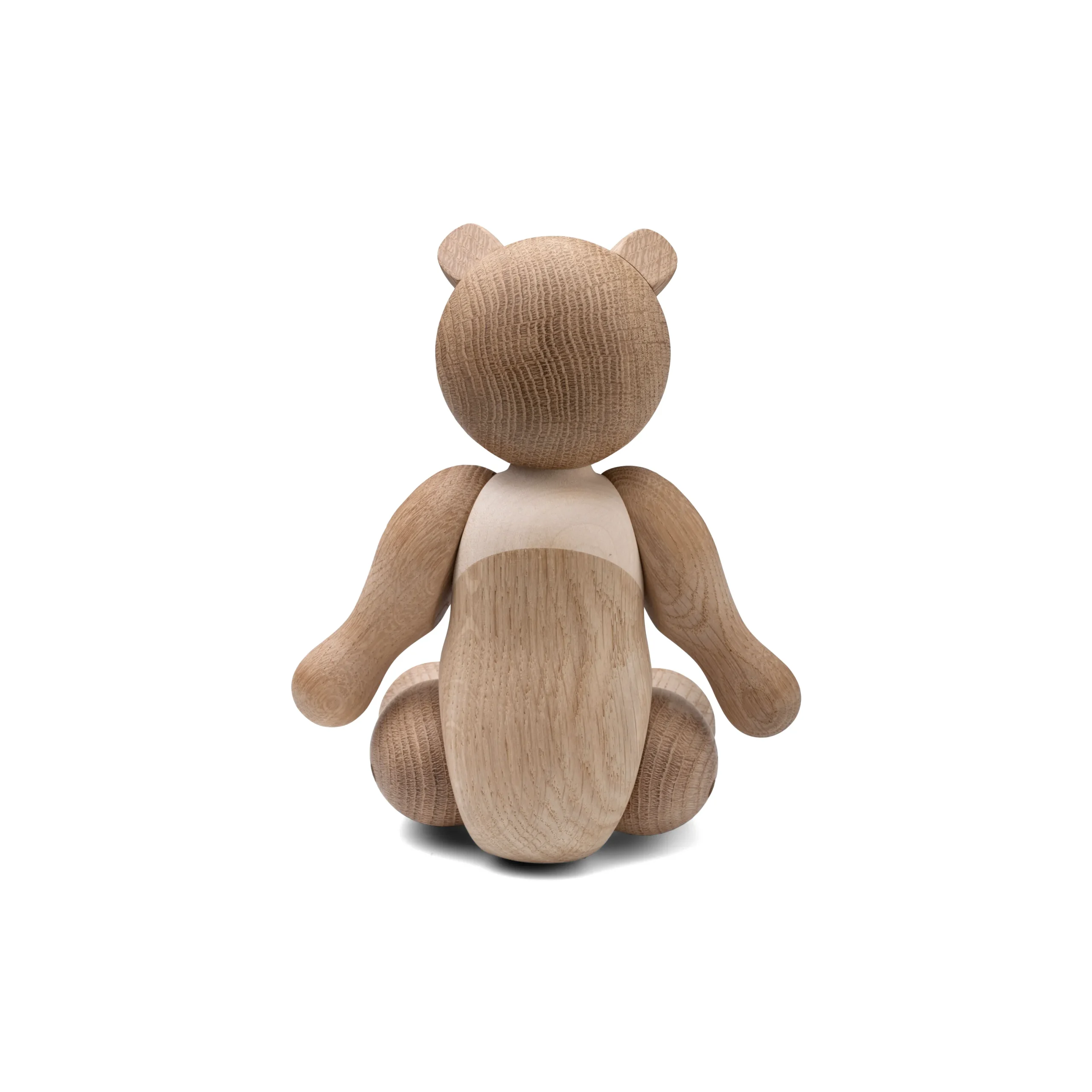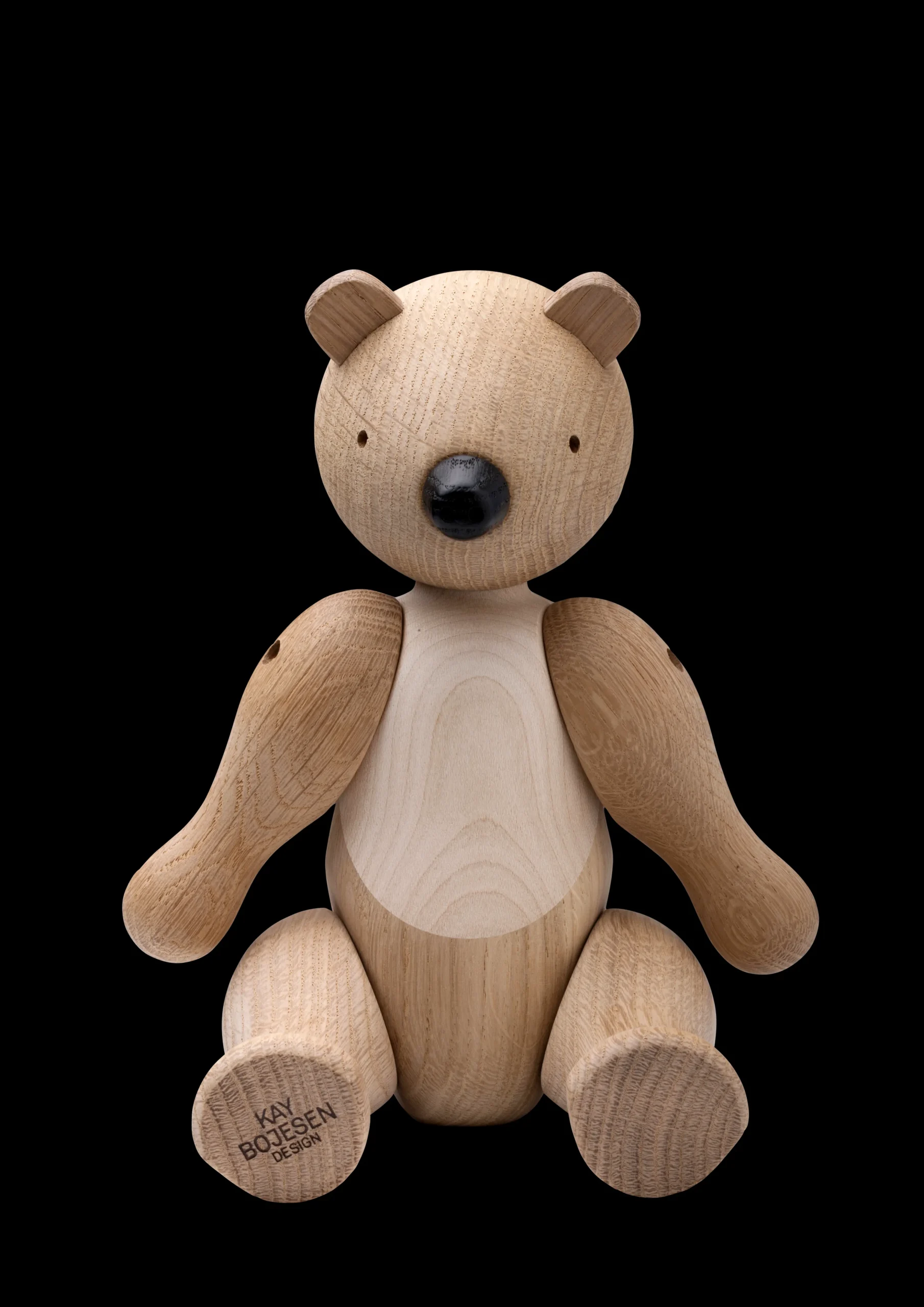 Den søde bjørn fra Kay Bojesen så oprindeligt dagens lys for første gang i 1952. Denne udgave er i mellemstørrelse og produceret i ubehandlet eg og ubehandlet ahorn, der får bjørnen til at passe godt ind blandt de øvrige figurer i træ fra Kay Bojesen. Bjørnen måler 25 cm i højden og er den perfekte gave til både store og små, idet den kan følge både barn og voksen igennem hele livet. Her får du et designikon i robust og tidløst design, der aldrig går af mode.