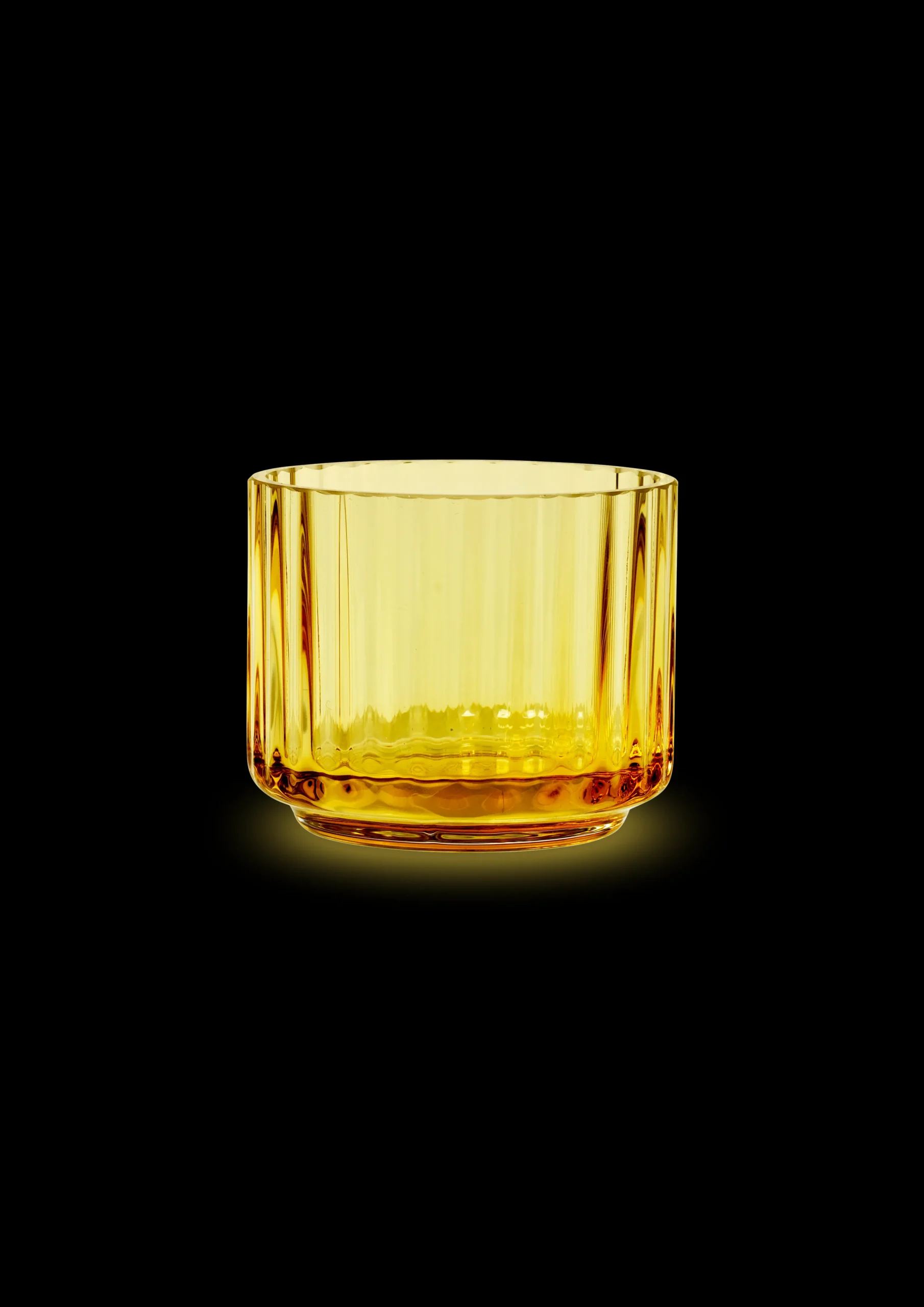 Fyrfadsstagen fra Lyngby Porcelæn er lavet i mundblæst glas i en smuk varm amber farve. Den har de ikoniske riller, som også er kendt fra Lyngby vasen. Fyrfadsstagen giver et flot spil og reflektioner når lyset er tændt, og det giver et elegant udtryk til indretningen. Den lille fyrfadsstage er oplagt i vindueskarmen, men er også flot på bordet med flere stager i forskellige farver.