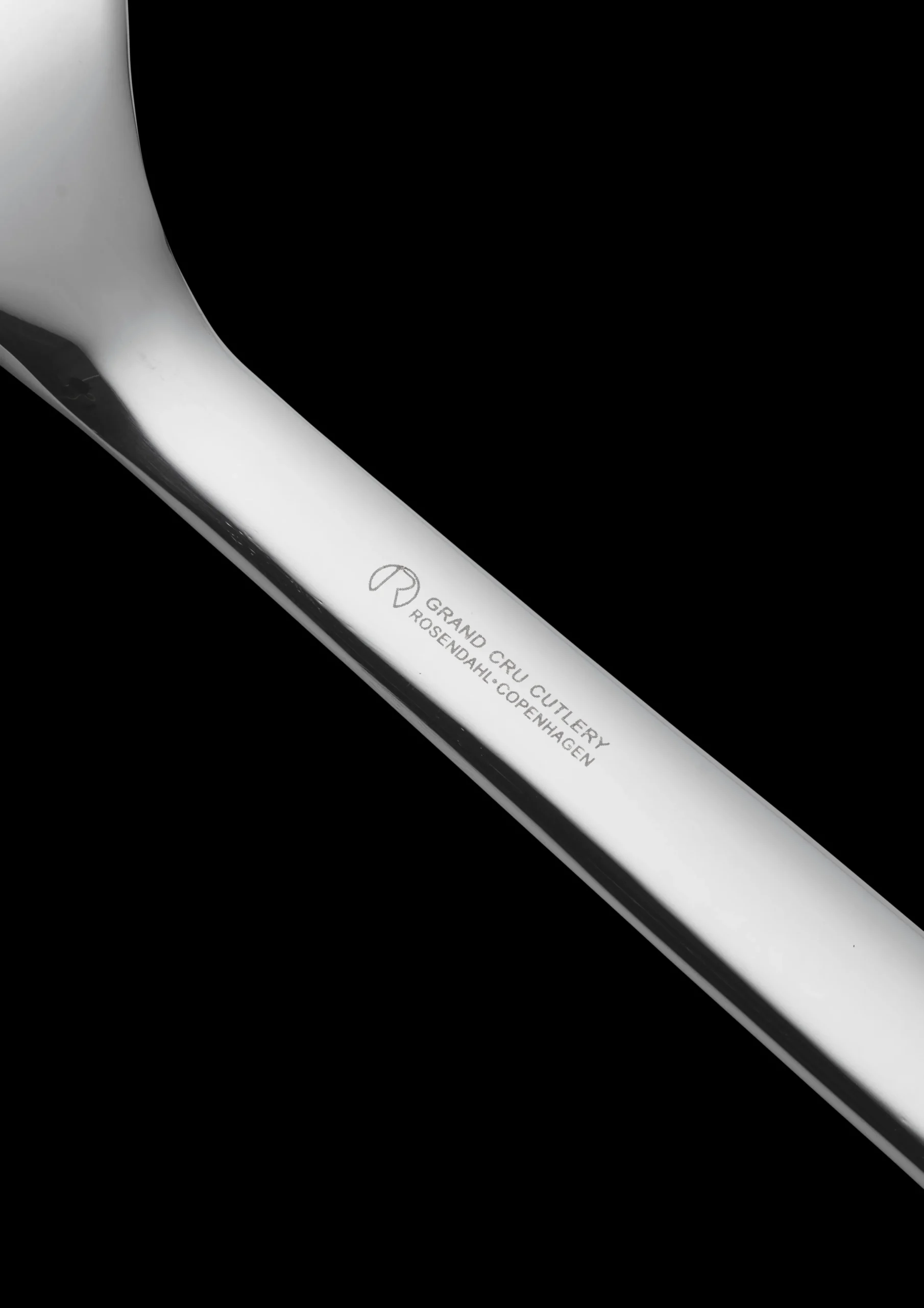Kagespaden i rustfrit stål er velegnet til servering af både lagkager og tærter. Grand Cru serien består af i alt 147 dele, som alle fås her. Designet sætter maden i fokus, danner en god base i køkkenet gennem hele livet, og gør bestikket nemt at kombinere med forskellige stel.