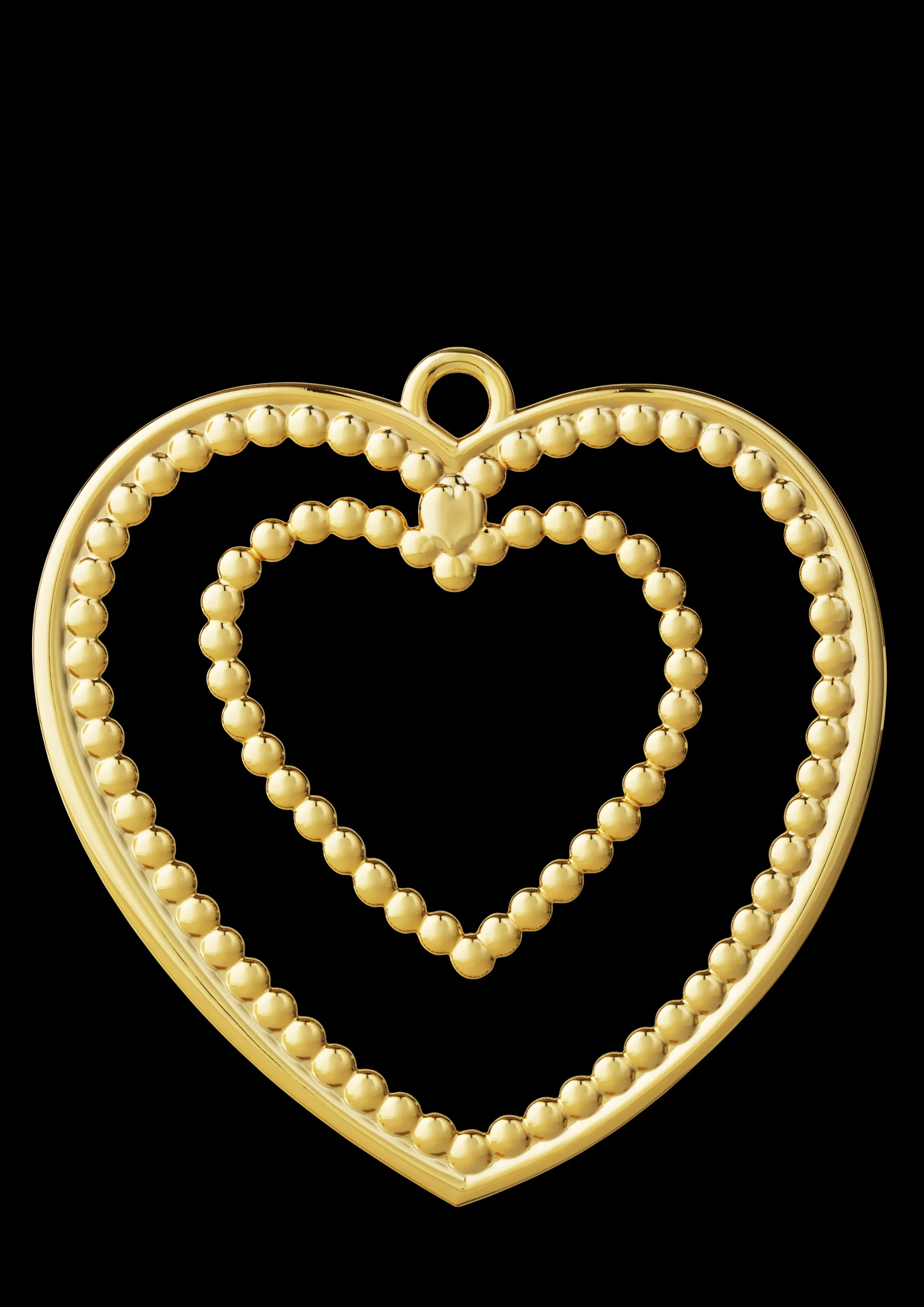 Motiverne i Karen Blixens jul er en hyldest til den traditionelle jul, det er eventyrlig julepynt som er skabt med liv og detaljer, så hvert enkelt ophæng fremstår unikt. Her ses Kuglehjerte i forgyldt, de fine små kugler ligger på en perlerække, og skaber mindelser om perlekæder, et raffineret og meget feminint ornament. Ophænget fås også i en forsølvet version. Produktet vil patinere med tiden. Vi anbefaler ikke at benytte pudsemiddel på produktet. Vi anbefaler at produktet opbevares i original kasse, da dette vil forlænge levetiden på produktet.